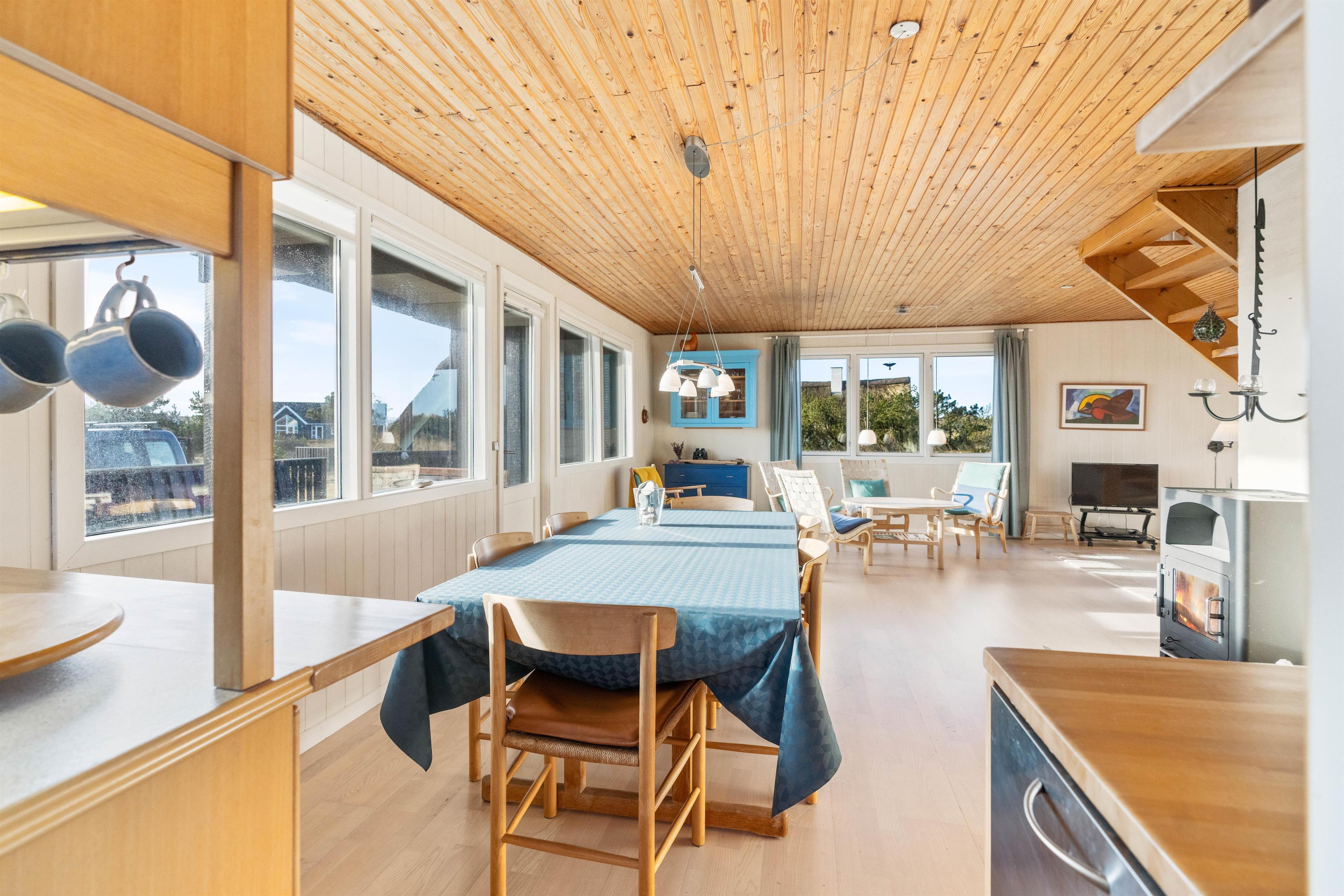 The holiday home includes a shower room with underfloor heating and benefits from an energy-efficient heat pump. This holiday home offers plenty of space for comfort and socialising. While some guests prepare meals together, others can enjoy board games at the dining table. Meanwhile, logs crackling in the wood-burning stove create a cosy Danish 'hygge' atmosphere.