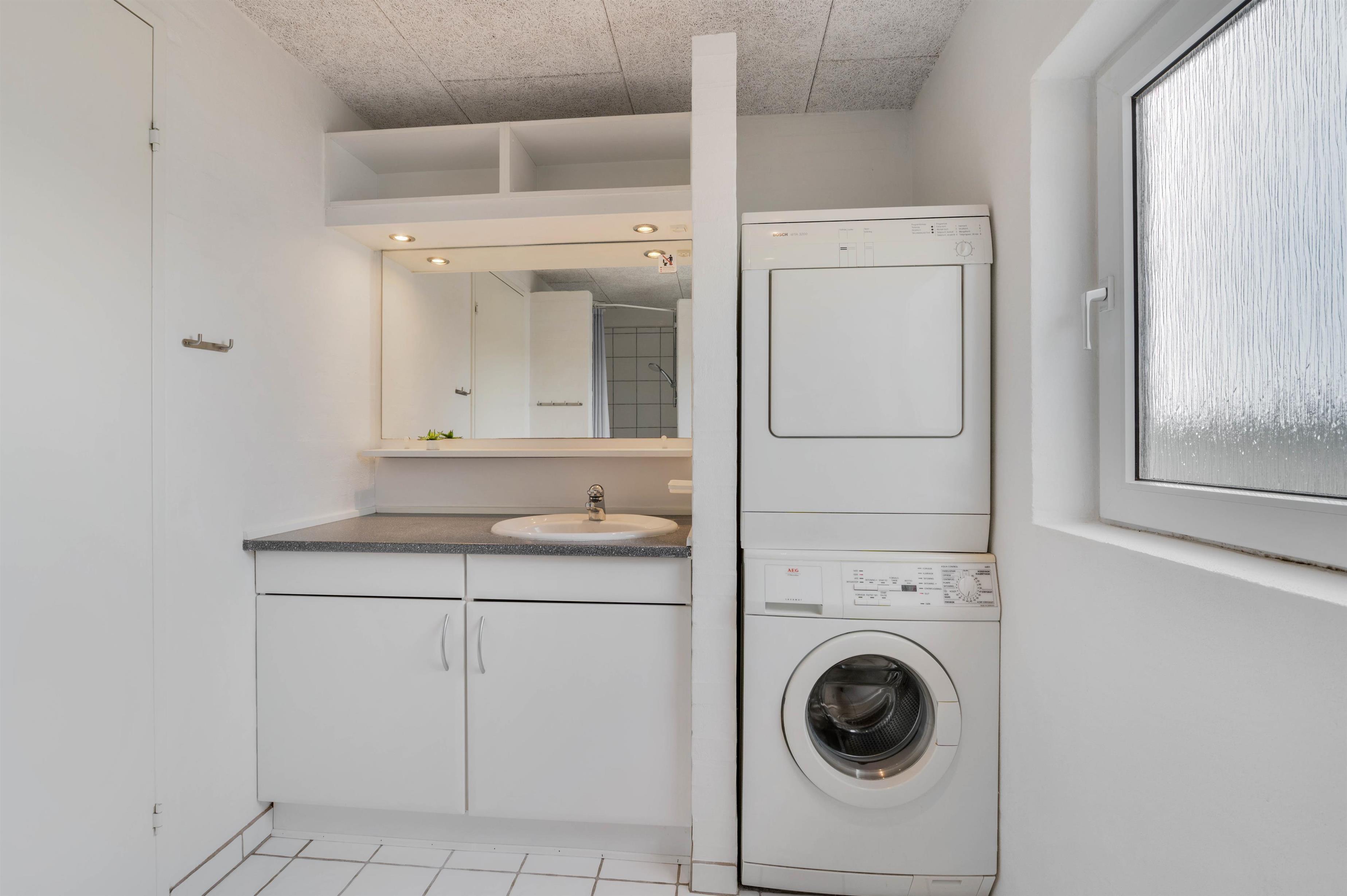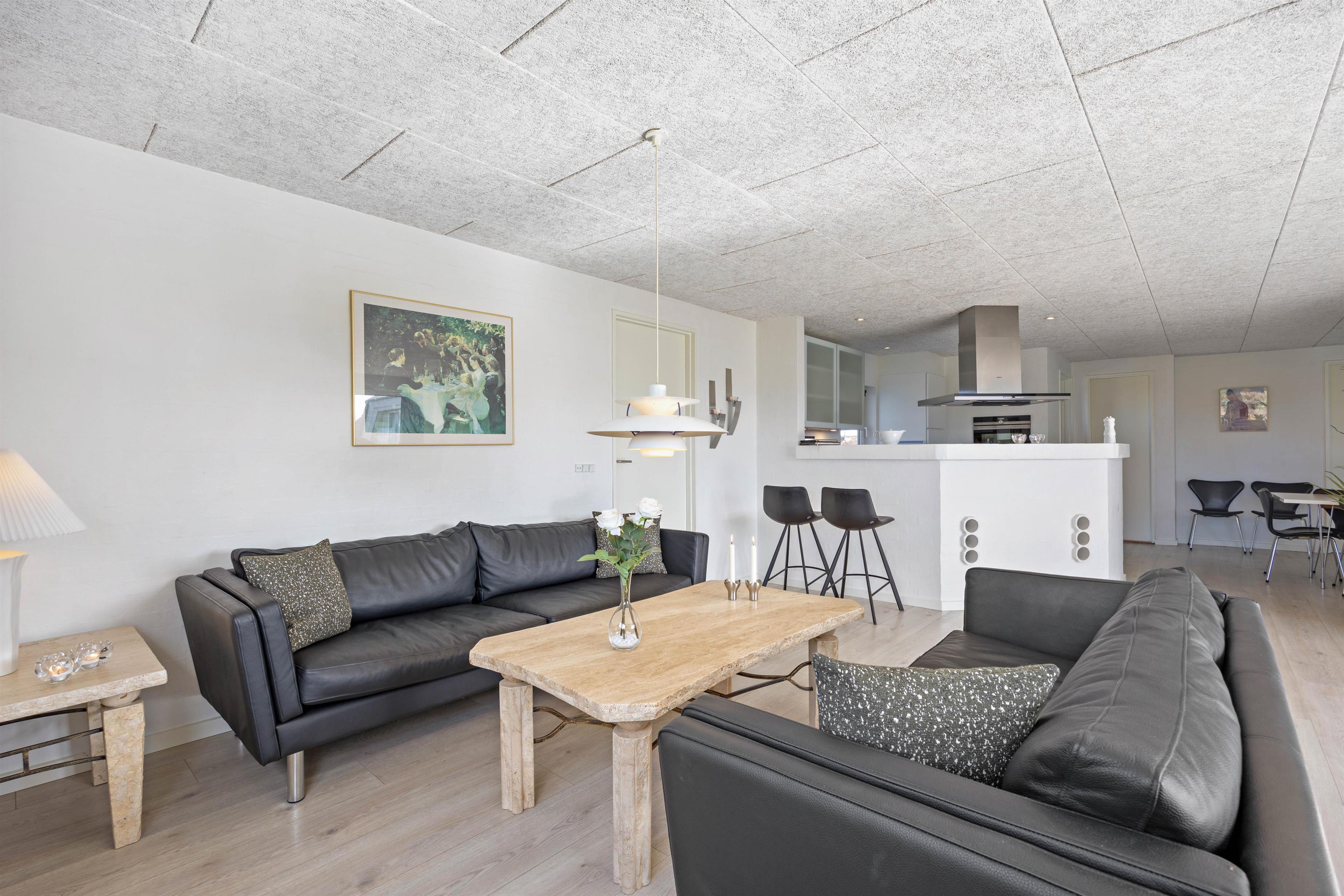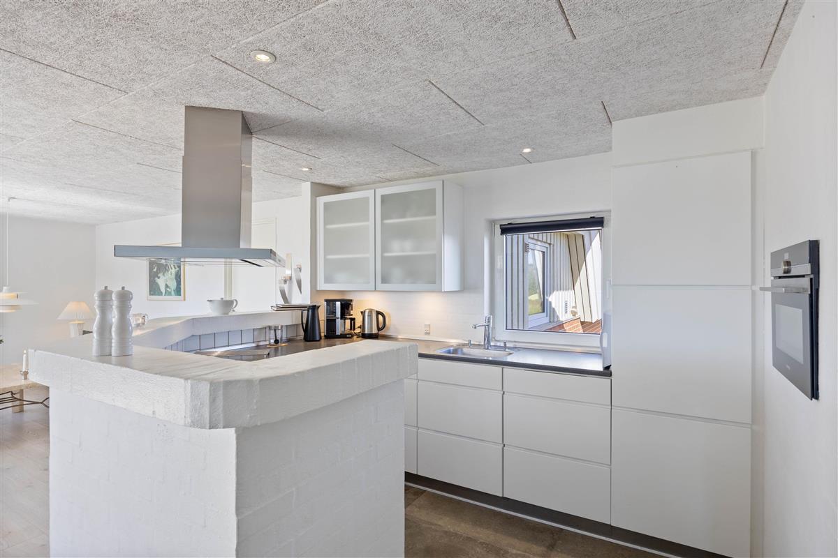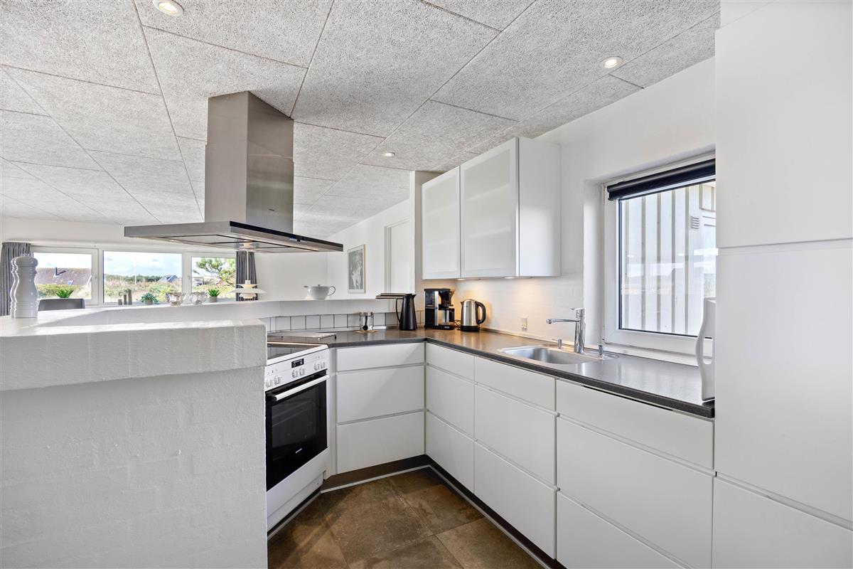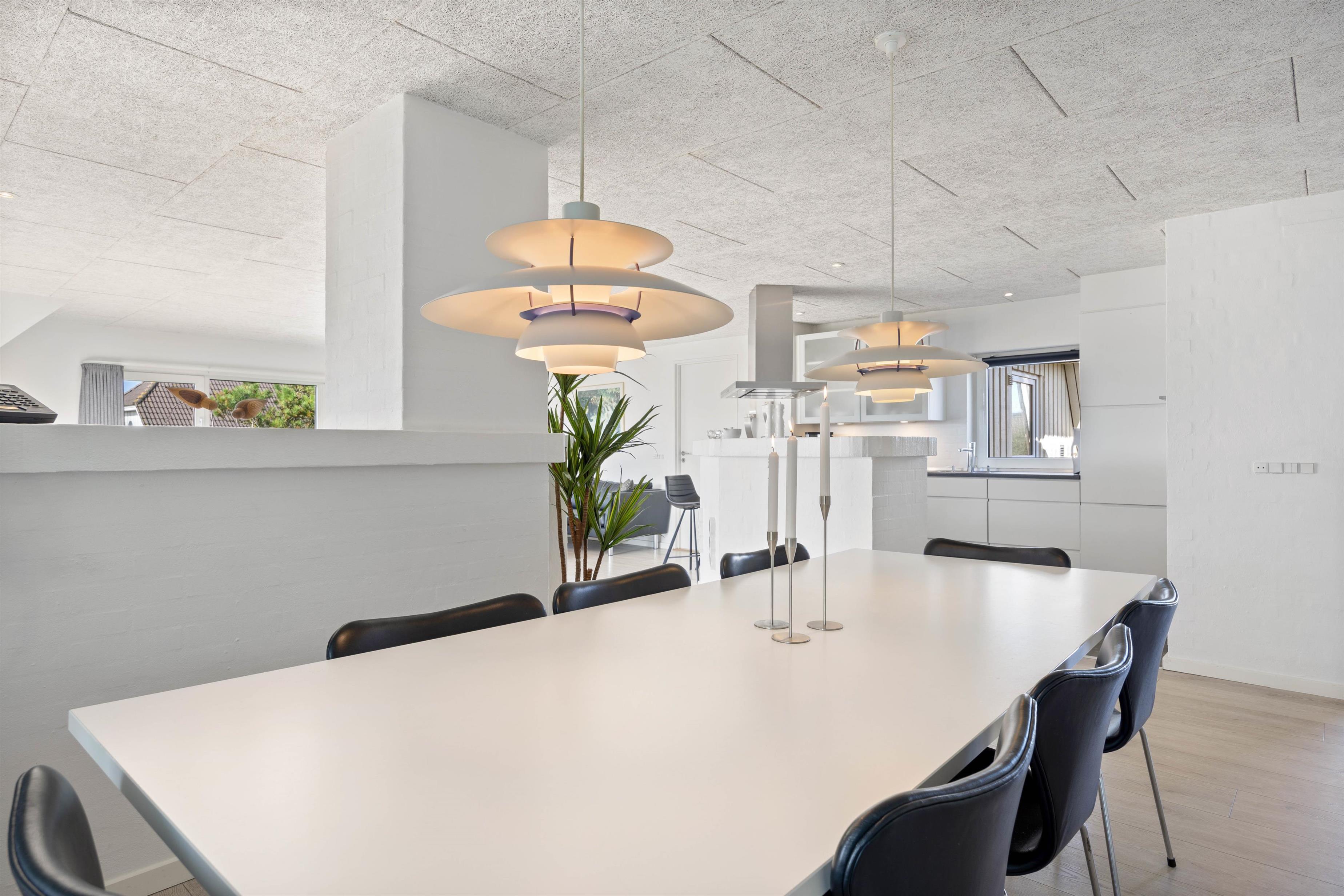 The welcoming, bright living area invites you to relax by the crackling fire of the wood-burning stove. A comfortable corner sofa with armchairs provides the perfect retreat for a relaxing holiday on the Danish West Coast. In addition to the wood-burner, a heat pump provides alternative heating for cooler days.