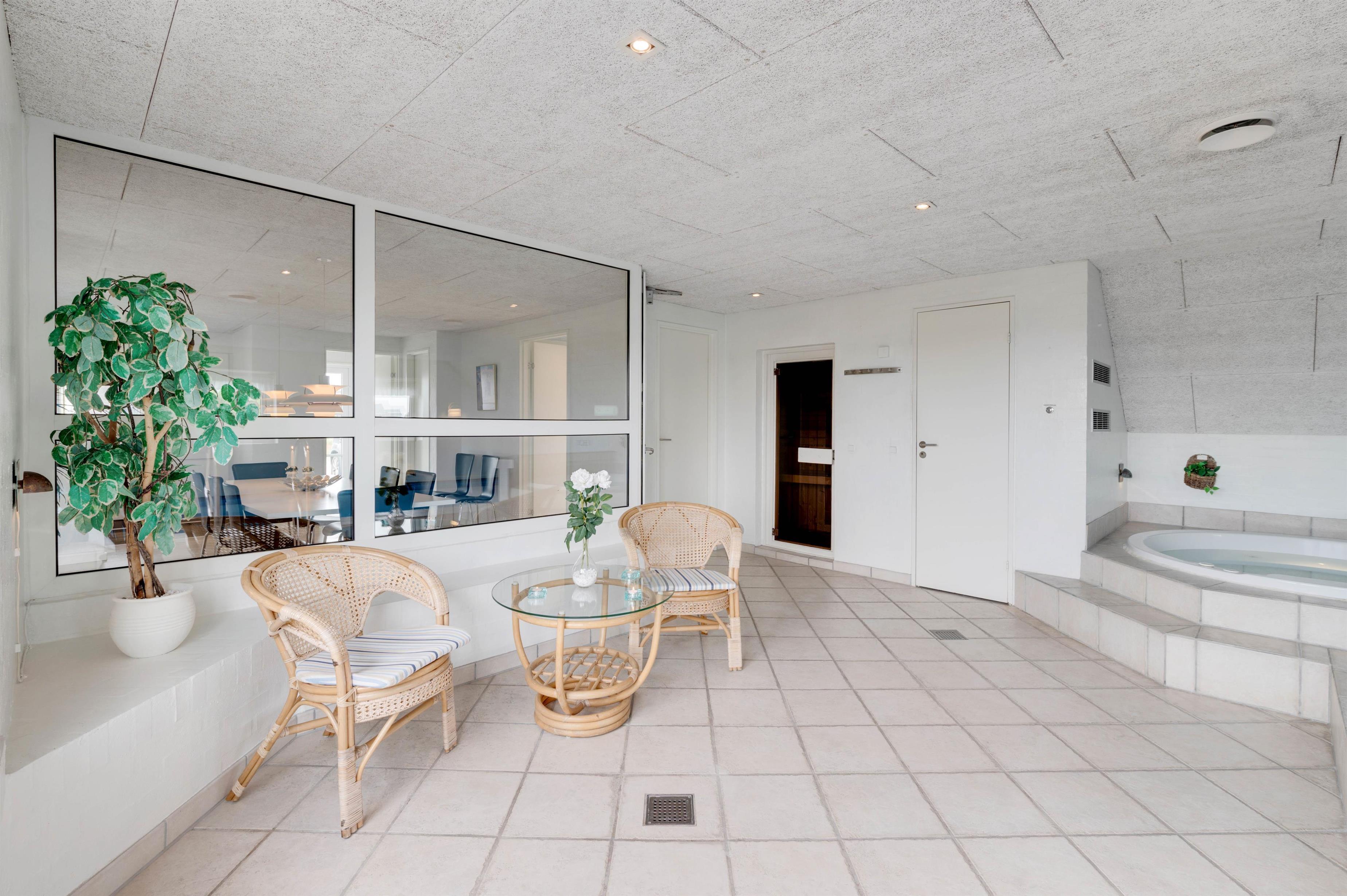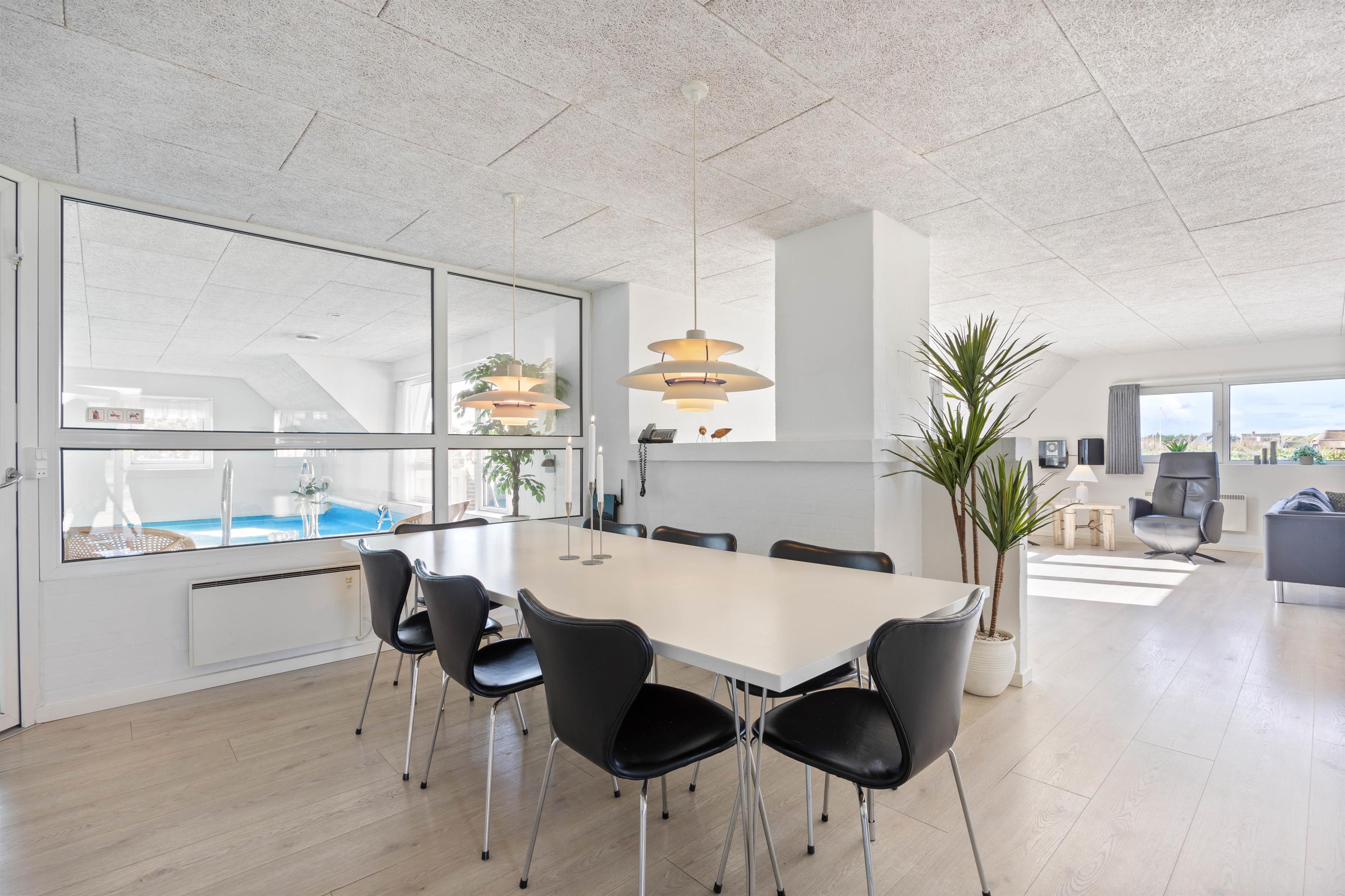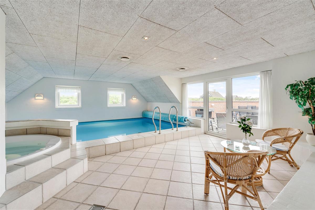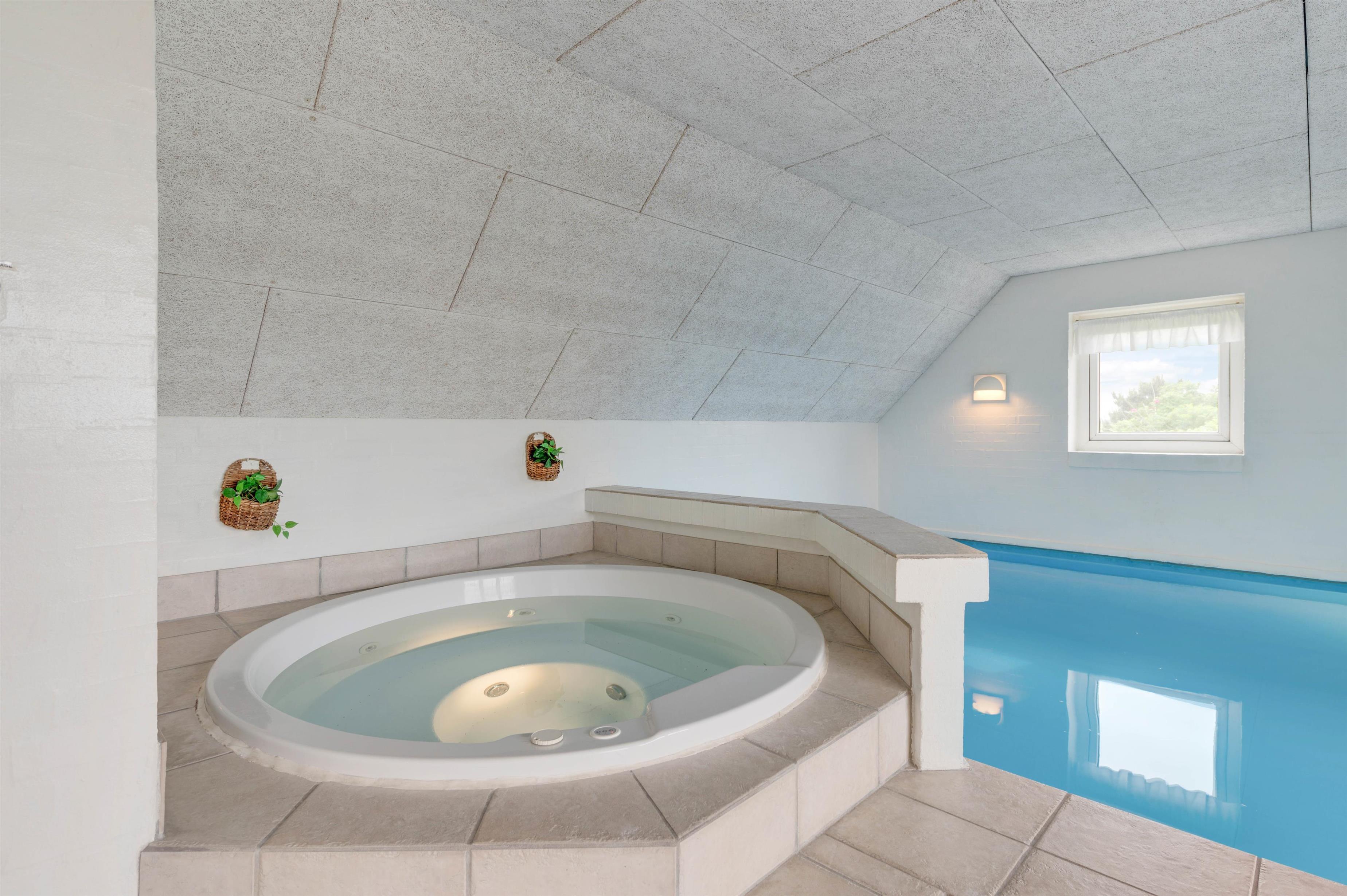This beautiful and cosy holiday home at Toppebjerg 2 in the popular resort of Bjerregård awaits you with a pool, sauna and hot tub, just 450 metres from the Danish West Coast beach. This holiday home accommodates up to 10 people and warmly welcomes up to two dogs.
