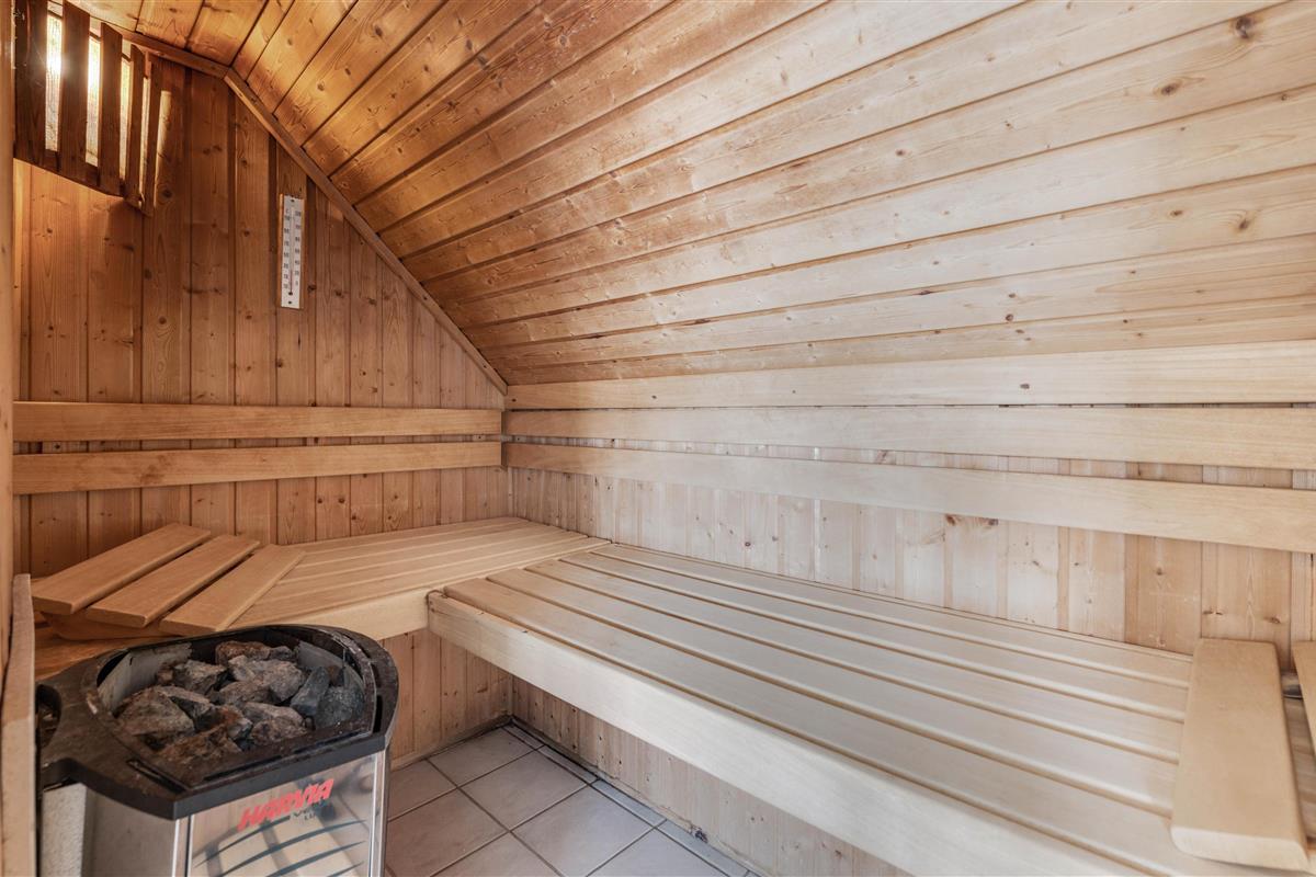 From the open-plan kitchen, equipped with a dishwasher, and the large dining table, you'll have a perfect view of the pool area while the children enjoy swimming. The spacious pool area features direct access to the terrace and boasts a 25-square-metre pool, sauna and whirlpool, ensuring an ideal holiday experience.