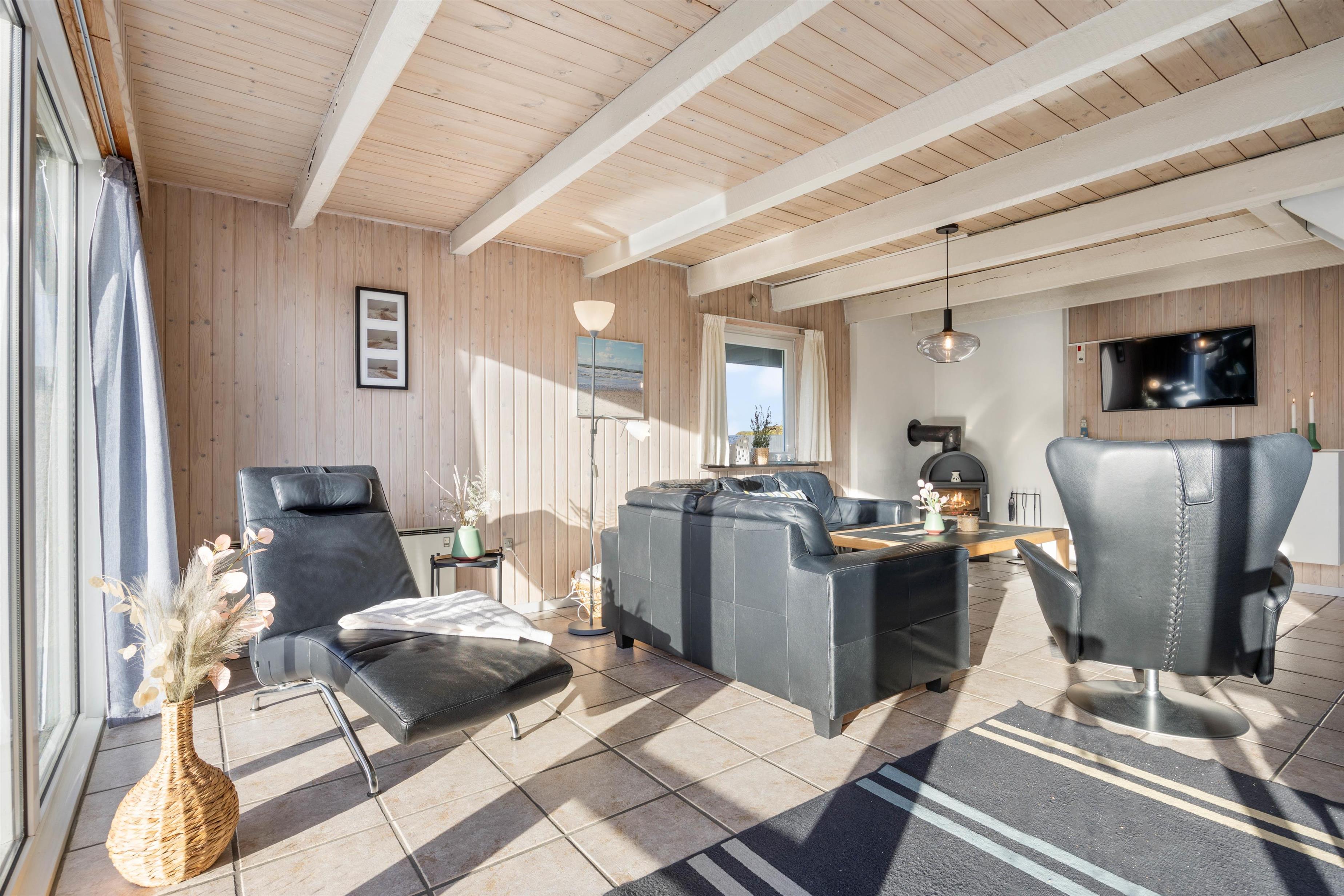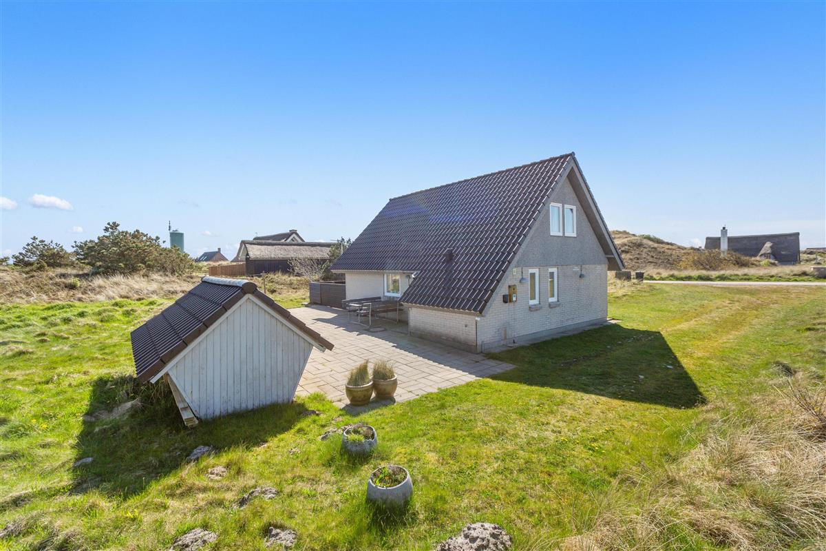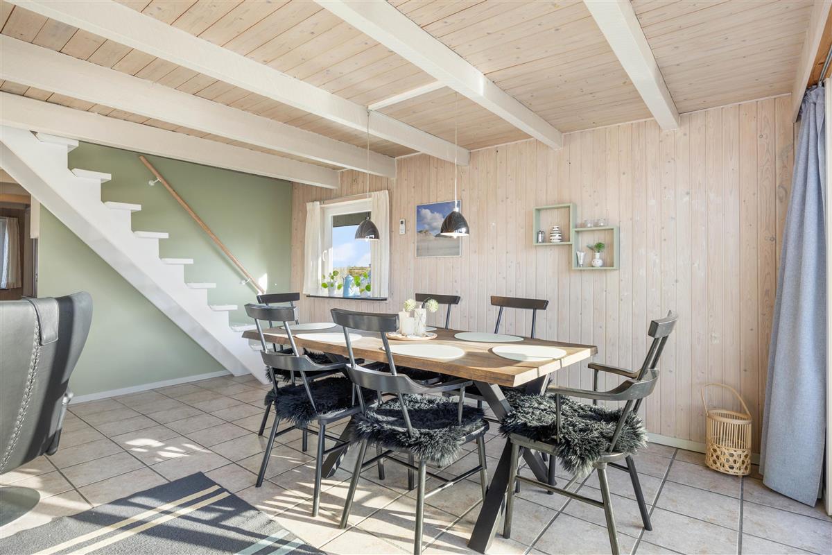 A very comfortable and well-maintained holiday home situated on a large natural plot in the northern part of Bjerregård. The holiday home offers beautiful south and east-facing terraces, including a fully enclosed terrace. On the first floor, there's a covered balcony. All bedrooms are located upstairs. The home comfortably accommodates up to 6 guests and three dogs.