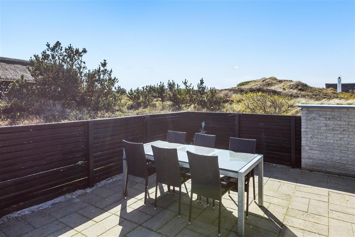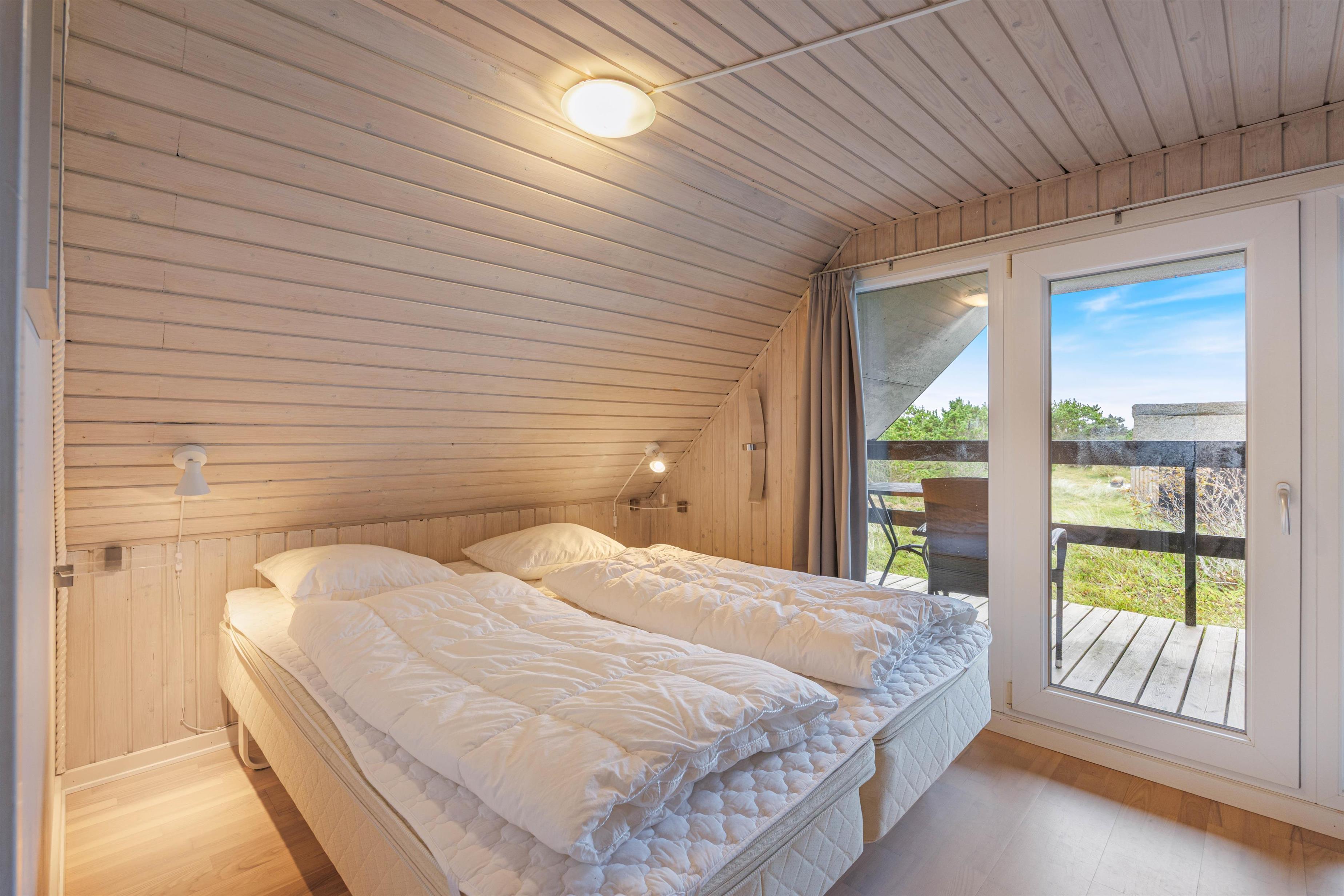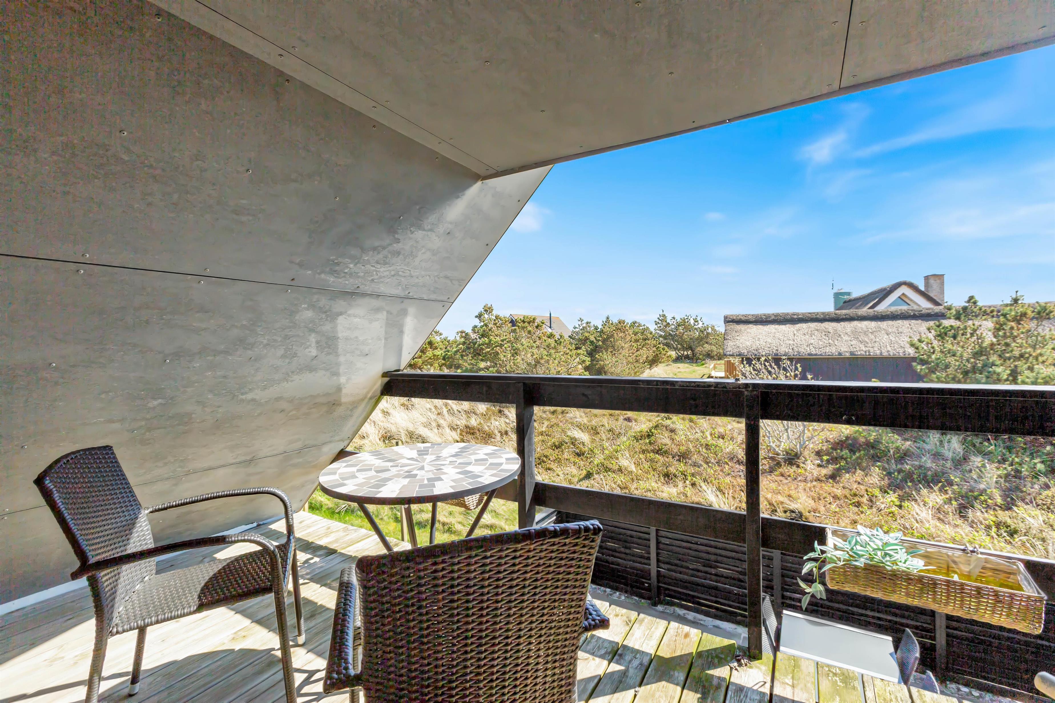 A very comfortable and well-maintained holiday home situated on a large natural plot in the northern part of Bjerregård. The holiday home offers beautiful south and east-facing terraces, including a fully enclosed terrace. On the first floor, there's a covered balcony. All bedrooms are located upstairs. The home comfortably accommodates up to 6 guests and three dogs.