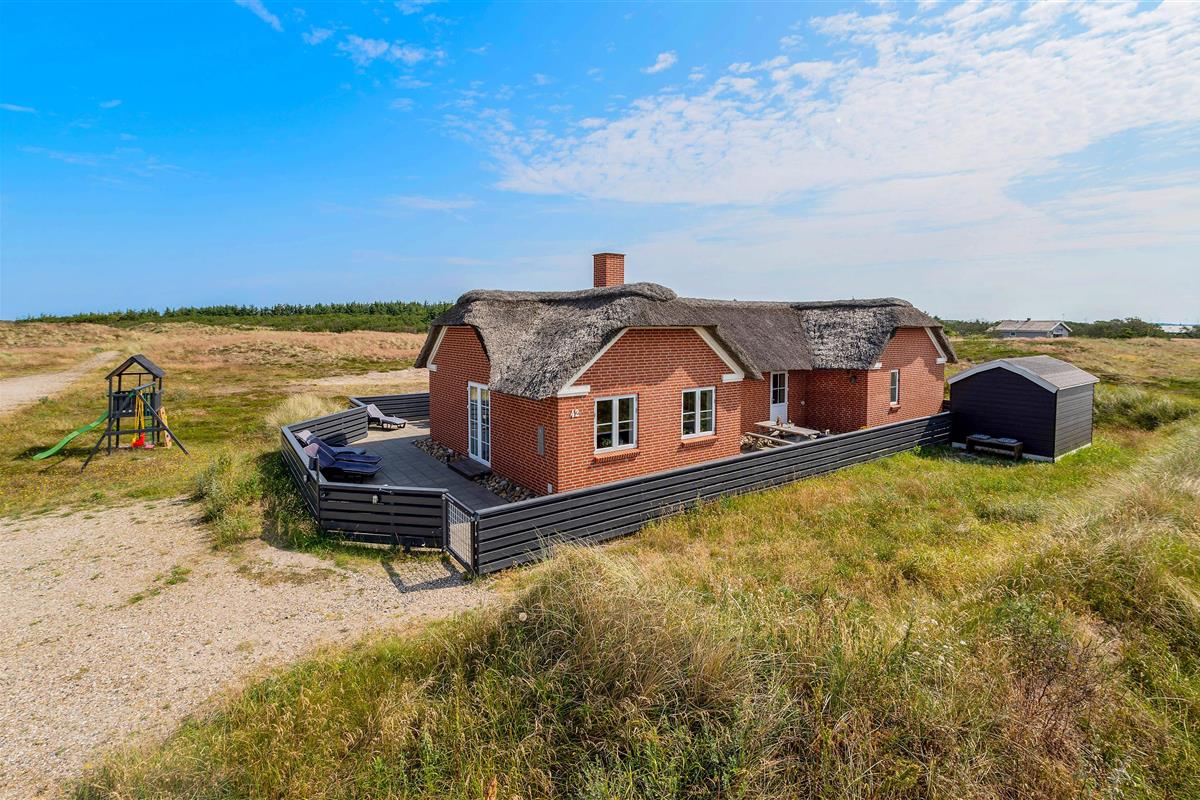 Located at Arvidvej 42, this modern thatched holiday home was renovated in 2017 and offers 124 square metres of living space. Up to 6 people can feel at home here, and you're welcome to bring two dogs. Conveniently, the spacious terrace is enclosed, ensuring your dogs can't explore the area without you.