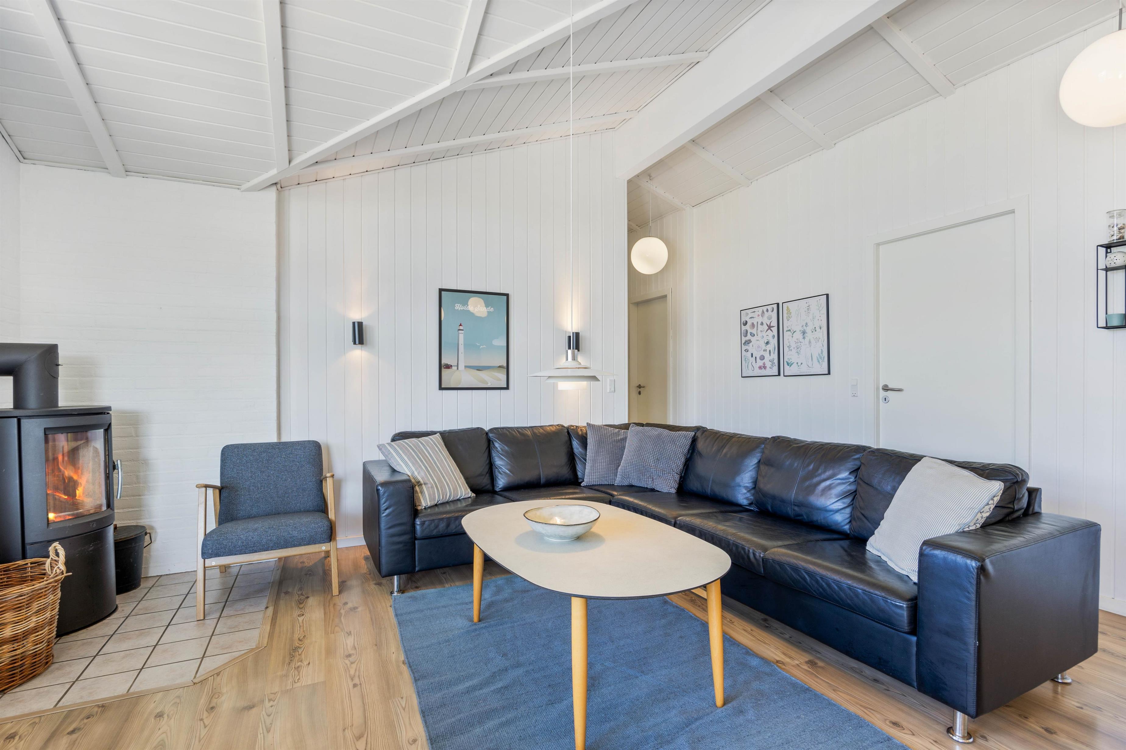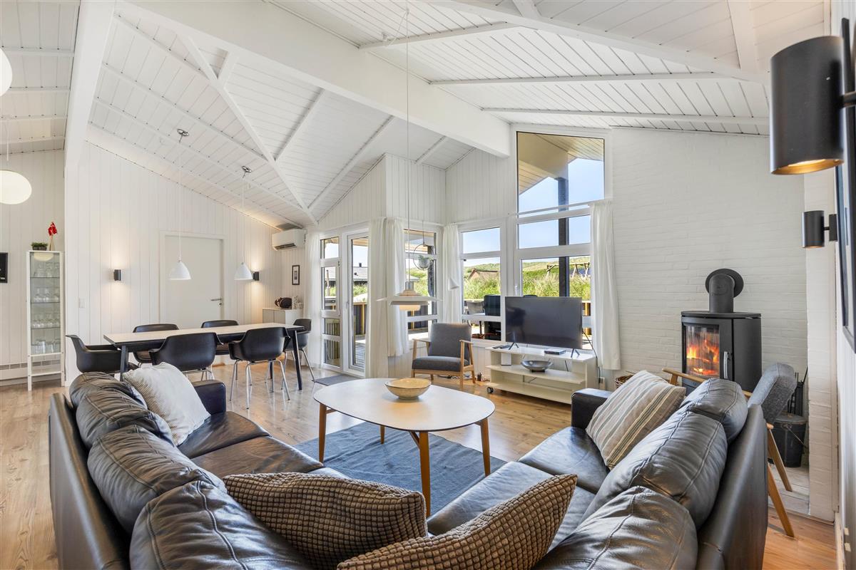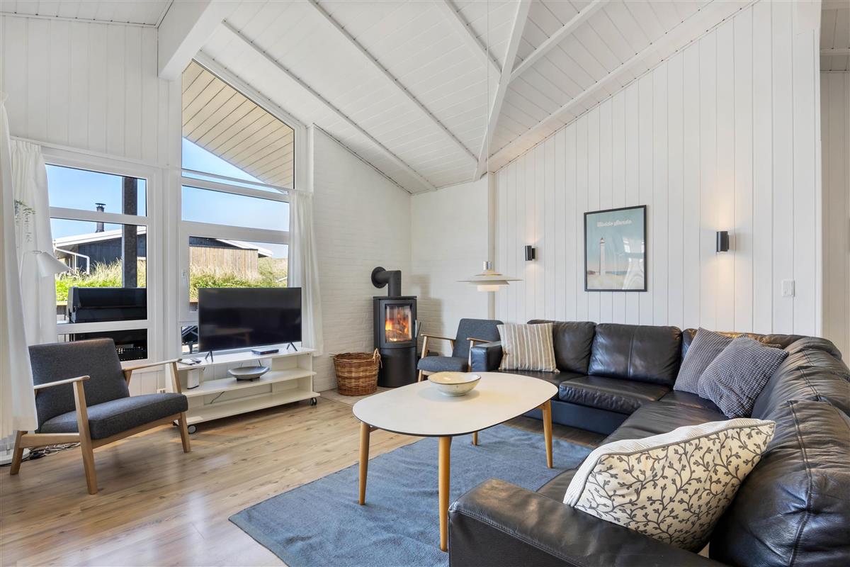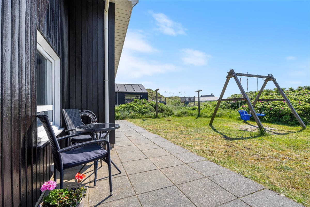 The holiday home is situated just 150 metres from the beach. Here you can enjoy walks year-round, letting children or dogs play in the sand. For a pleasant day trip, the small harbour town of Hvide Sande is just a short drive away.
