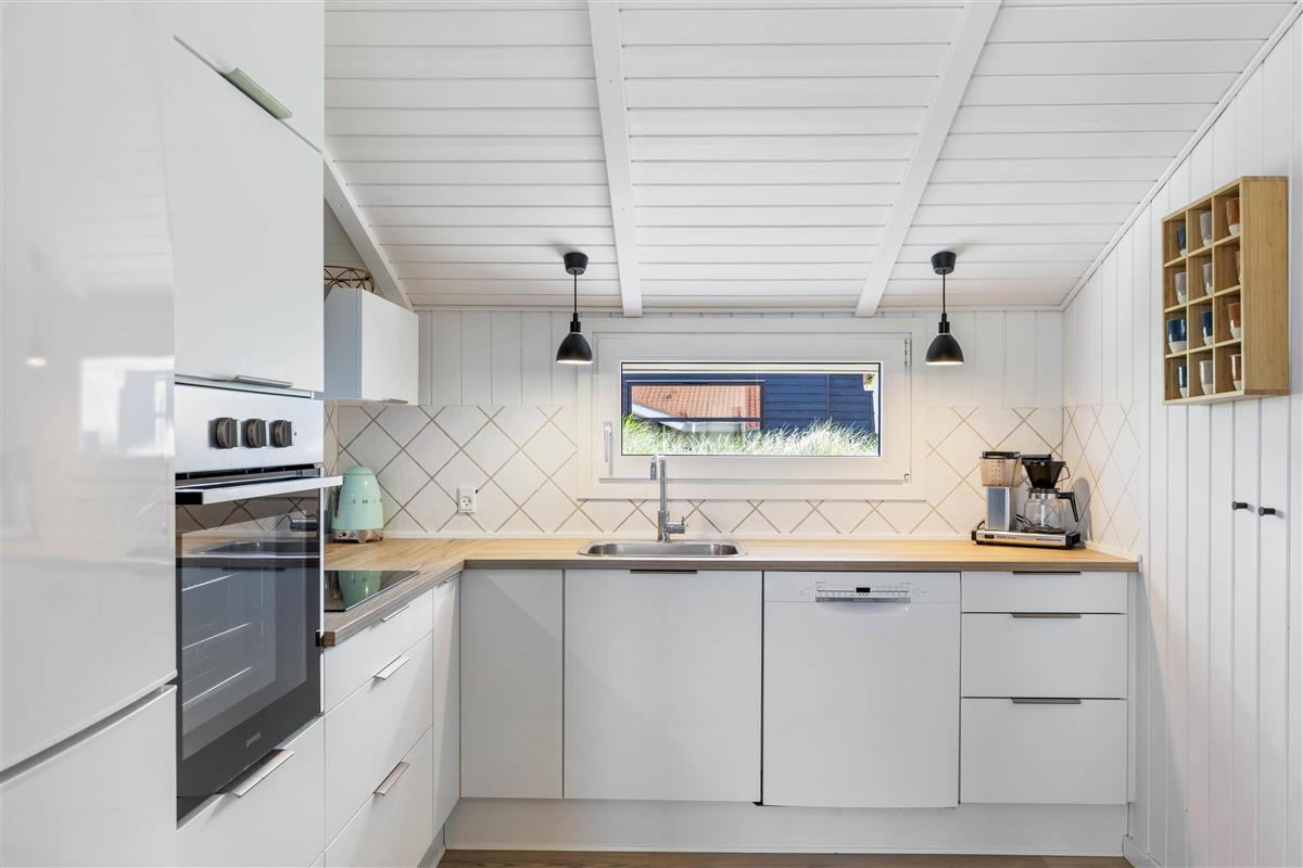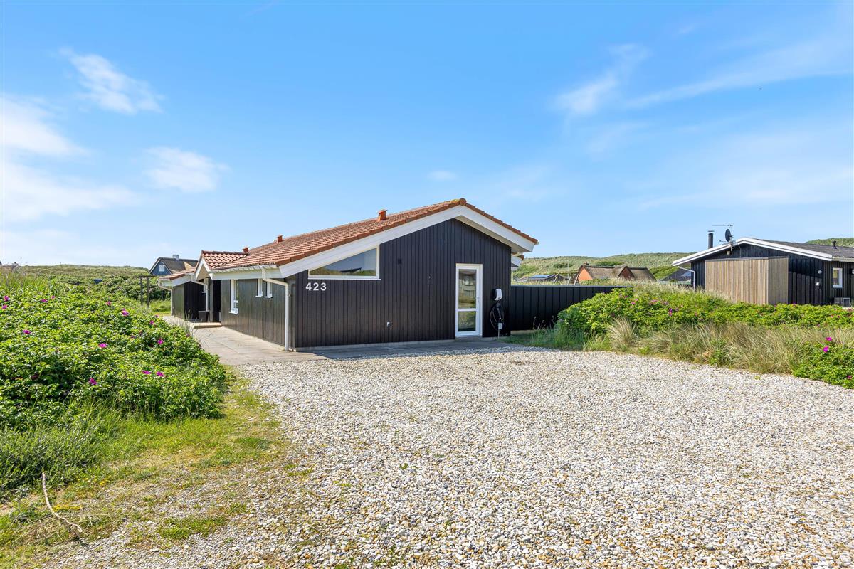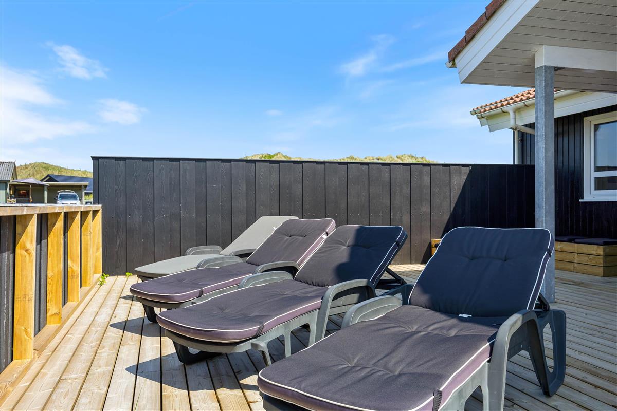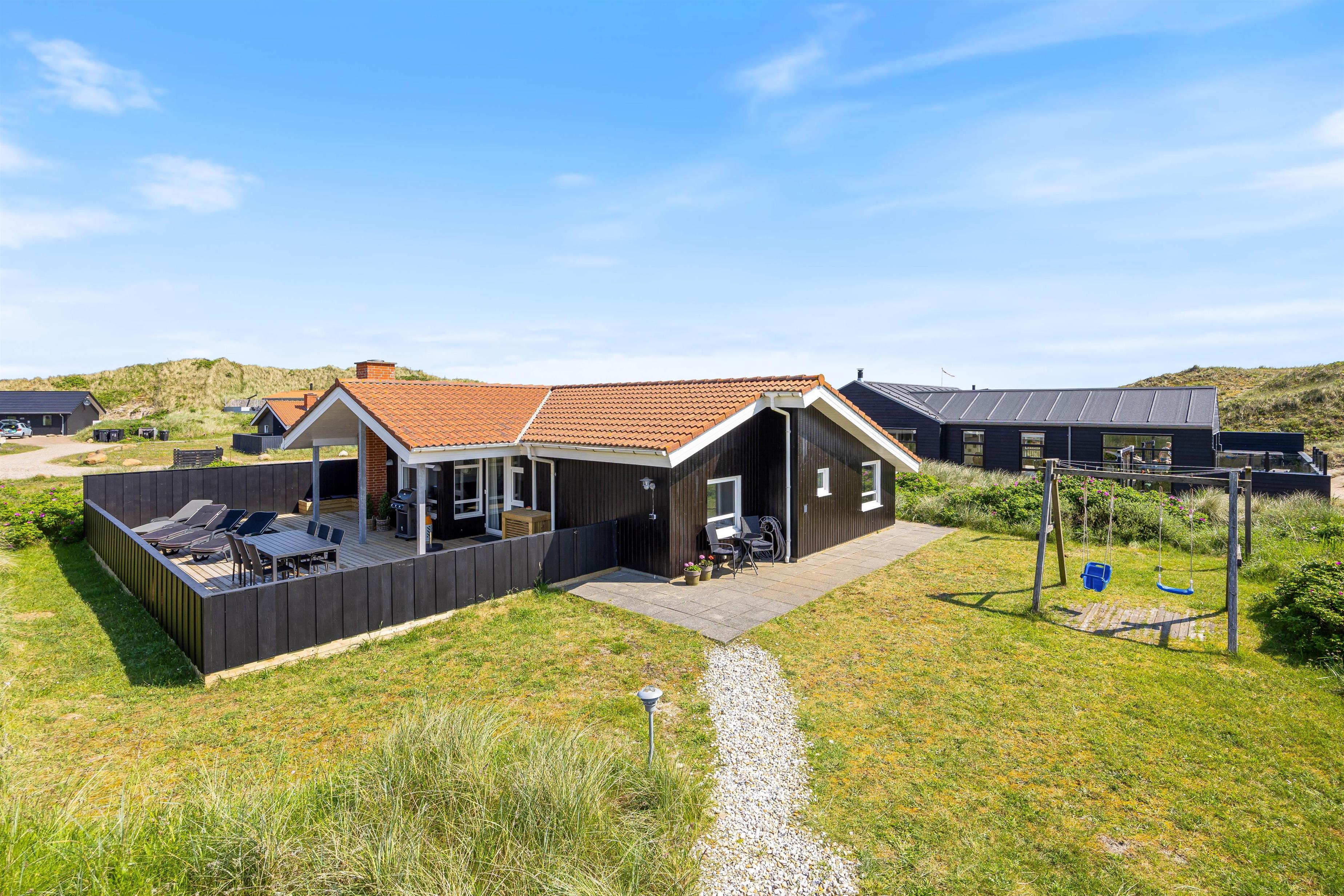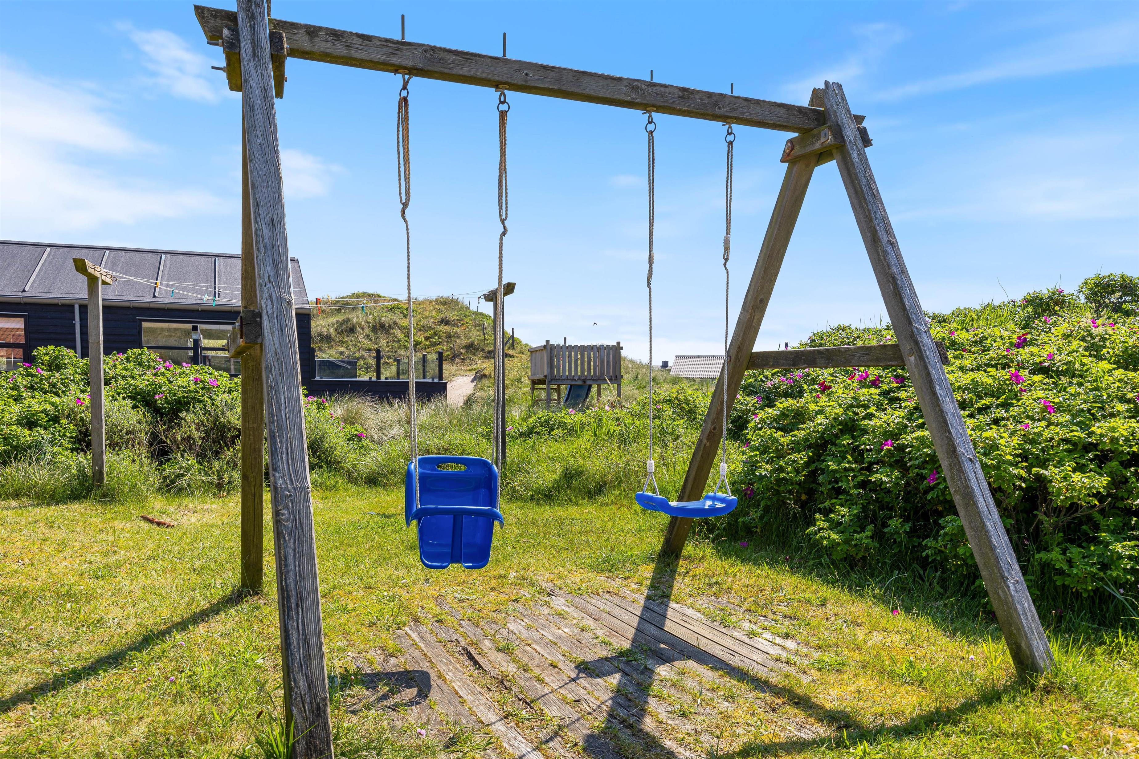 The holiday home is situated just 150 metres from the beach. Here you can enjoy walks year-round, letting children or dogs play in the sand. For a pleasant day trip, the small harbour town of Hvide Sande is just a short drive away.