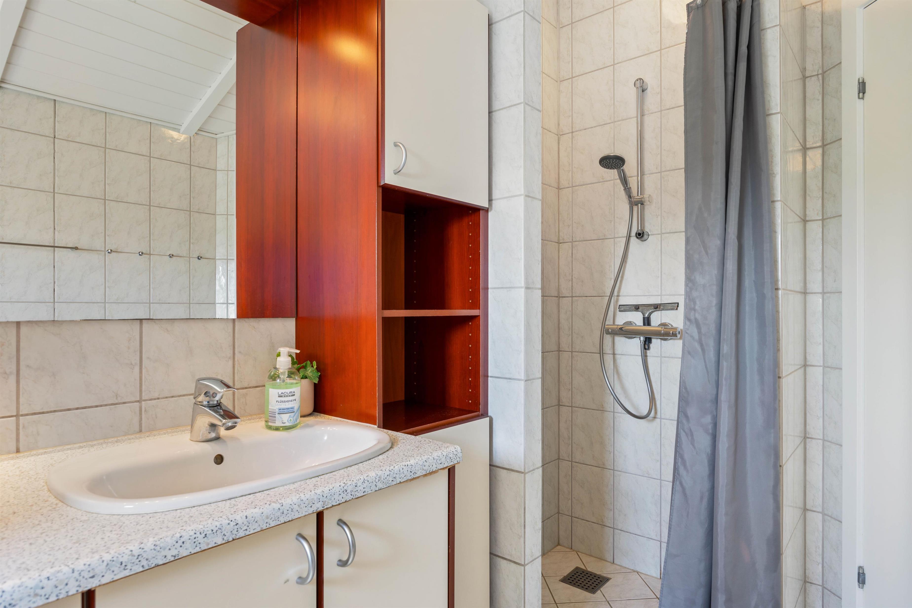 The holiday home features two bathrooms, particularly convenient when holidaying with a large family or friends. One bathroom includes a whirlpool and sauna, offering true relaxation during your stay.