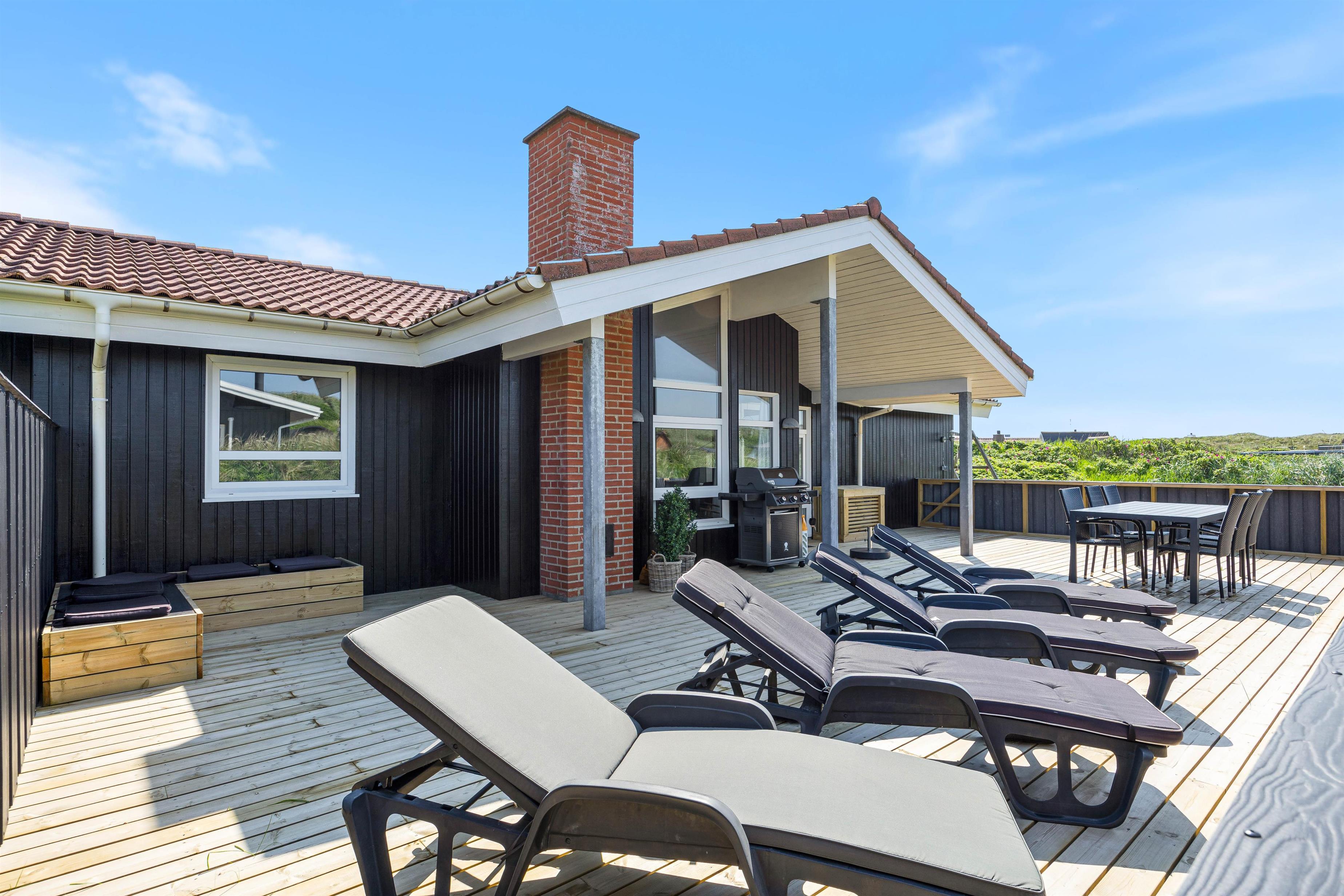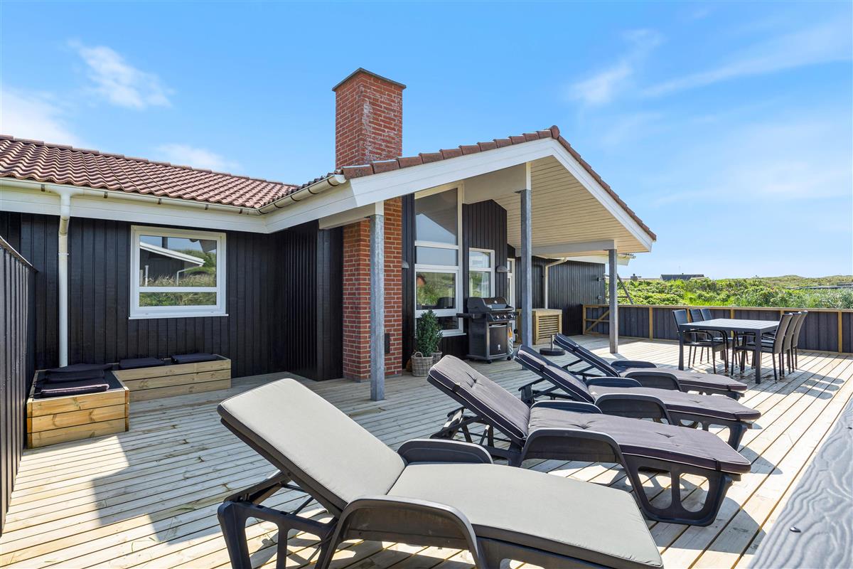 On the western side of the holiday home, you'll find a beautiful enclosed terrace offering lovely views of the dunes and the sound of the North Sea. The terrace is ideal for relaxation or barbecues. It's also a secure space where dogs and young children can roam freely without wandering off.