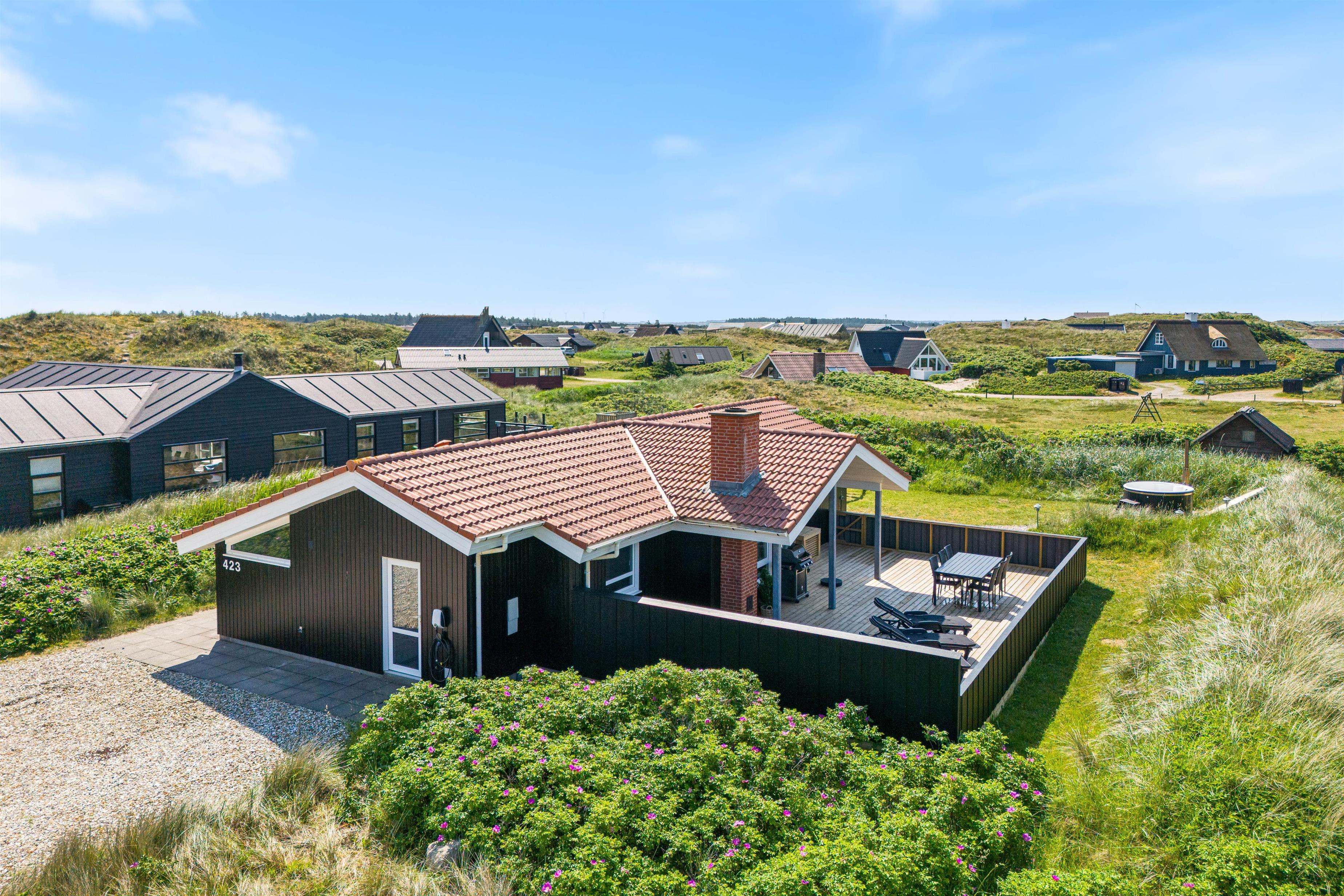 Located at Bjerregårdsvej 423, this beautifully appointed holiday home awaits you. With two bathrooms, a lovely enclosed terrace, and tasteful furnishings, it comfortably accommodates 8 people and 1 dog. The beach is just 150 metres away, perfect for scenic coastal walks. A special highlight is the wood-fired hot tub in the outdoor area.