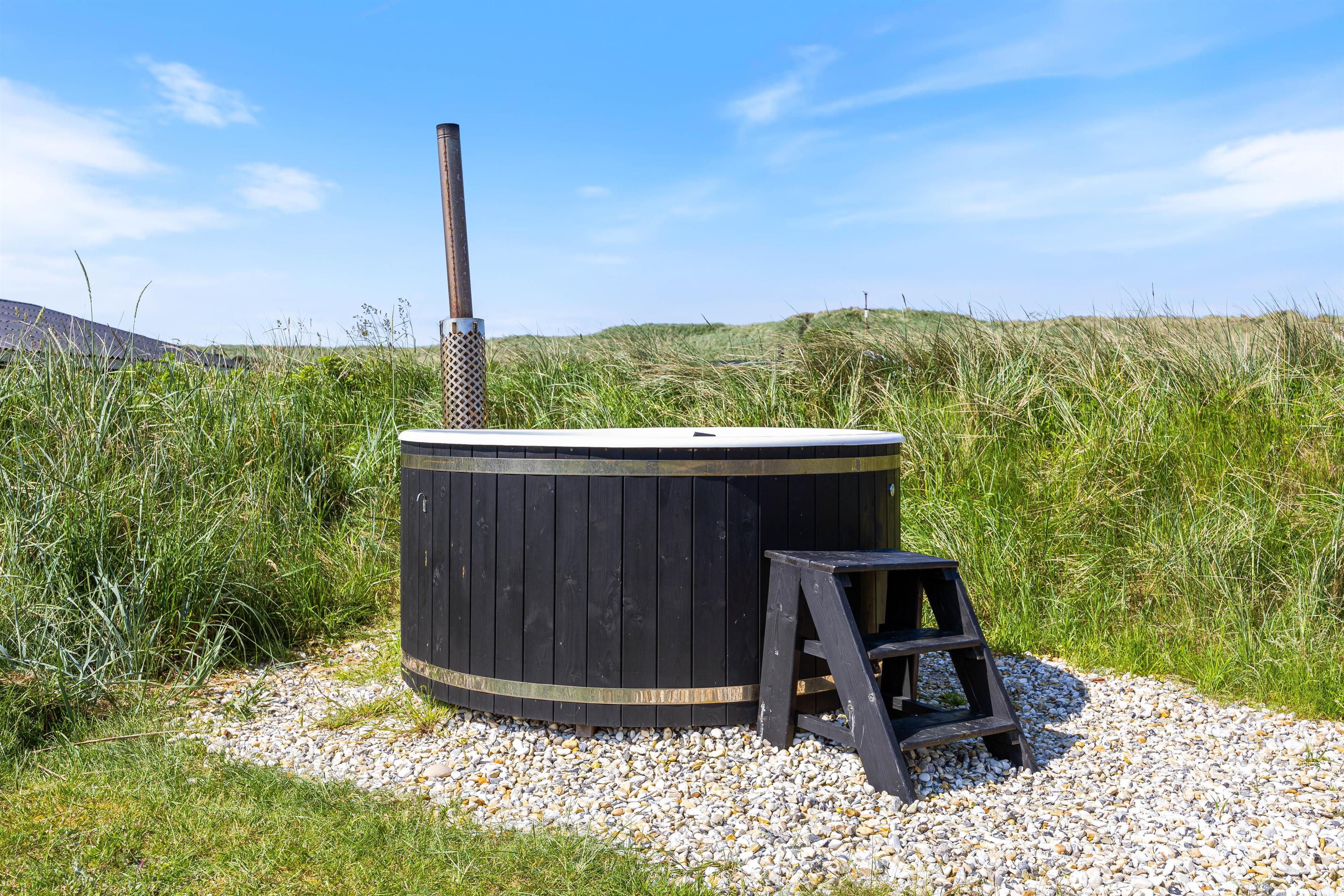 For relaxing wellness moments during your holiday, the outdoor wood-fired hot tub provides a warm and pleasant setting to end your evening while enjoying the starlit sky over Bjerregård.