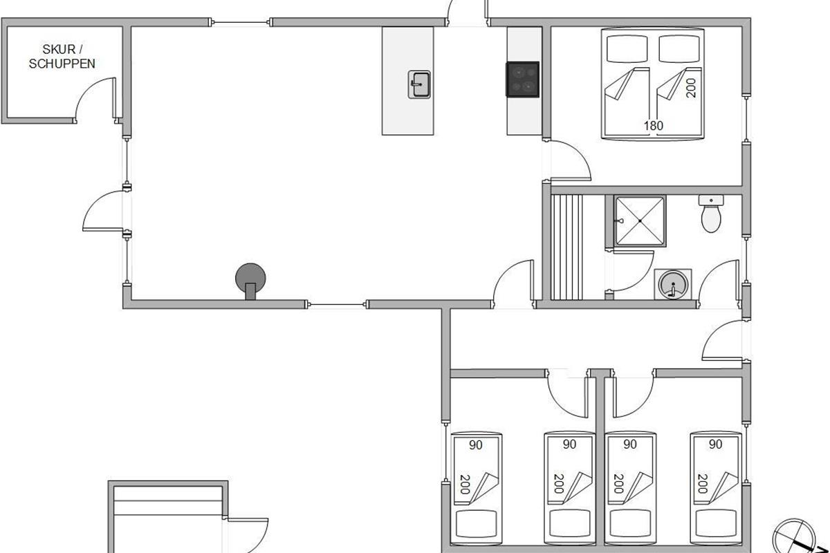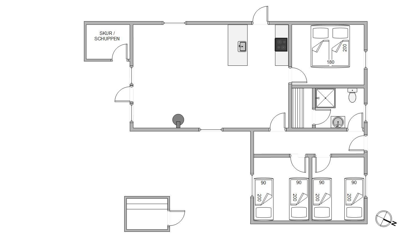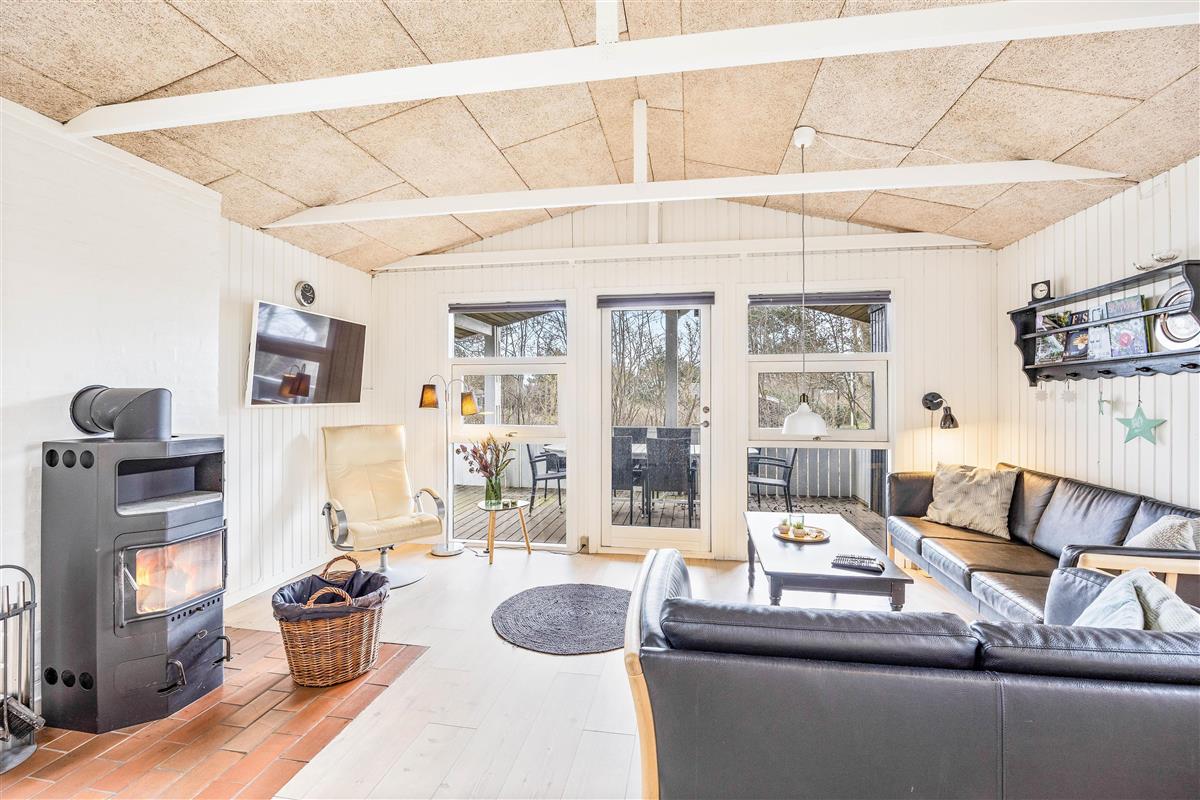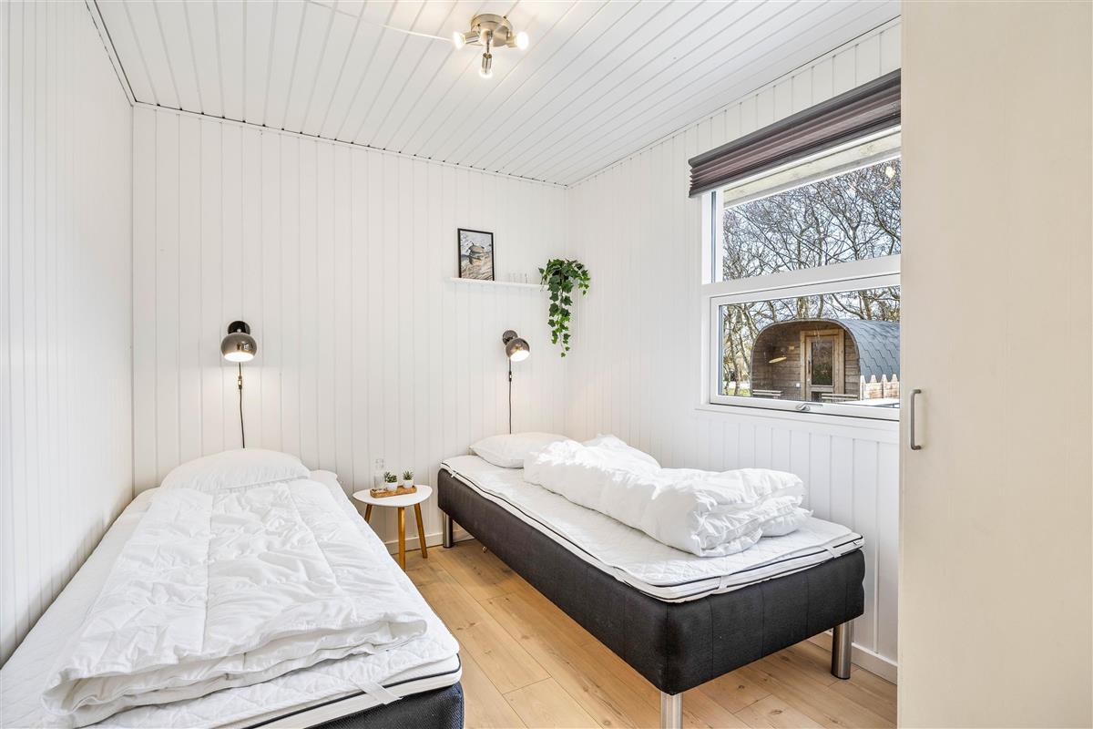 The dining table with kitchen bench adds to the cosy atmosphere, where some can enjoy board games while others relax on the sofa with a good book or film. The practical bathroom features underfloor heating and a sauna where you can truly unwind. The holiday home also includes a washing machine and tumble dryer, ensuring fresh laundry throughout your stay.