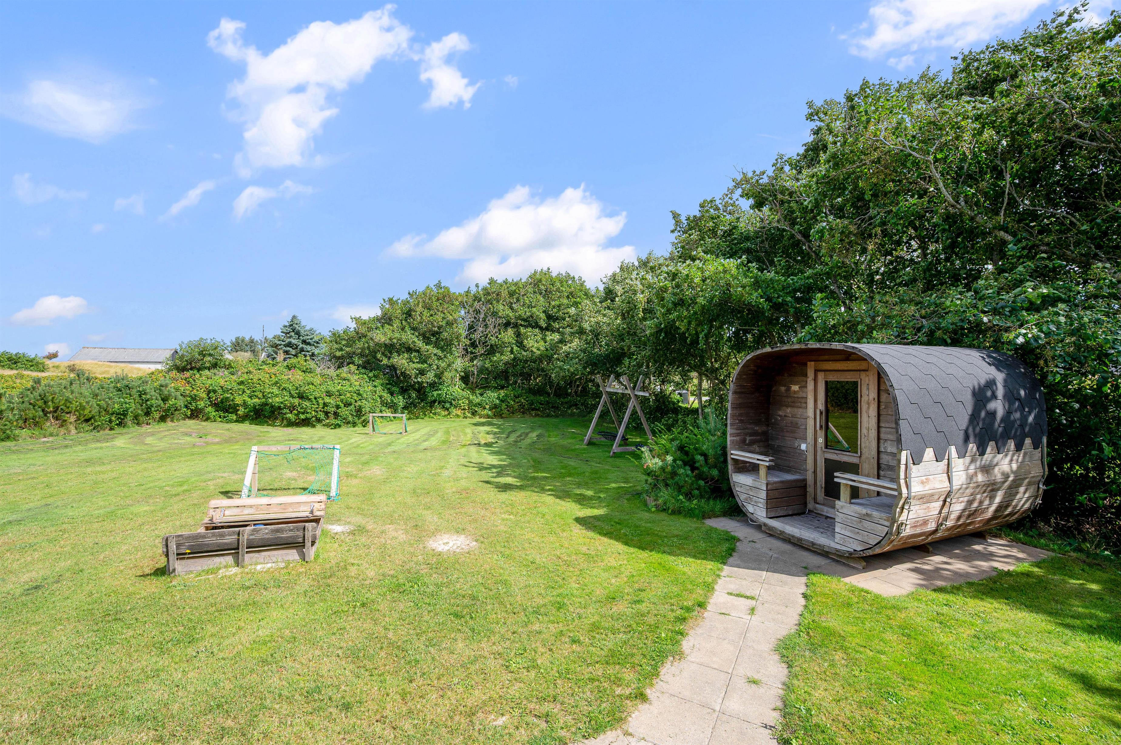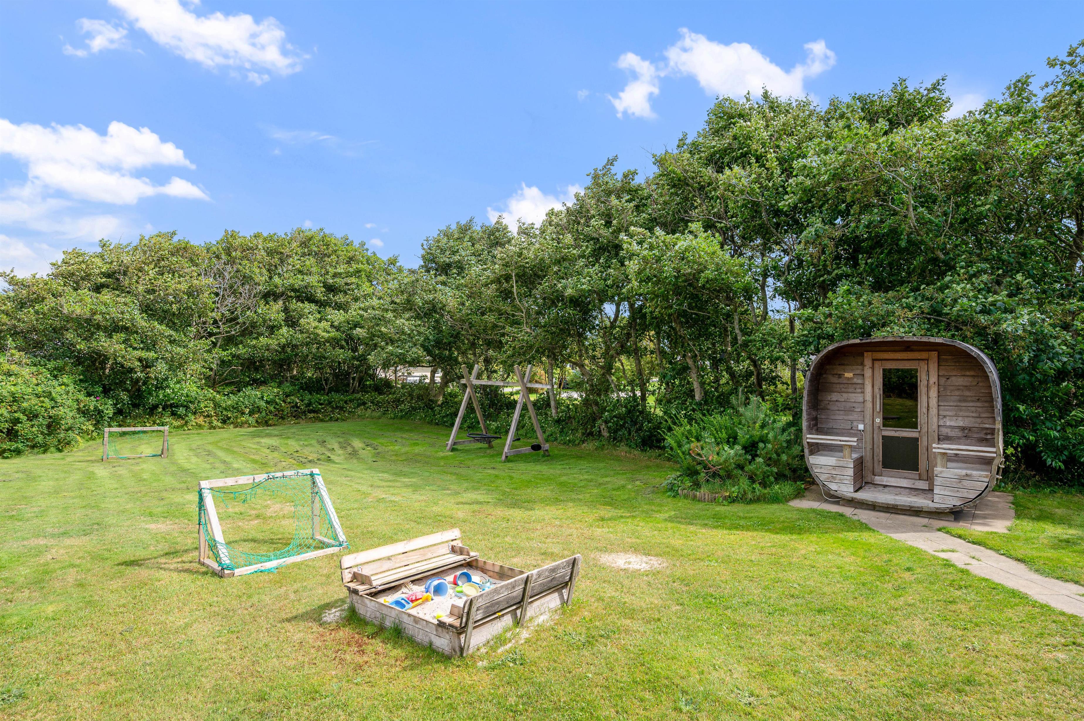The North Sea is just a short walk away, making it possible to enjoy a swim before or after meals. Afterwards, you can relax your muscles in the barrel sauna while children play in the sandpit, on the swing, or explore the grounds.