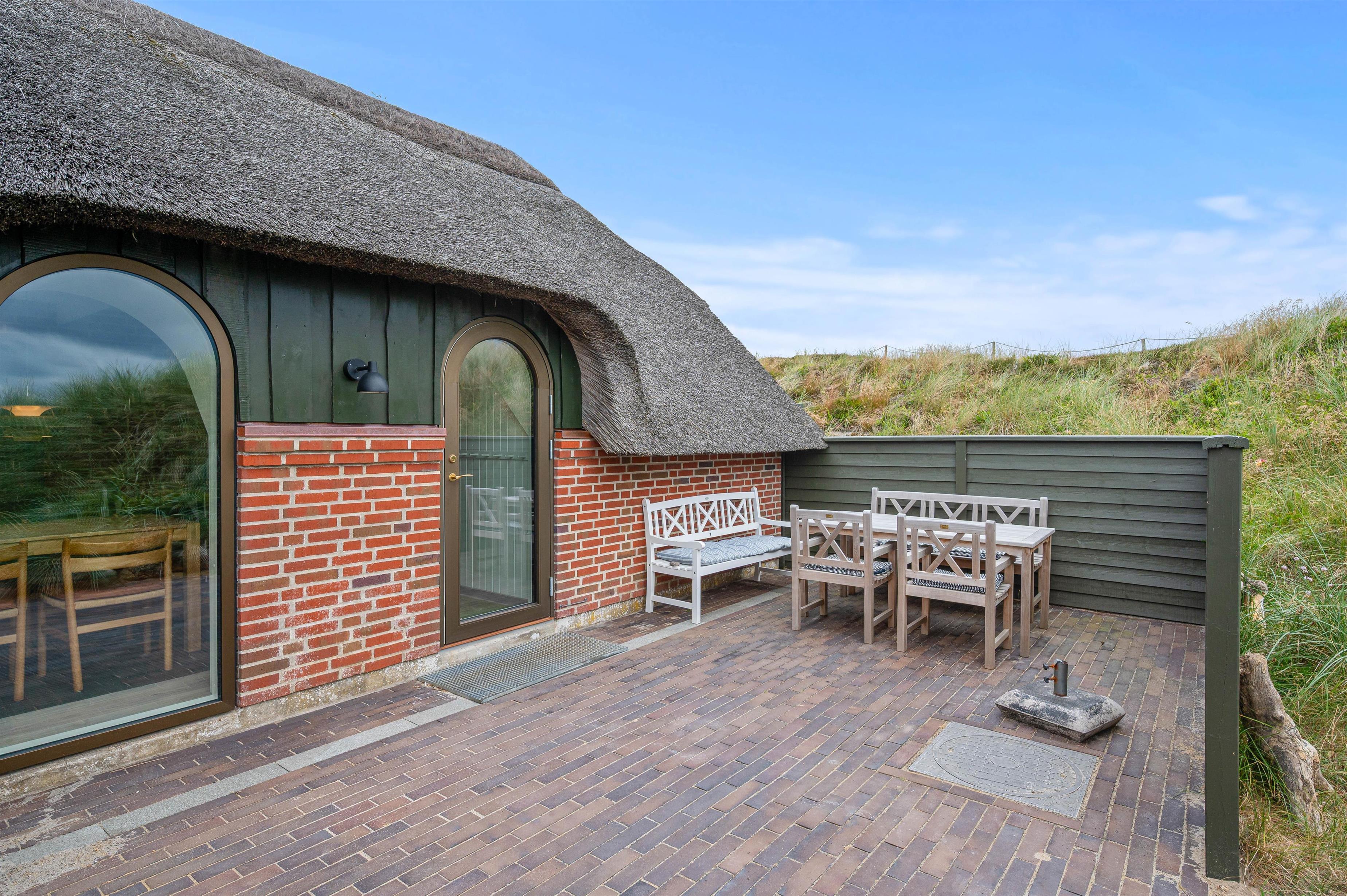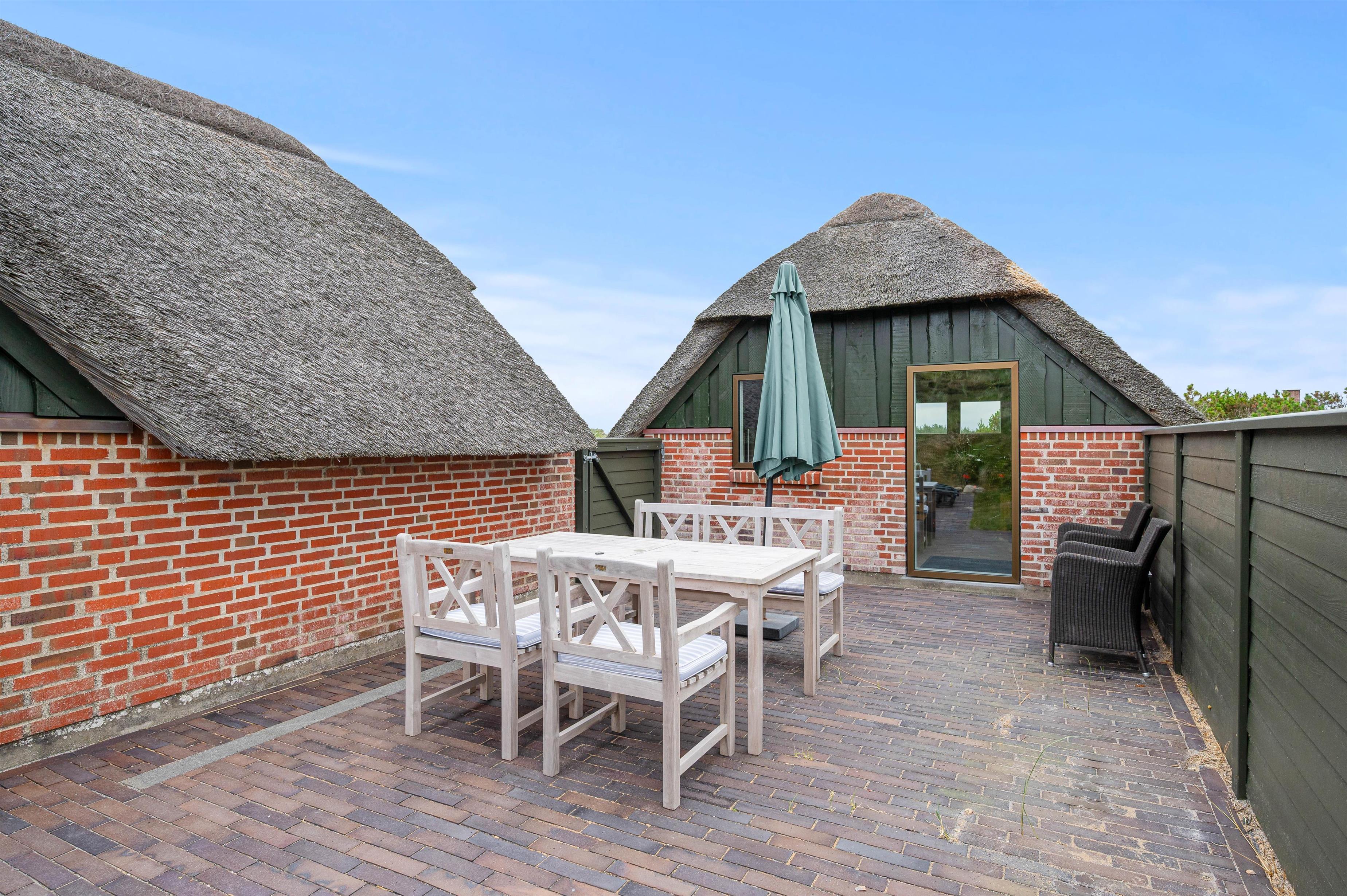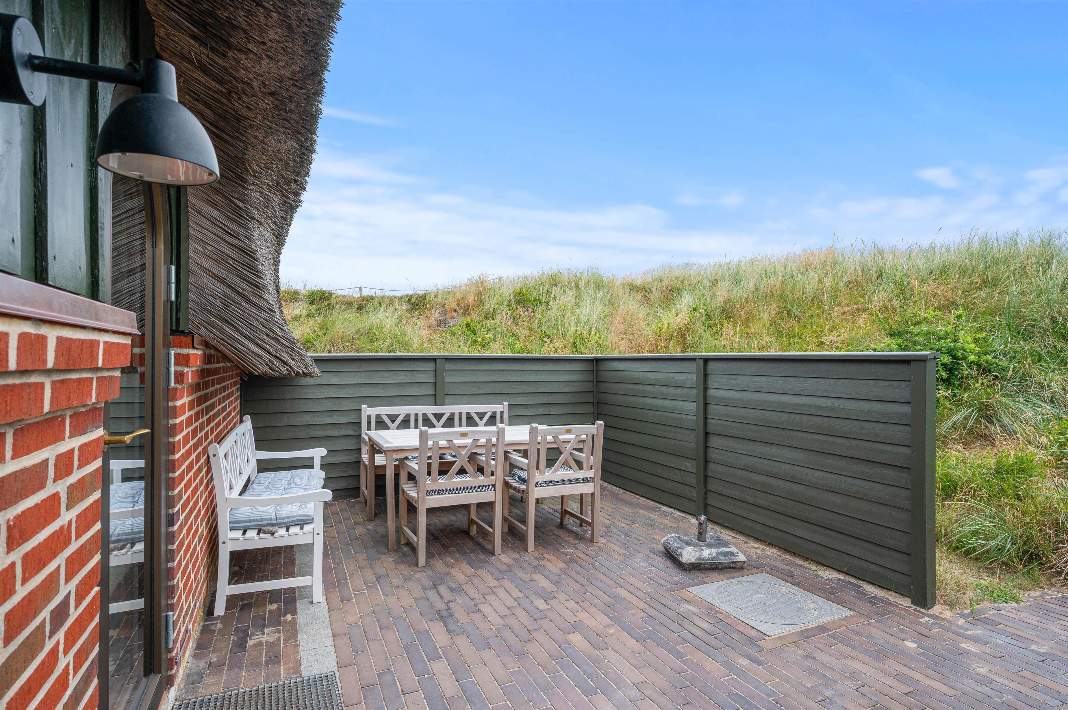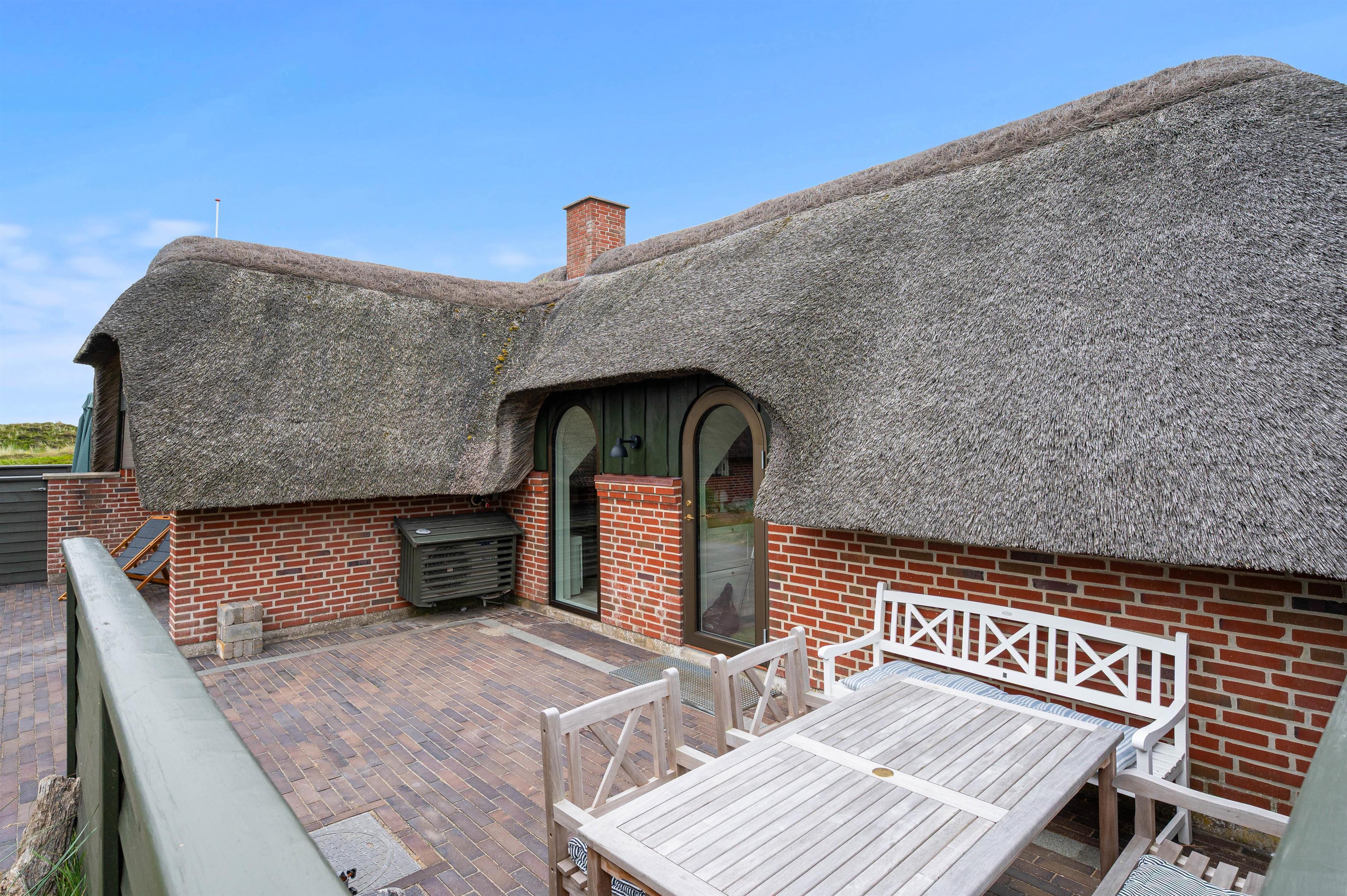 The open, partially sheltered terrace allows you to relax in the fresh North Sea air, complete with comfortable garden furniture and sun loungers for sunbathing. Being just 400 metres from the North Sea beach, you can likely hear the sound of the waves.
