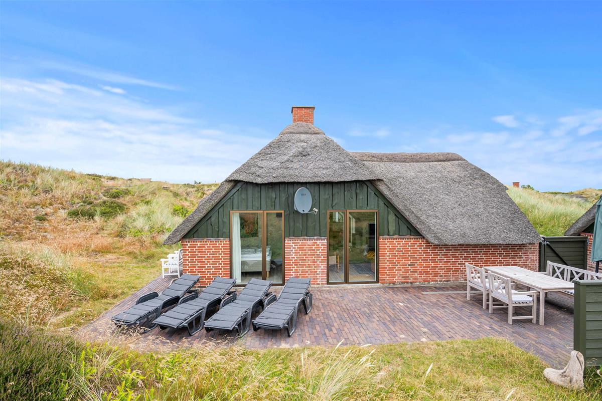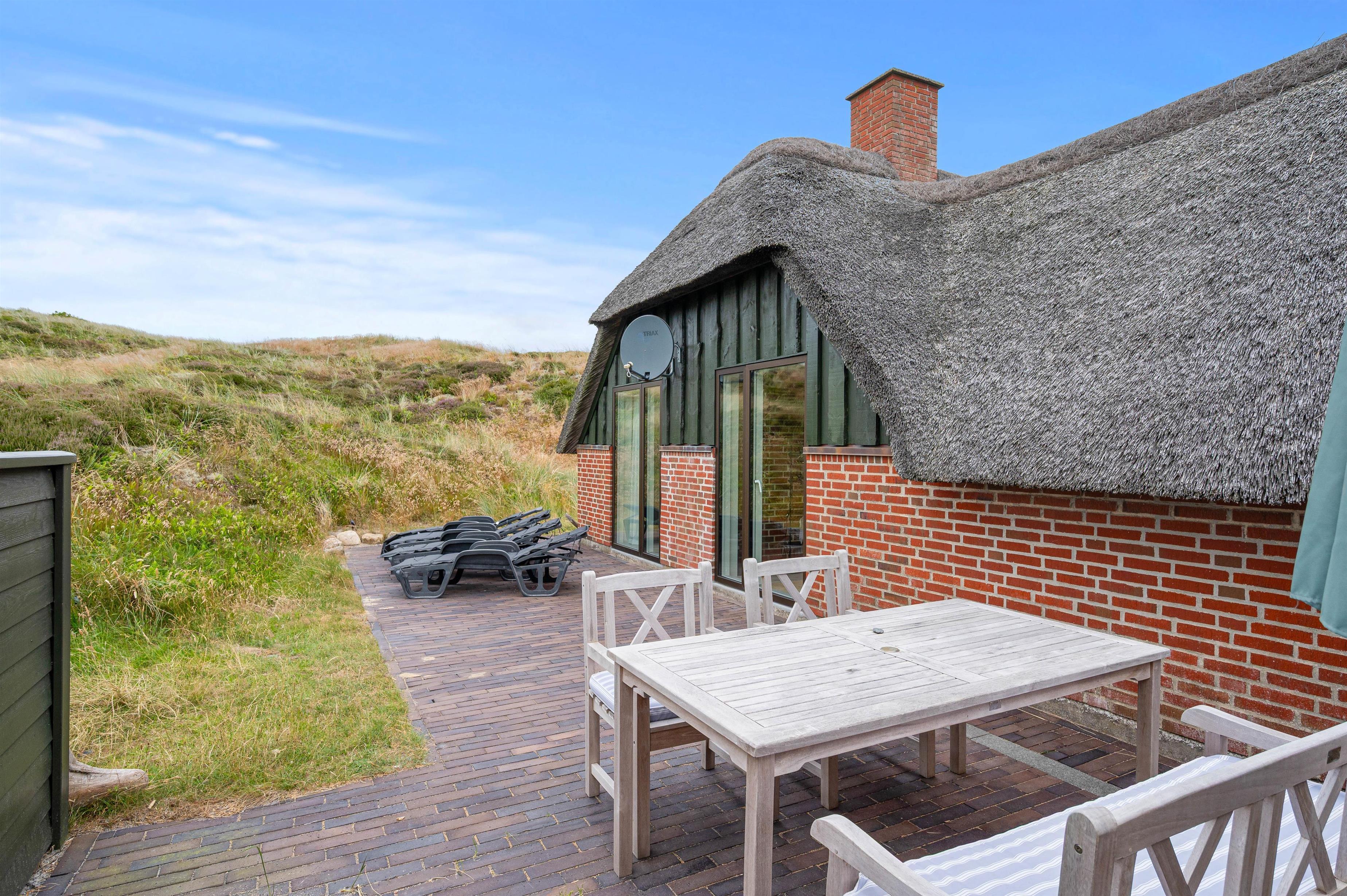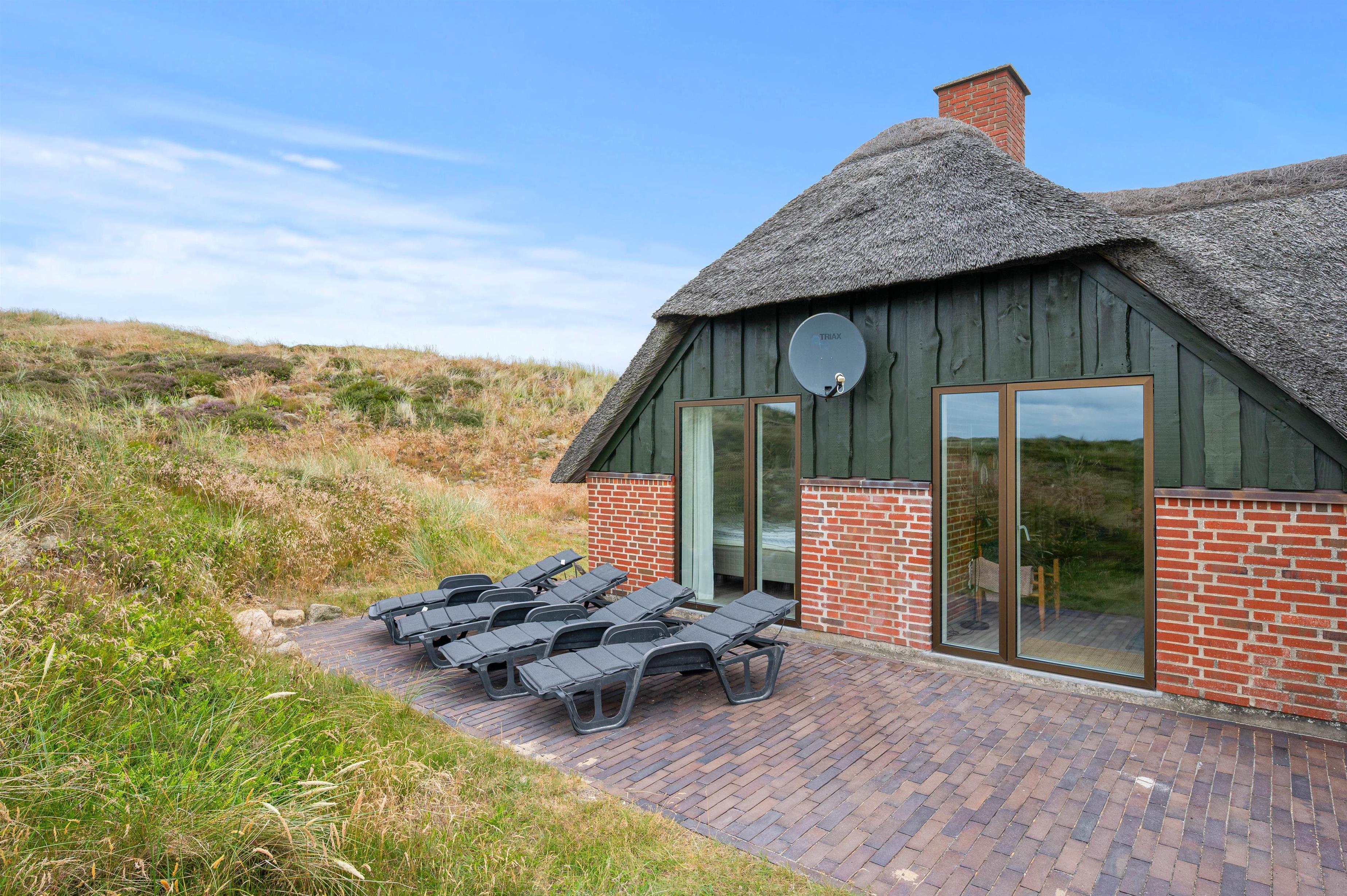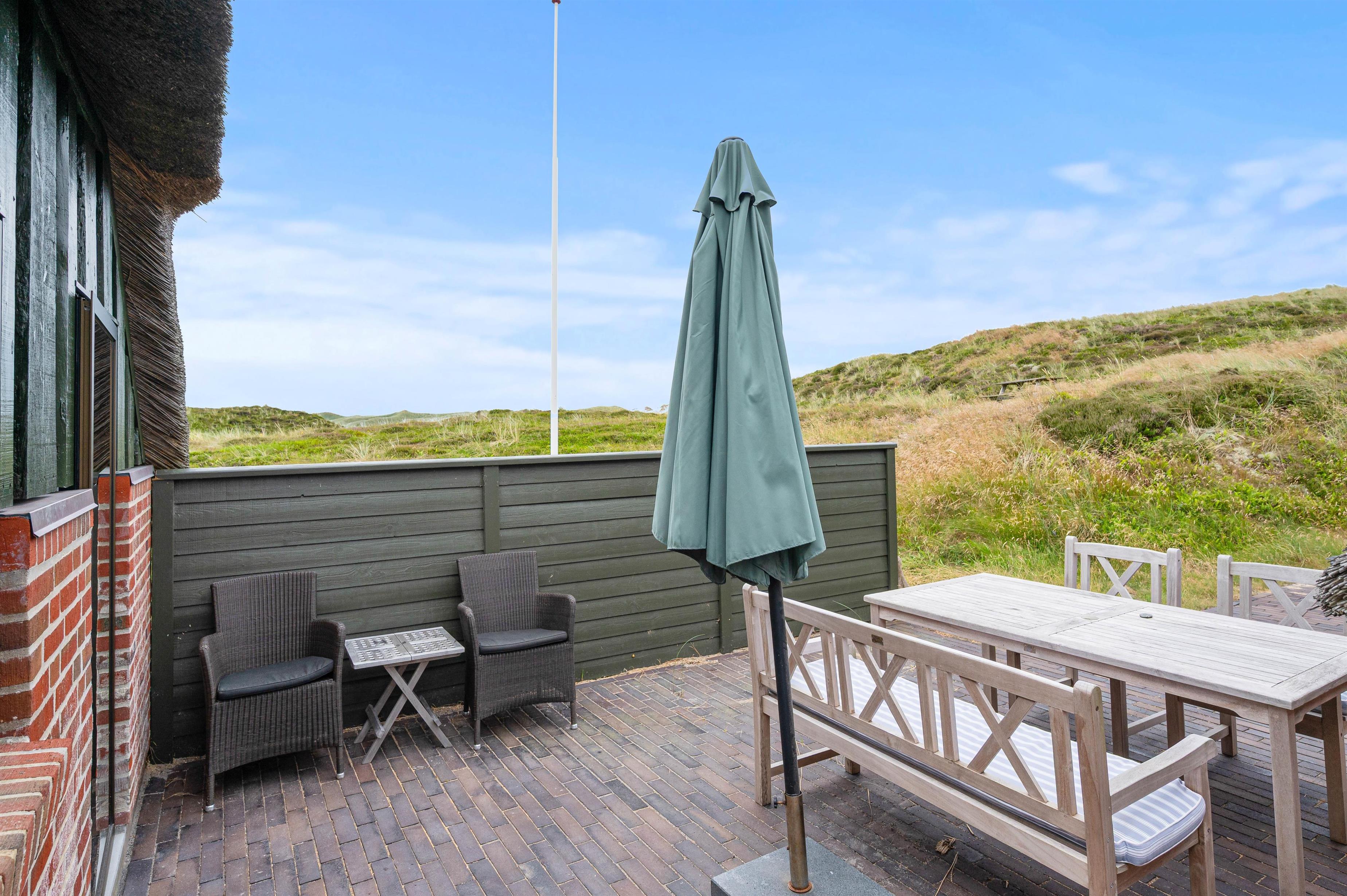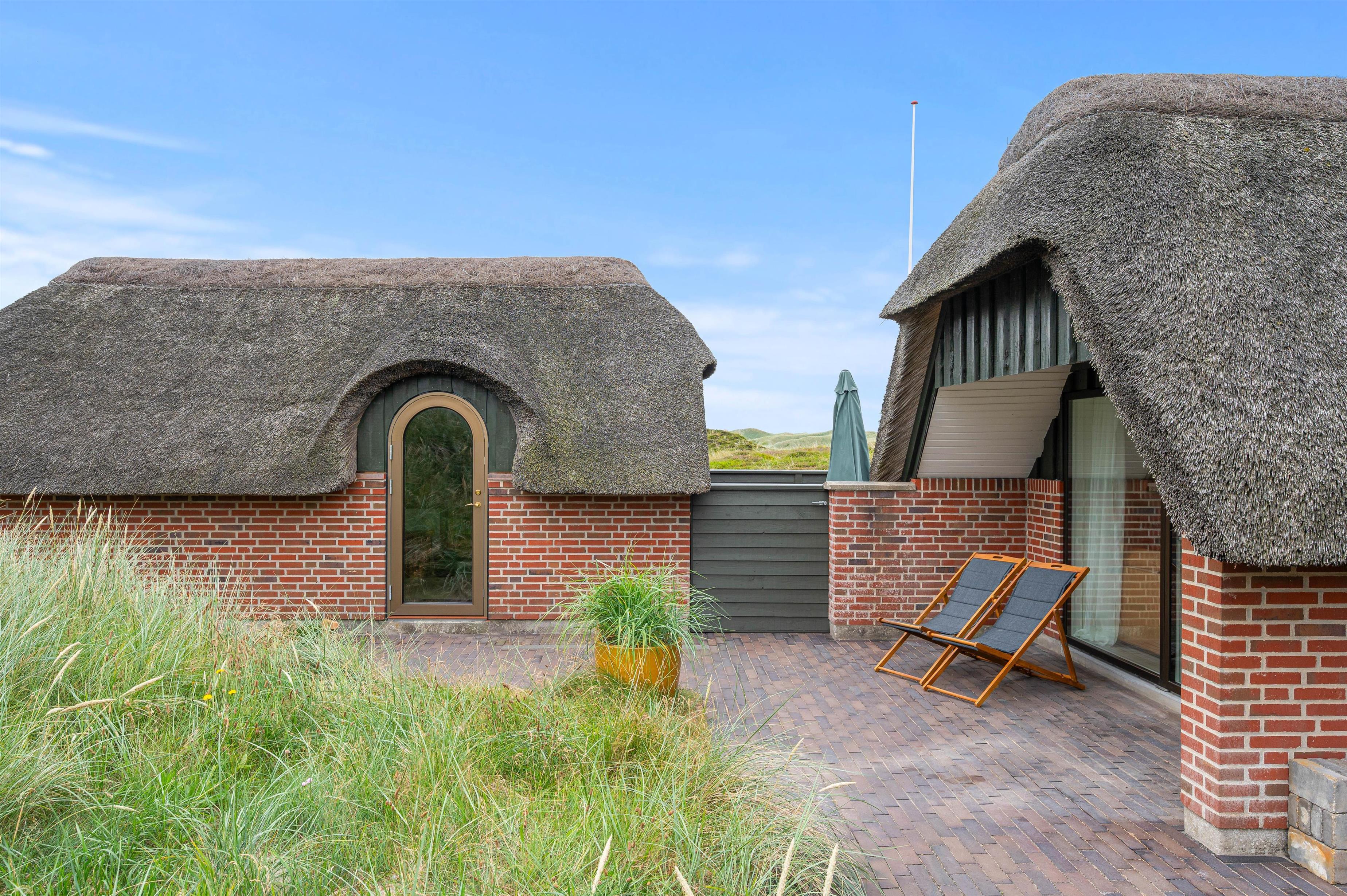 The open, partially sheltered terrace allows you to relax in the fresh North Sea air, complete with comfortable garden furniture and sun loungers for sunbathing. Being just 400 metres from the North Sea beach, you can likely hear the sound of the waves.