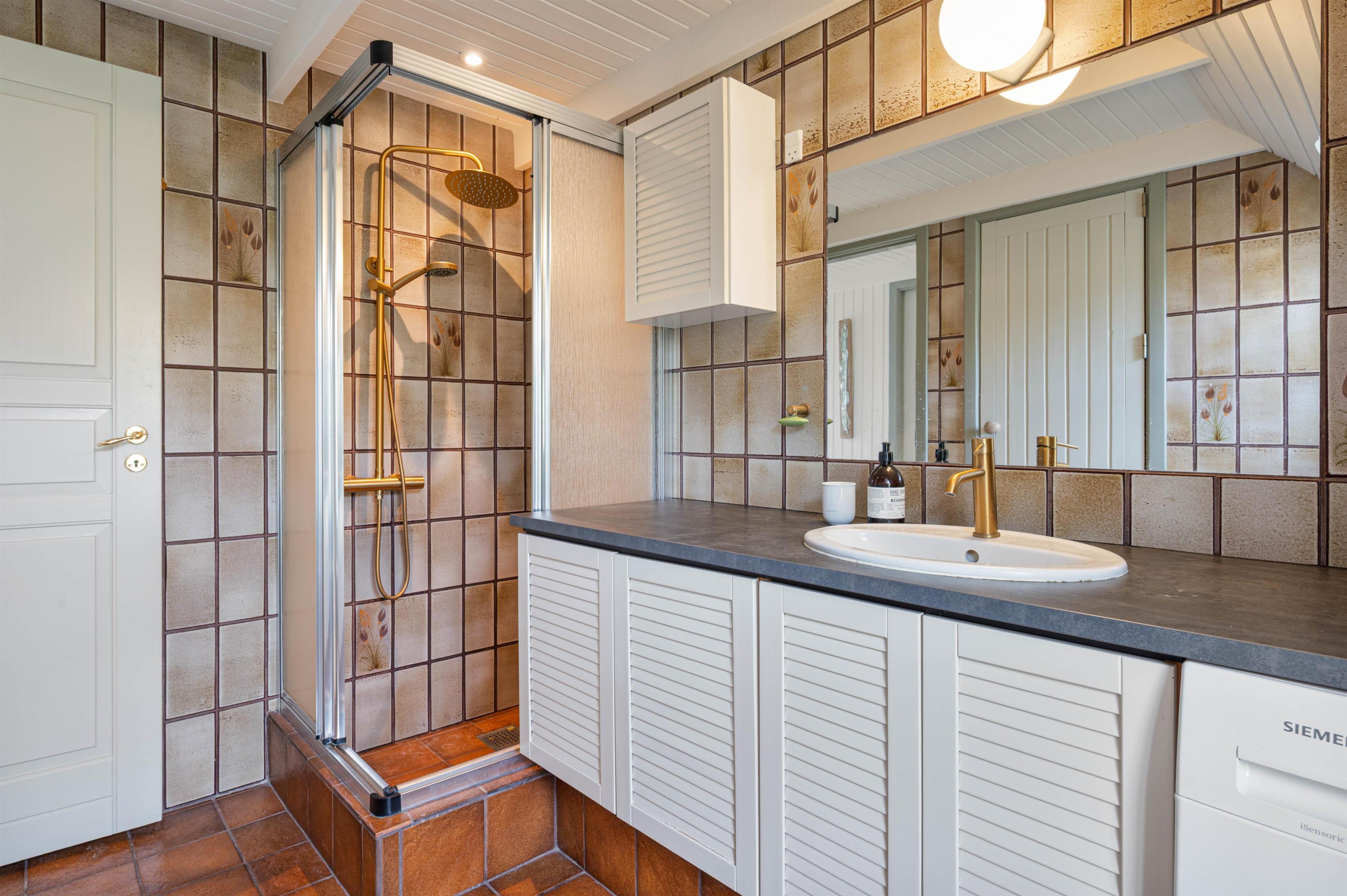 This well-maintained holiday home offers practical amenities and comfortable furnishings. An energy-efficient heat pump maintains a pleasant temperature throughout, complemented by a wood-burning stove that adds both warmth and atmosphere to the living area.