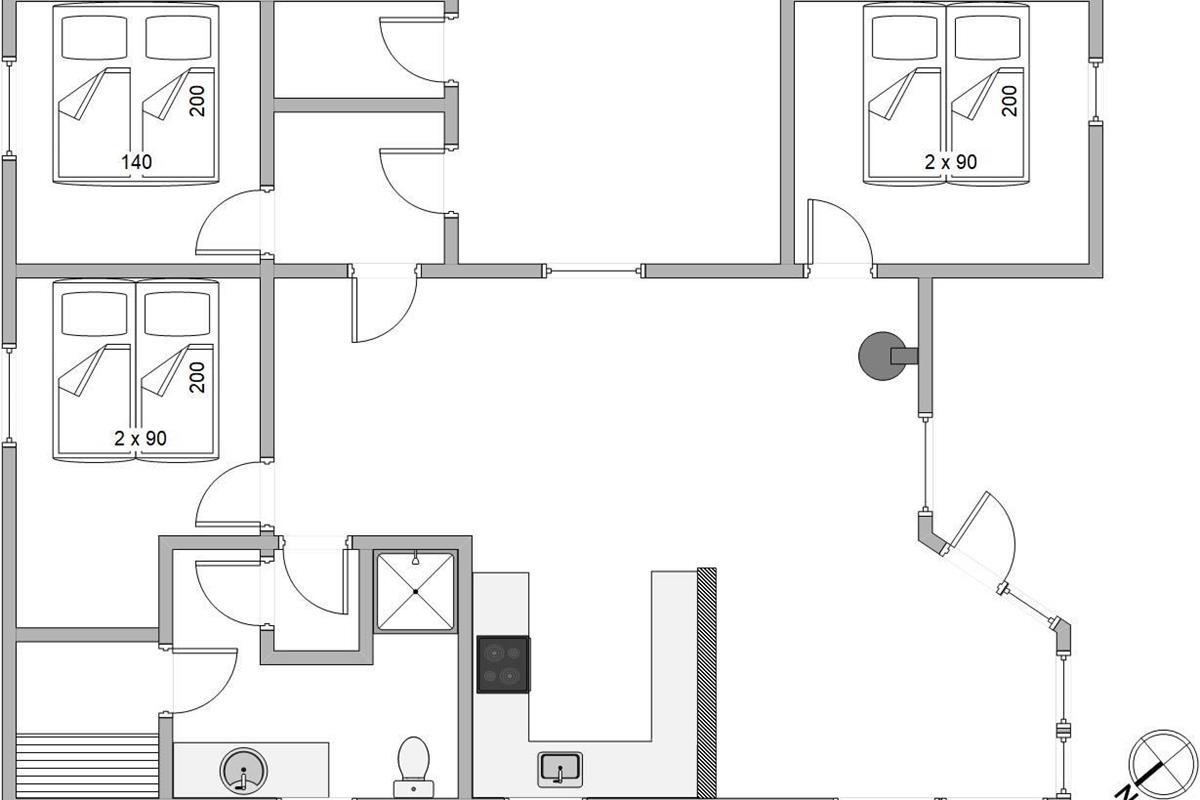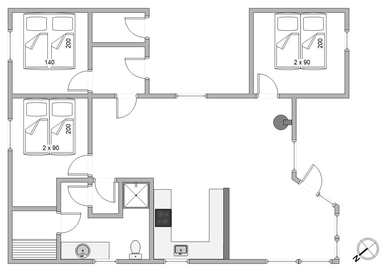 Your holiday home, renovated in 2018, features three comfortable bedrooms with double beds. The bathroom includes underfloor heating and a sauna for relaxing wellness evenings. The energy-efficient heat pump ensures comfortable temperatures in the living area throughout the year.
