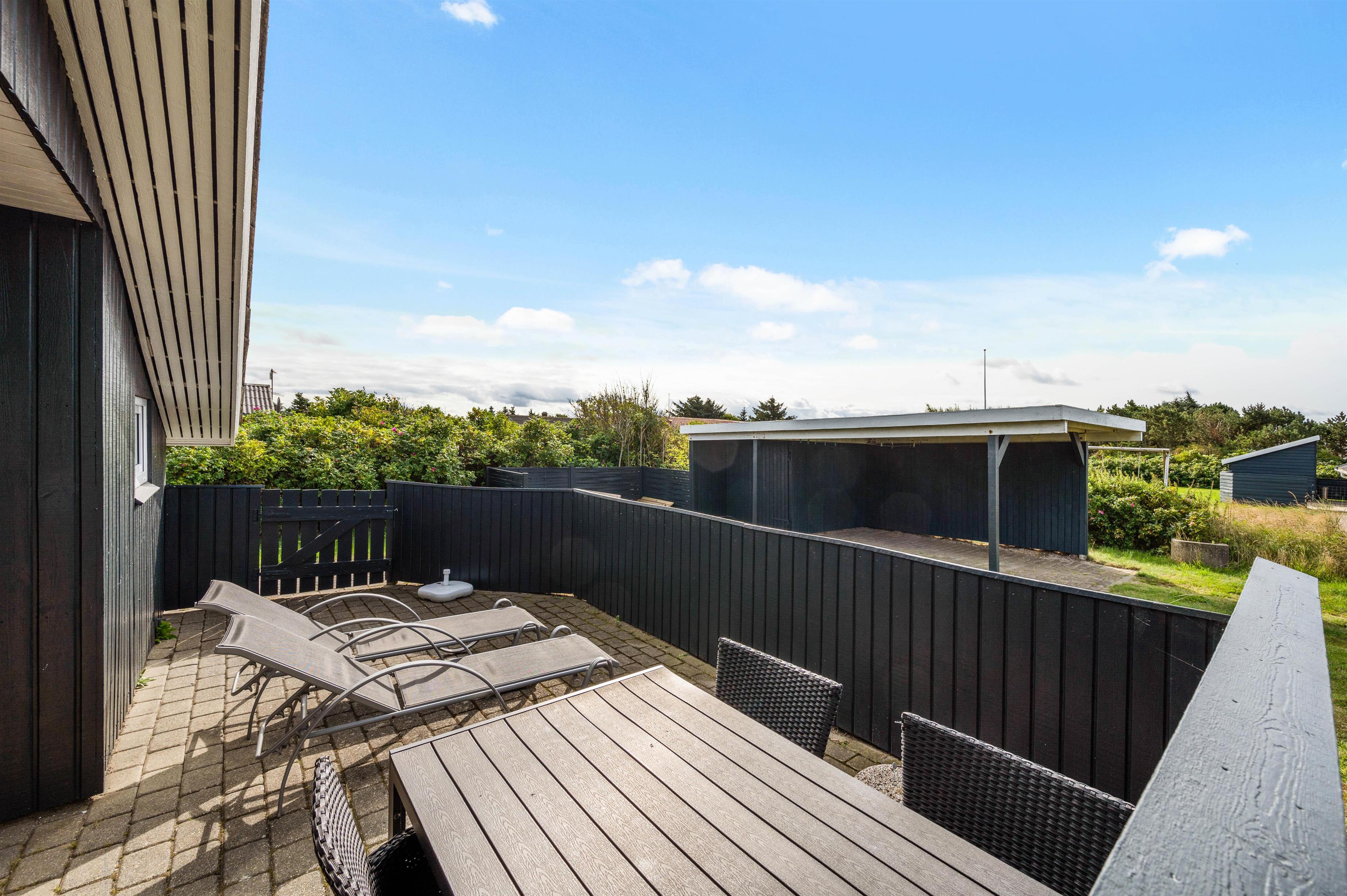 The house features a fully enclosed and partially covered terrace to the south and west, plus a small open terrace to the west. You can enjoy breakfast on the sheltered east terrace, which comes equipped with garden furniture, sun loungers and a barbecue.