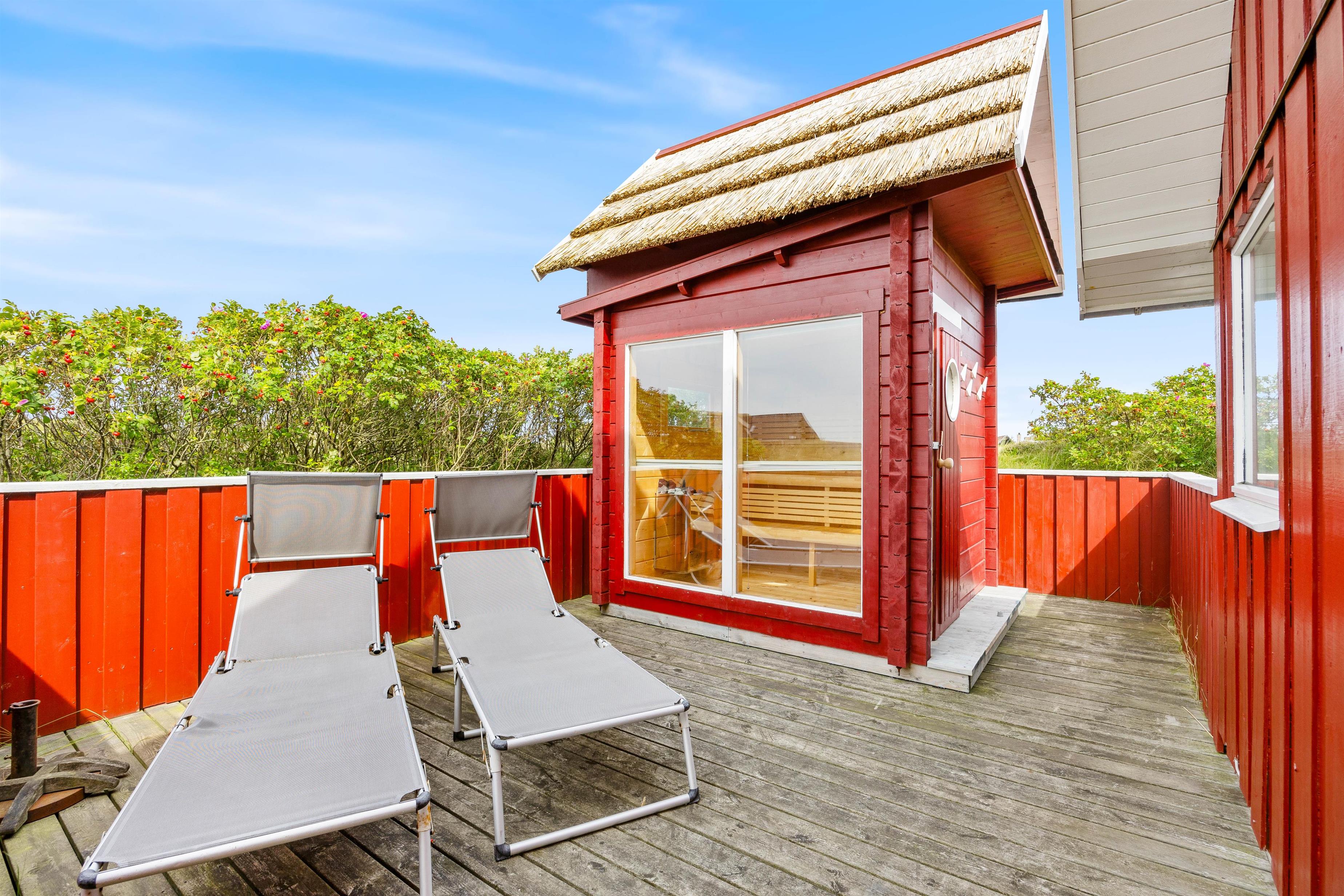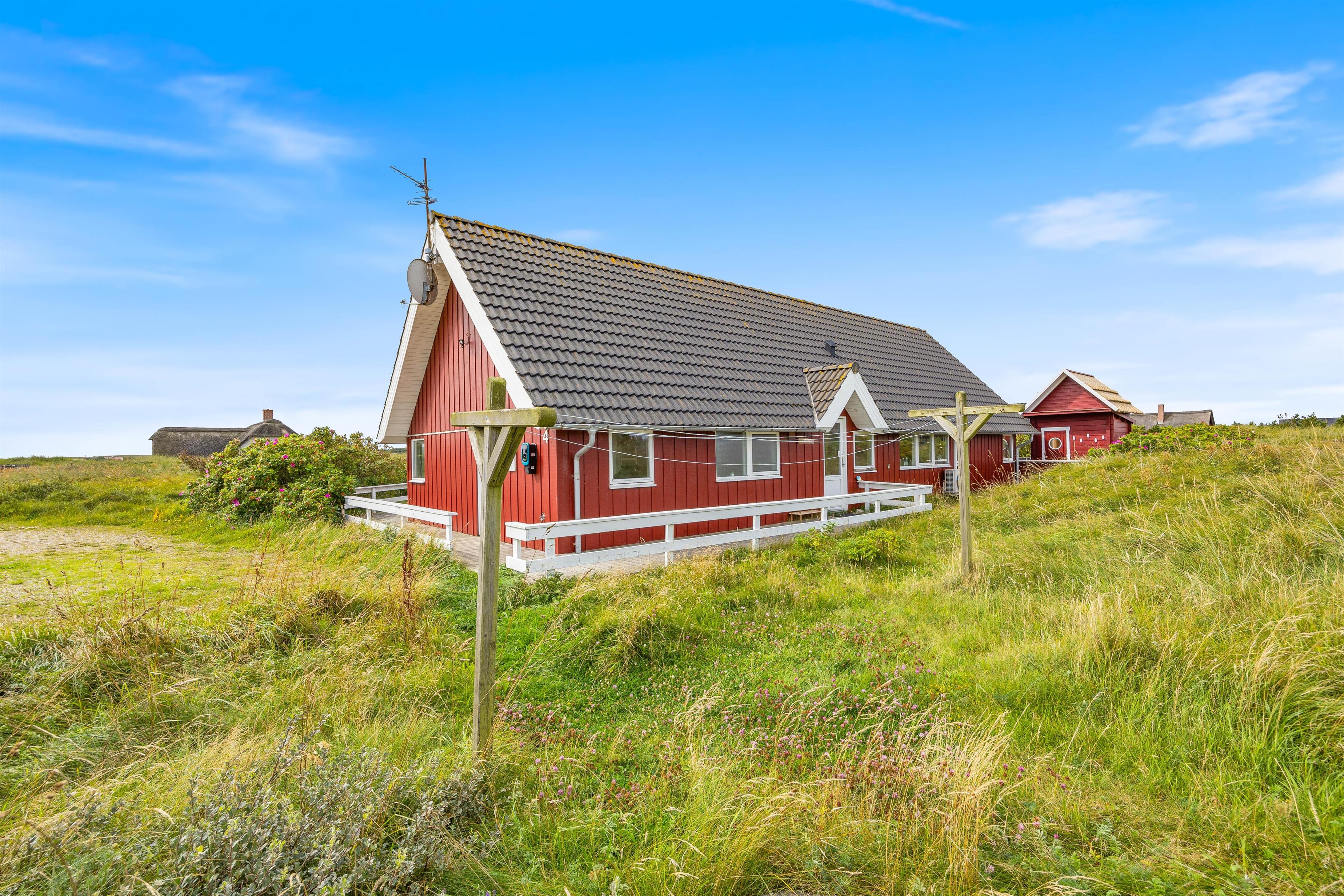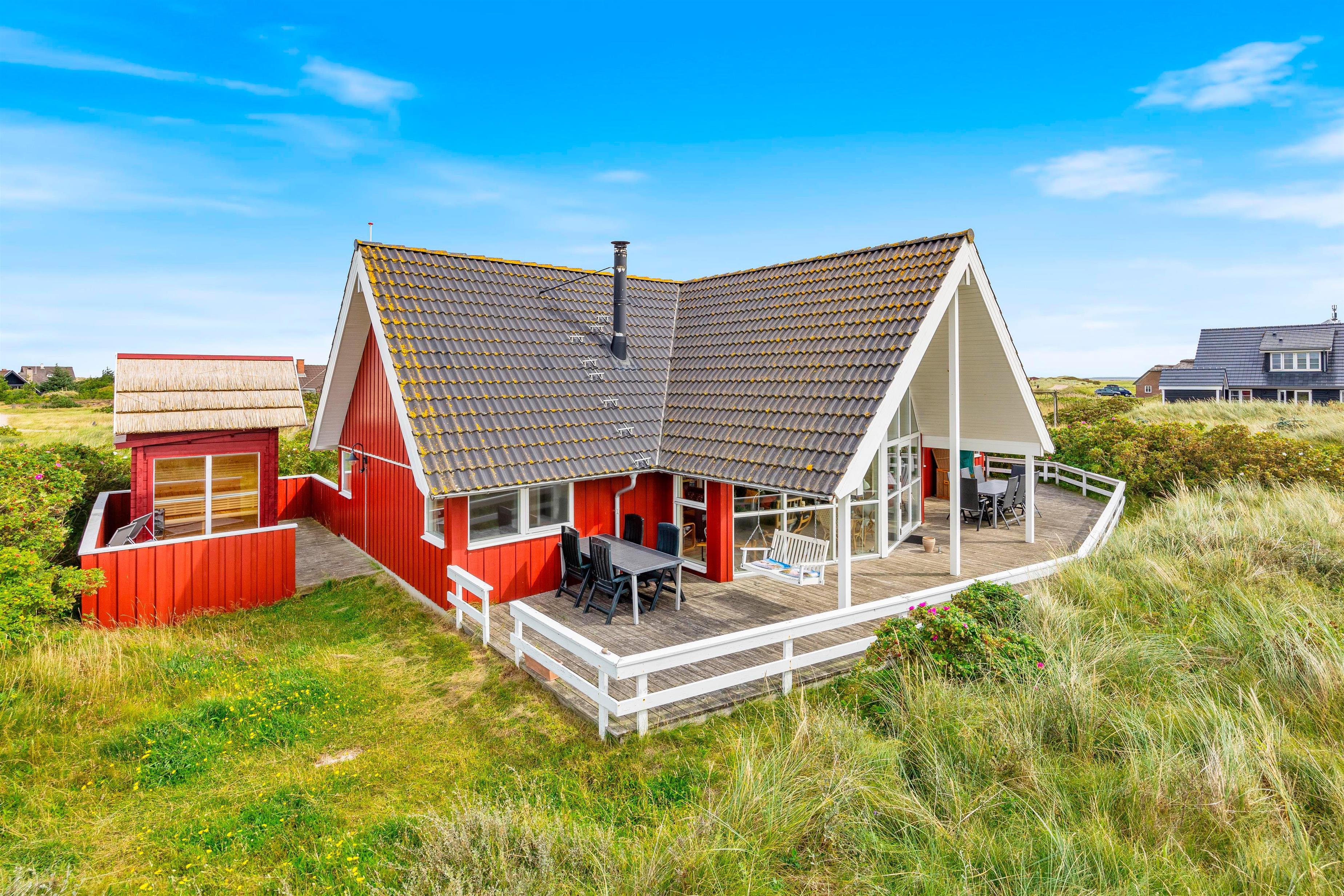The holiday home sits on beautiful natural grounds and features an outdoor sauna where you can relax and warm up after an invigorating swim in the North Sea. The holiday home offers electric car charging - simply bring your Type 2 charging cable.