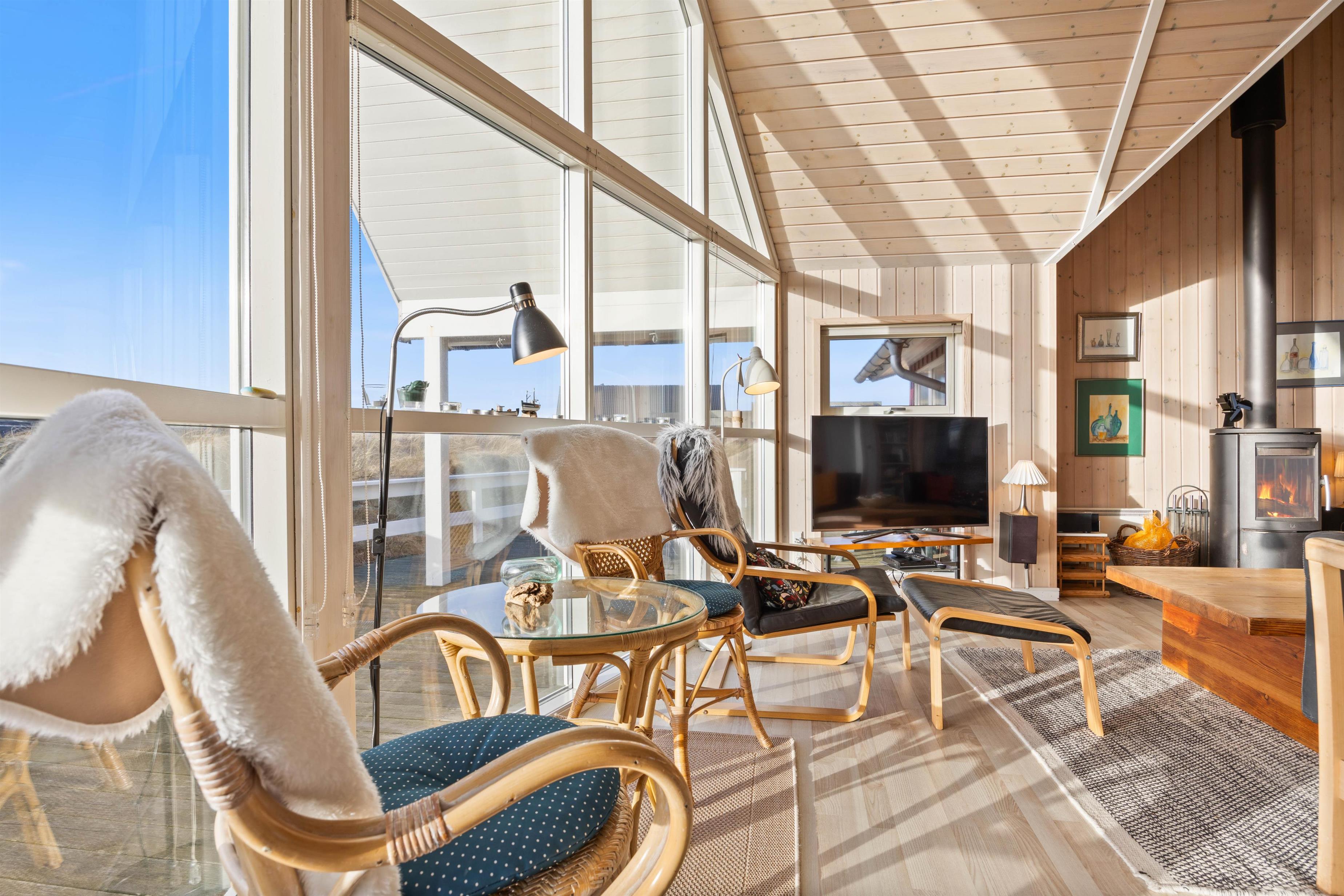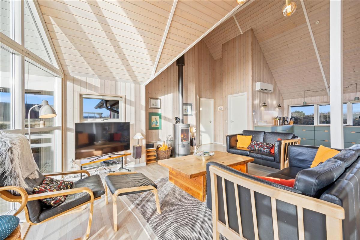 Relax and recharge in this truly beautiful holiday home, perfectly situated for those who love West Jutland's rugged nature and seek tranquillity. To the south of the holiday home lie extensive heathlands, while a short walk westward brings you to the beach and the thundering North Sea. The living room opens onto a large wooden terrace where you can spend many hours in the sun.