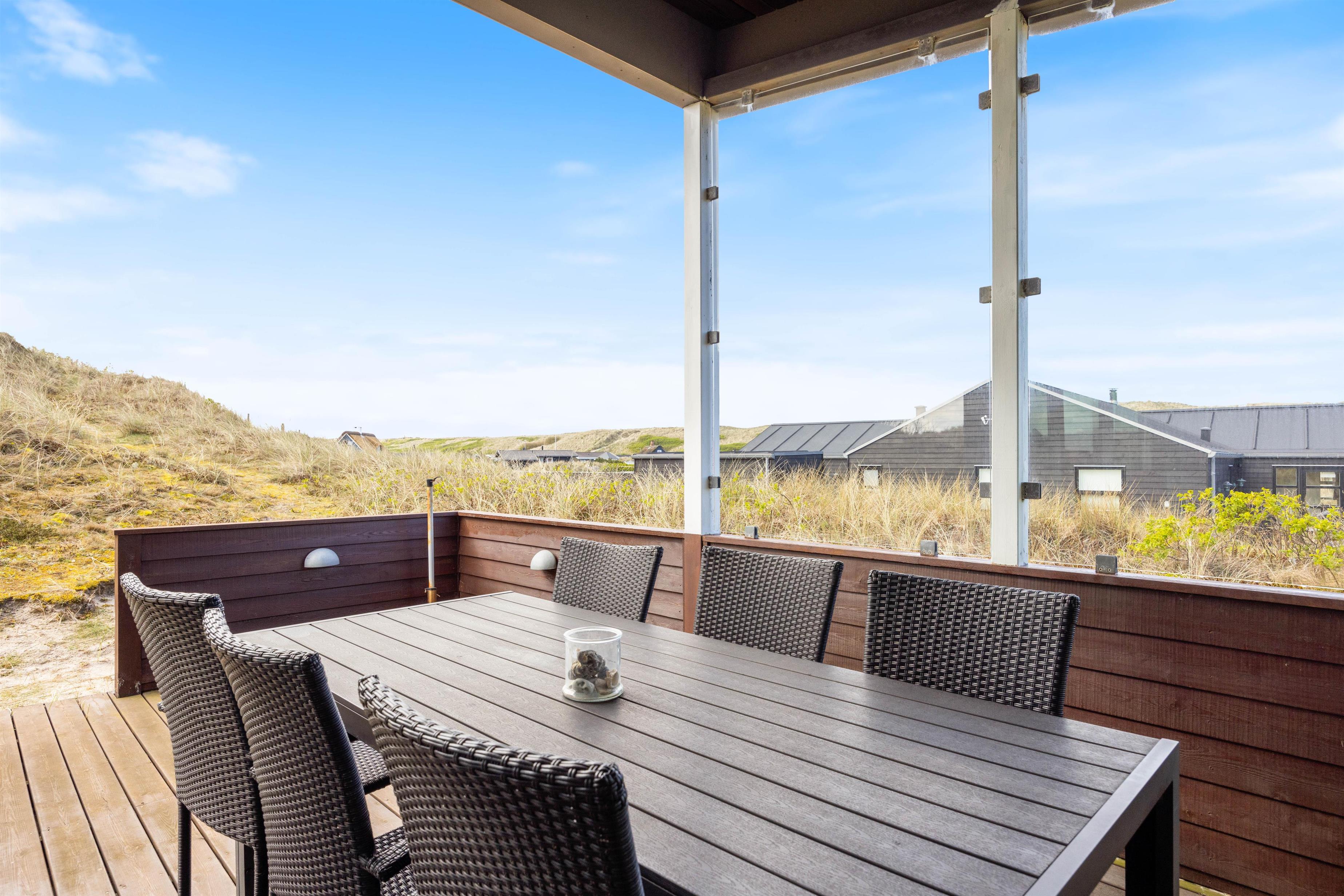 Your holiday home is surrounded by sheltered terraces on multiple sides. Thanks to partial roof coverage, you'll always find a protected spot to enjoy the fresh sea air. Savour freshly brewed coffee while letting your gaze wander across your natural grounds and the dunes. In the evening, make use of the holiday home's barbecue for a delicious outdoor meal to round off your holiday day.
