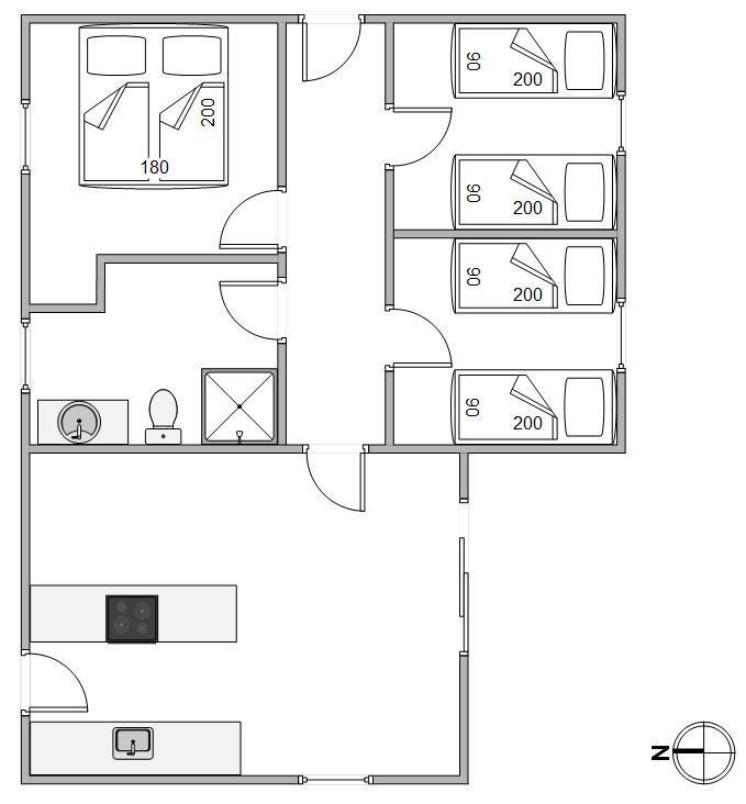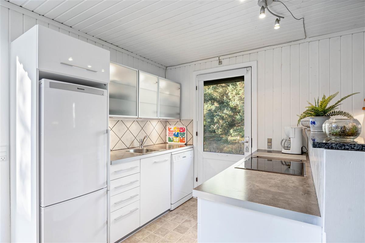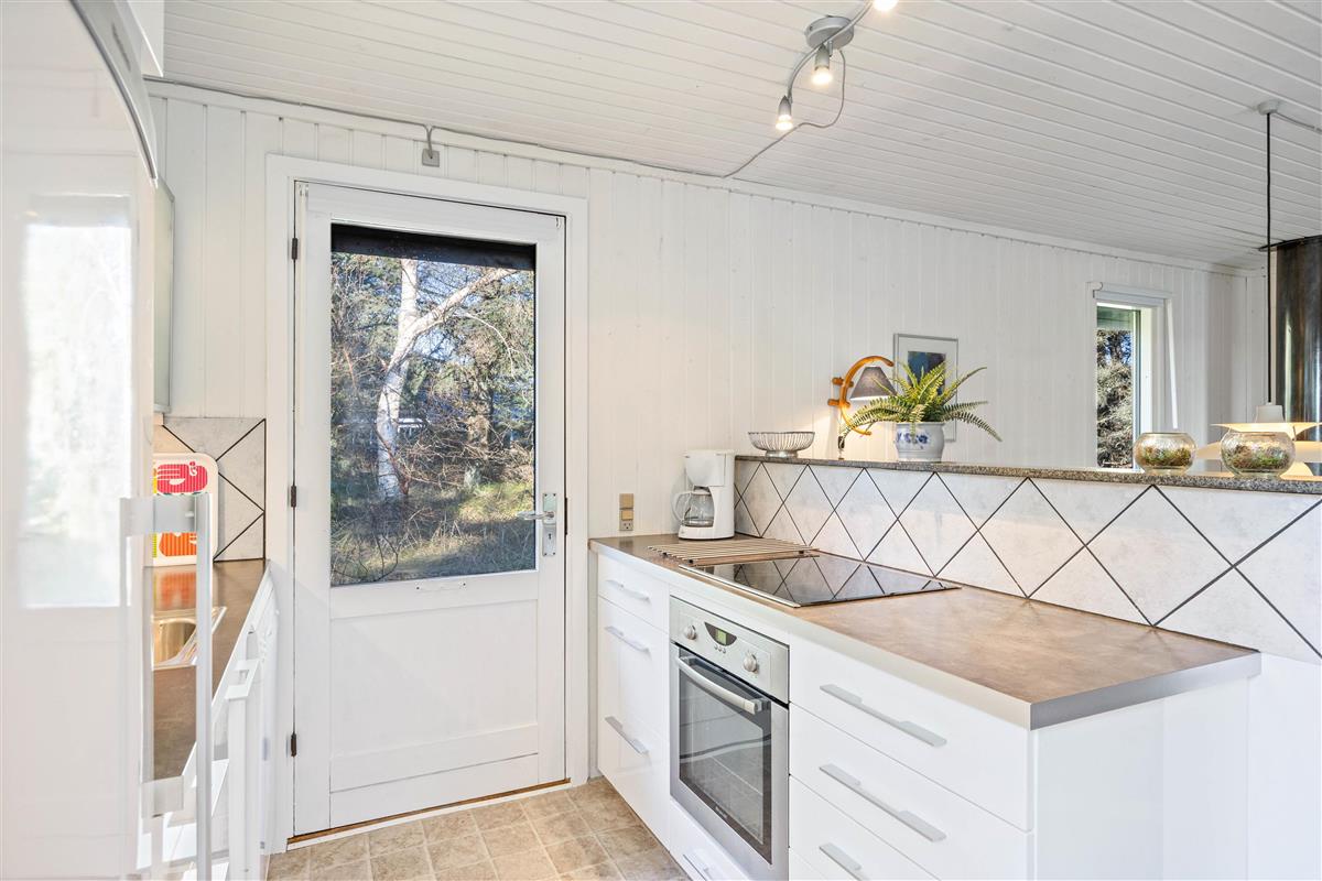 The holiday home offers a simple, welcoming atmosphere, enhanced by the wood-burning stove – providing cosy warmth on cooler days. The open-plan living area is perfect for relaxation, whether reading, playing games together or enjoying an evening in front of the television. The adjoining kitchen is practically equipped with a dishwasher, making meal preparation and clearing up afterwards pleasantly straightforward.