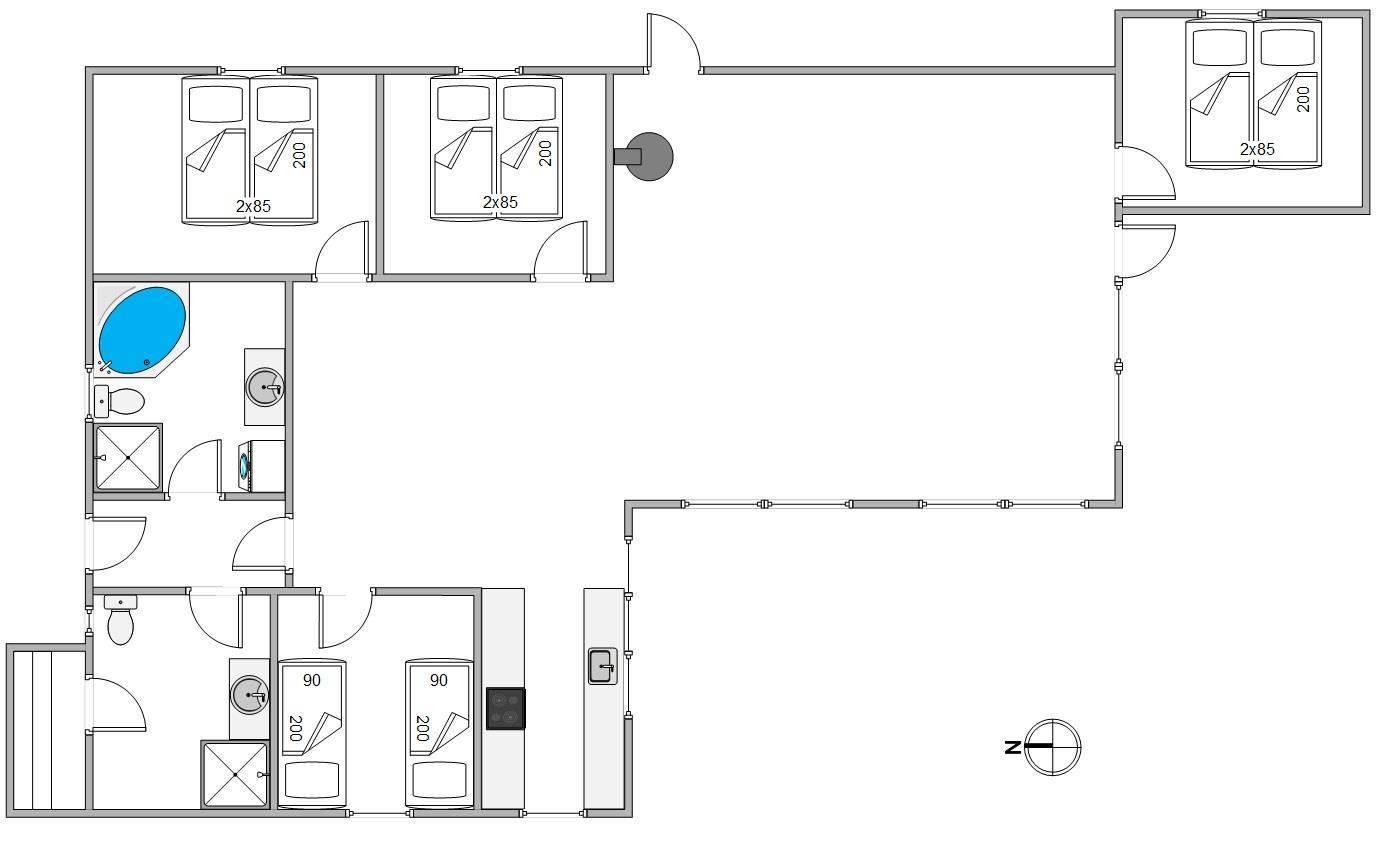 With two bathrooms and four bedrooms accommodating 8 people, the house is perfect for two families sharing. The washing machine and tumble dryer are particularly practical for families with children. An energy-efficient heat pump in the living area ensures comfortable temperatures even on cooler days.