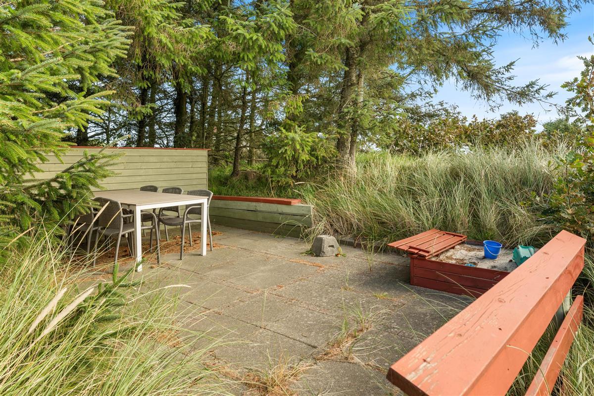 Various terrace areas around your holiday home invite relaxation. The terrace behind the house is well-sheltered by gentle dune hills and natural vegetation. Here you can read a book or enjoy coffee in the garden furniture even on windy days, while children play on the swing and in the sandpit.