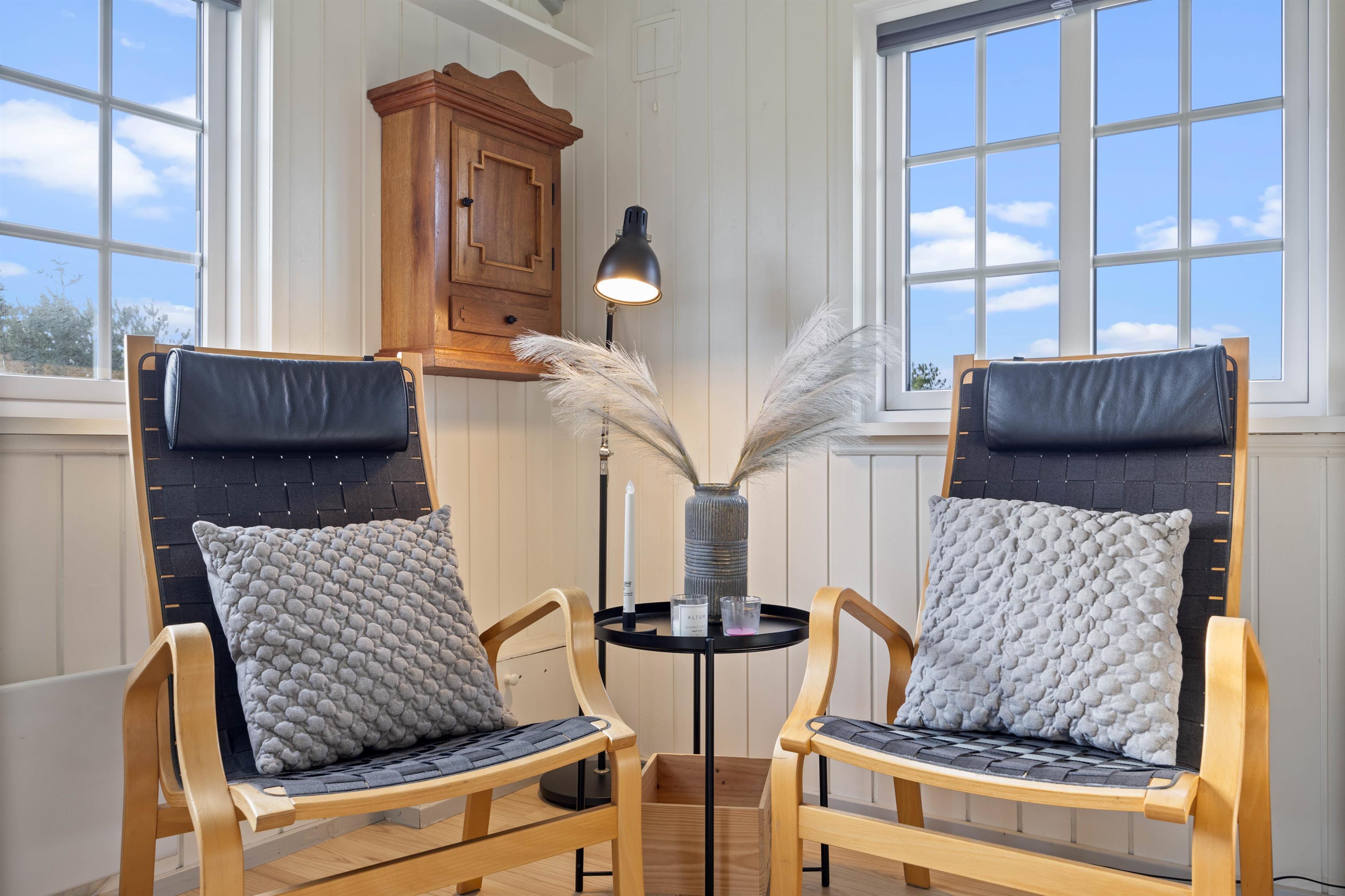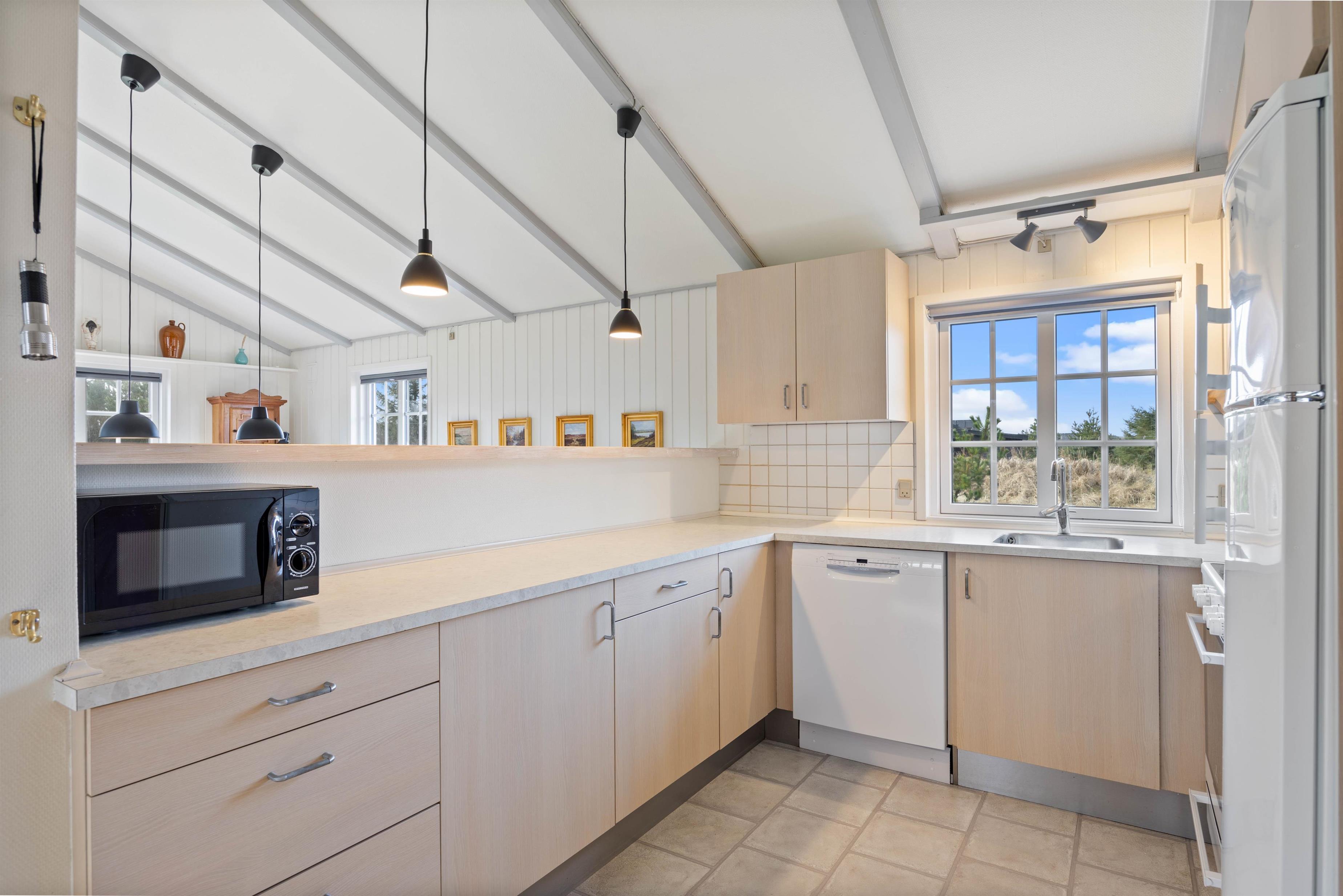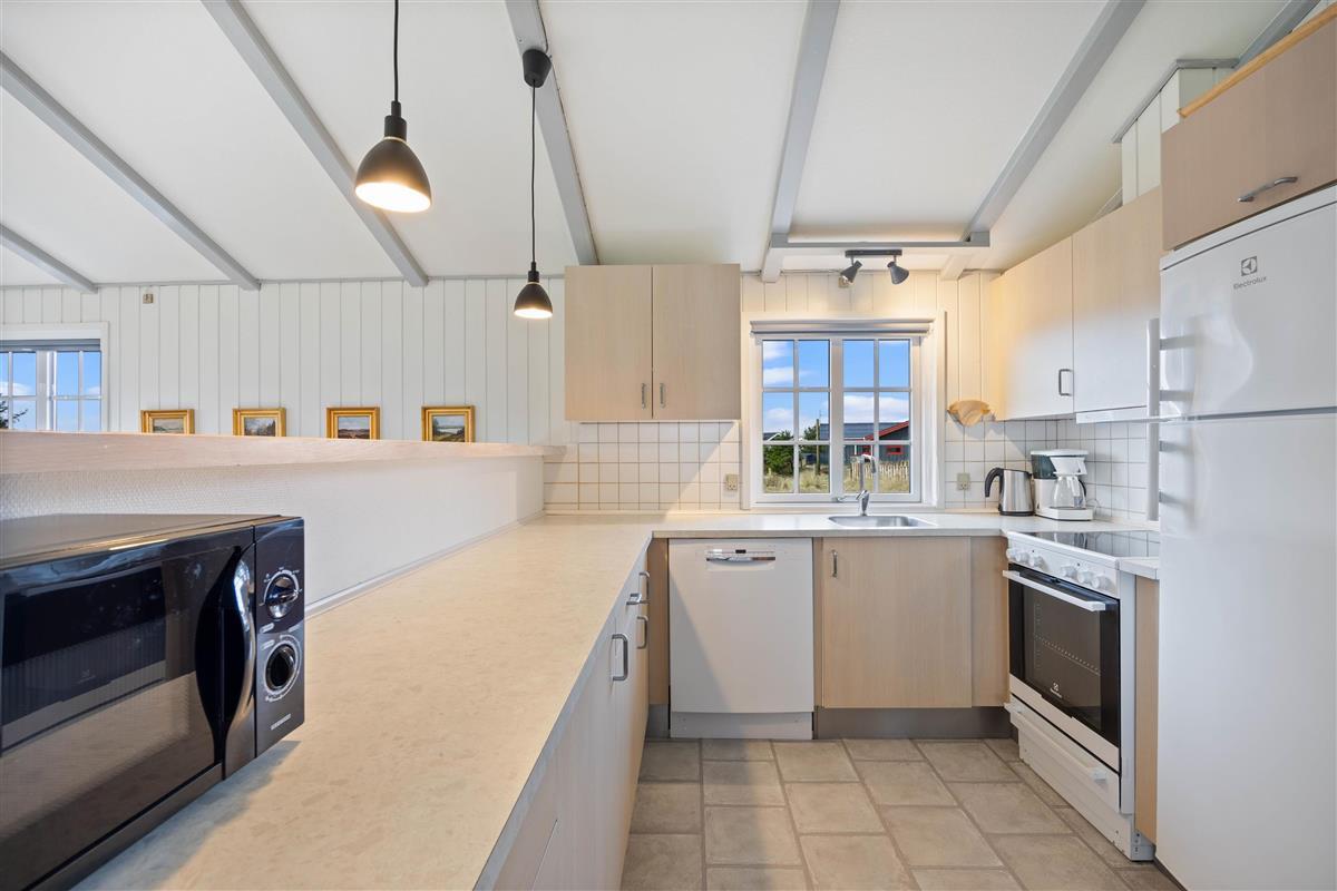 Your holiday home is situated in the southern part of Bjerregård, on the peninsula between the North Sea and Ringkøbing Fjord. Water is never far away - the sea is just a short walk through the heathland and dunes. Once there, you can walk for miles along the sandy beach, build sandcastles with your children, or enjoy a refreshing swim in the sea.