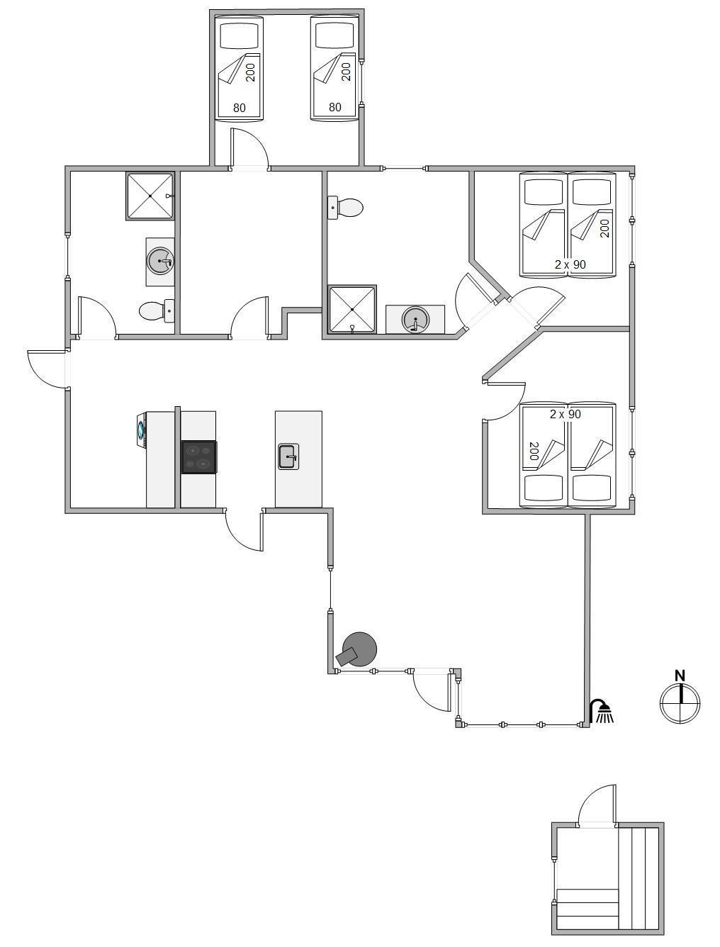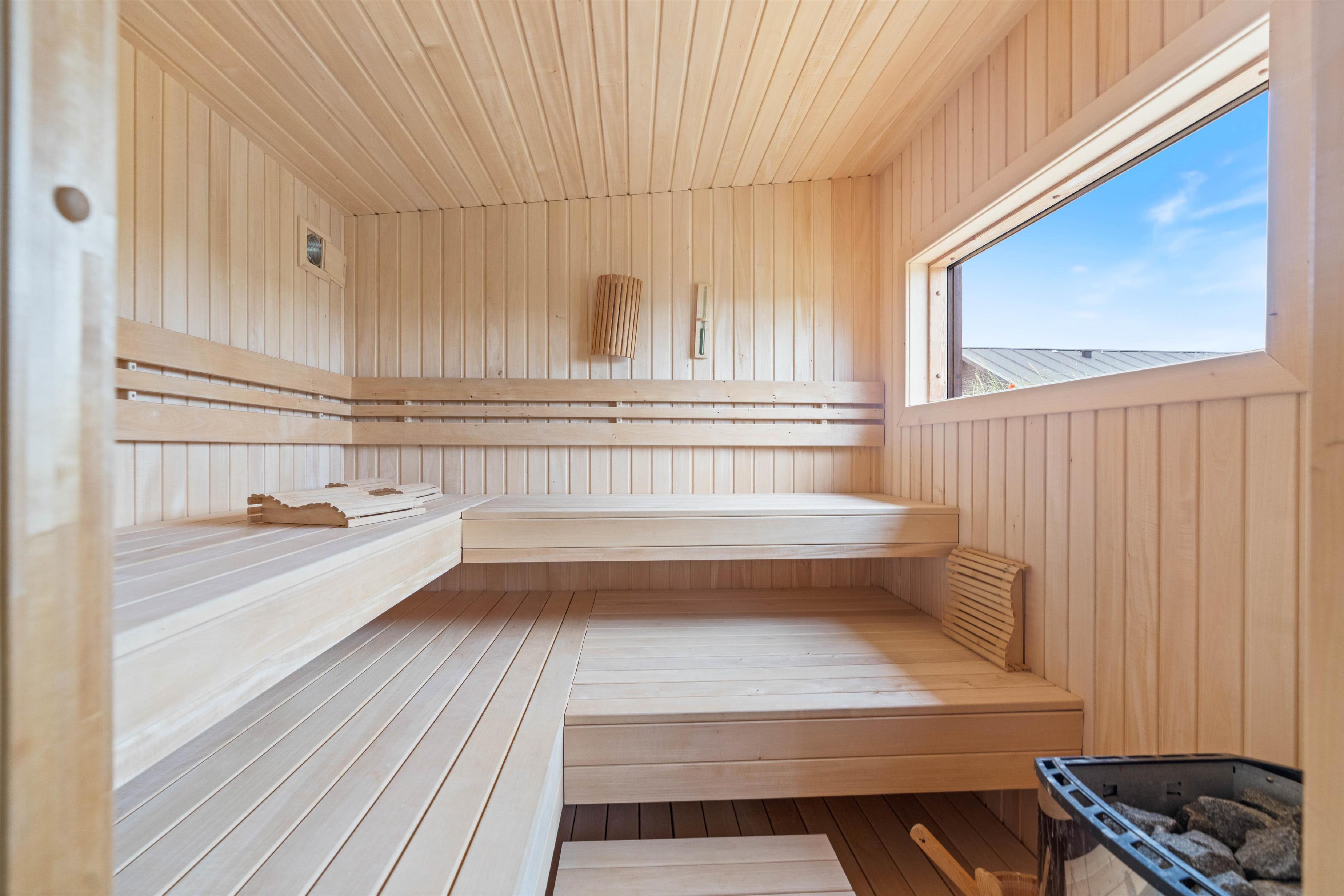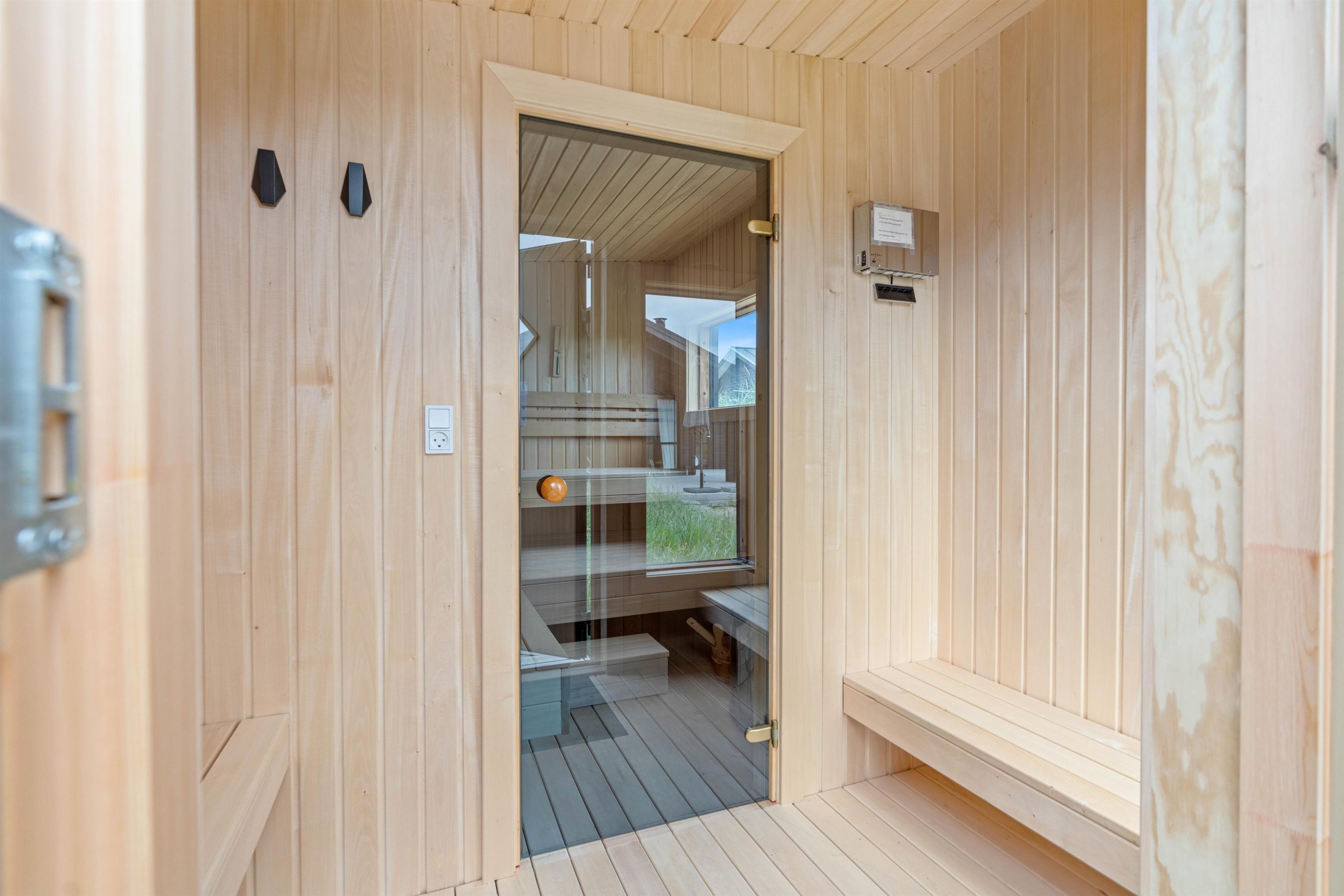 A special highlight is the sauna with space for three people lying down or six seated, and the outdoor shower (available April to November). Here you can easily take a day off to relax with several sauna sessions followed by lounging on the sun beds.