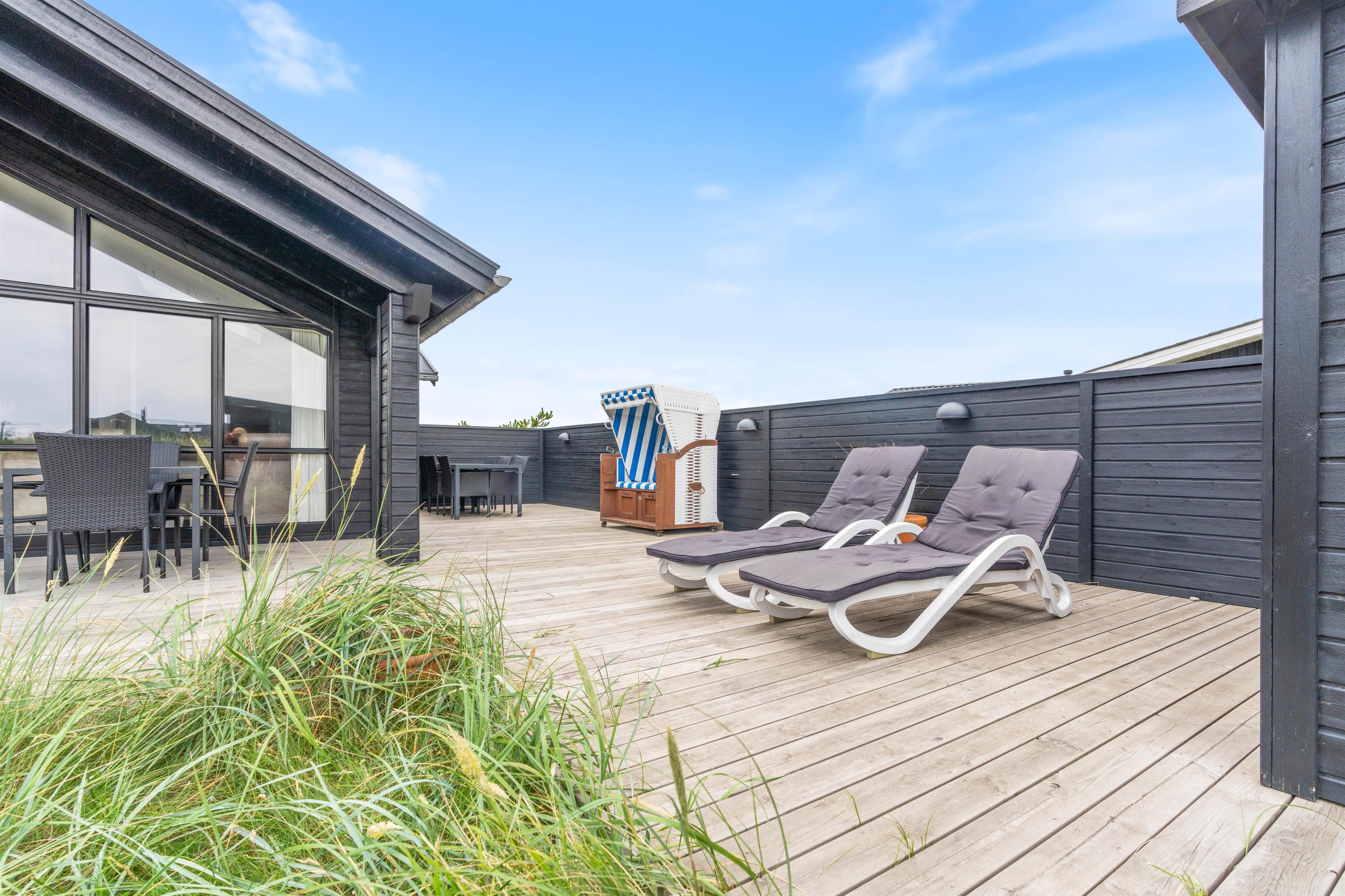 Whether in brilliant sunshine or drizzle, you can enjoy the beneficial North Sea air year-round, as the terrace is partially covered and wind-protected. A traditional beach chair (Strandkorb) on wheels can be moved for optimal wind protection.