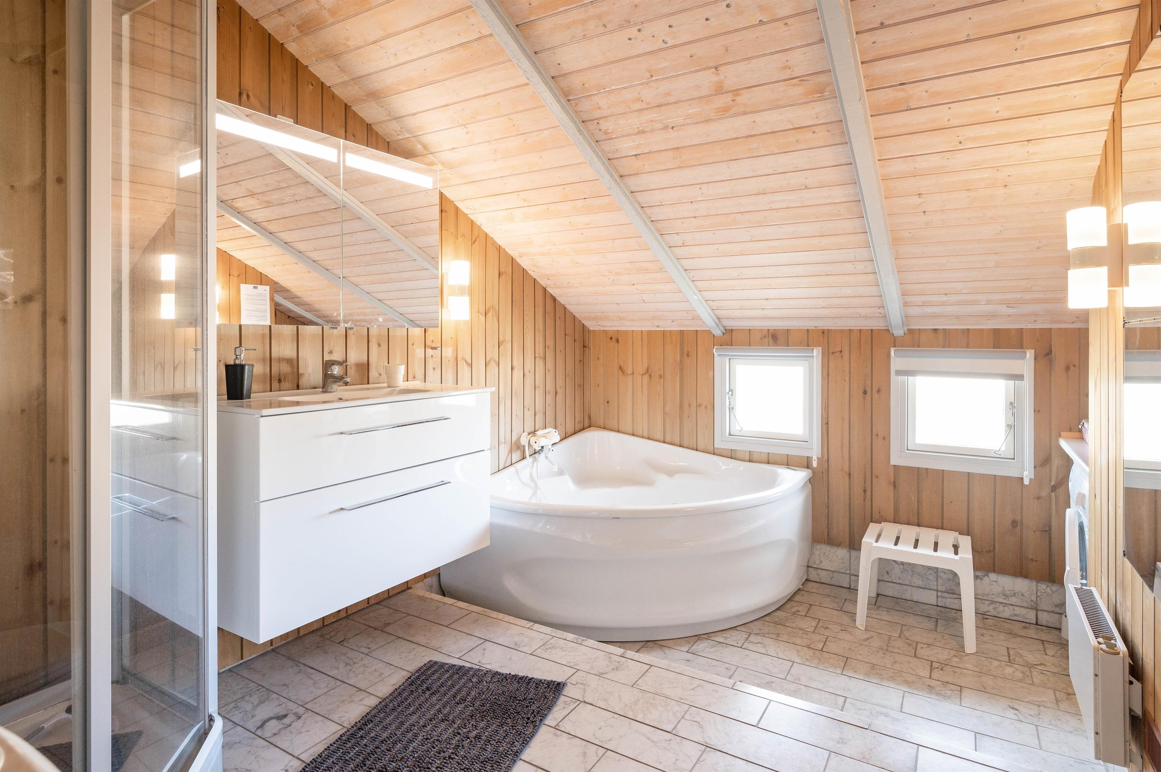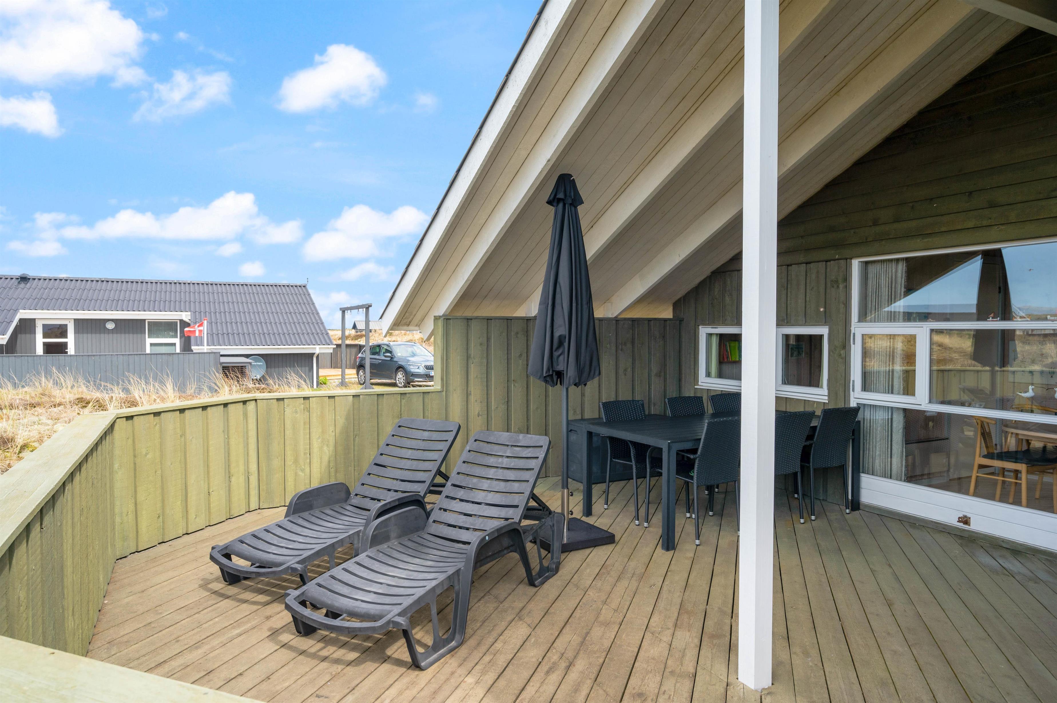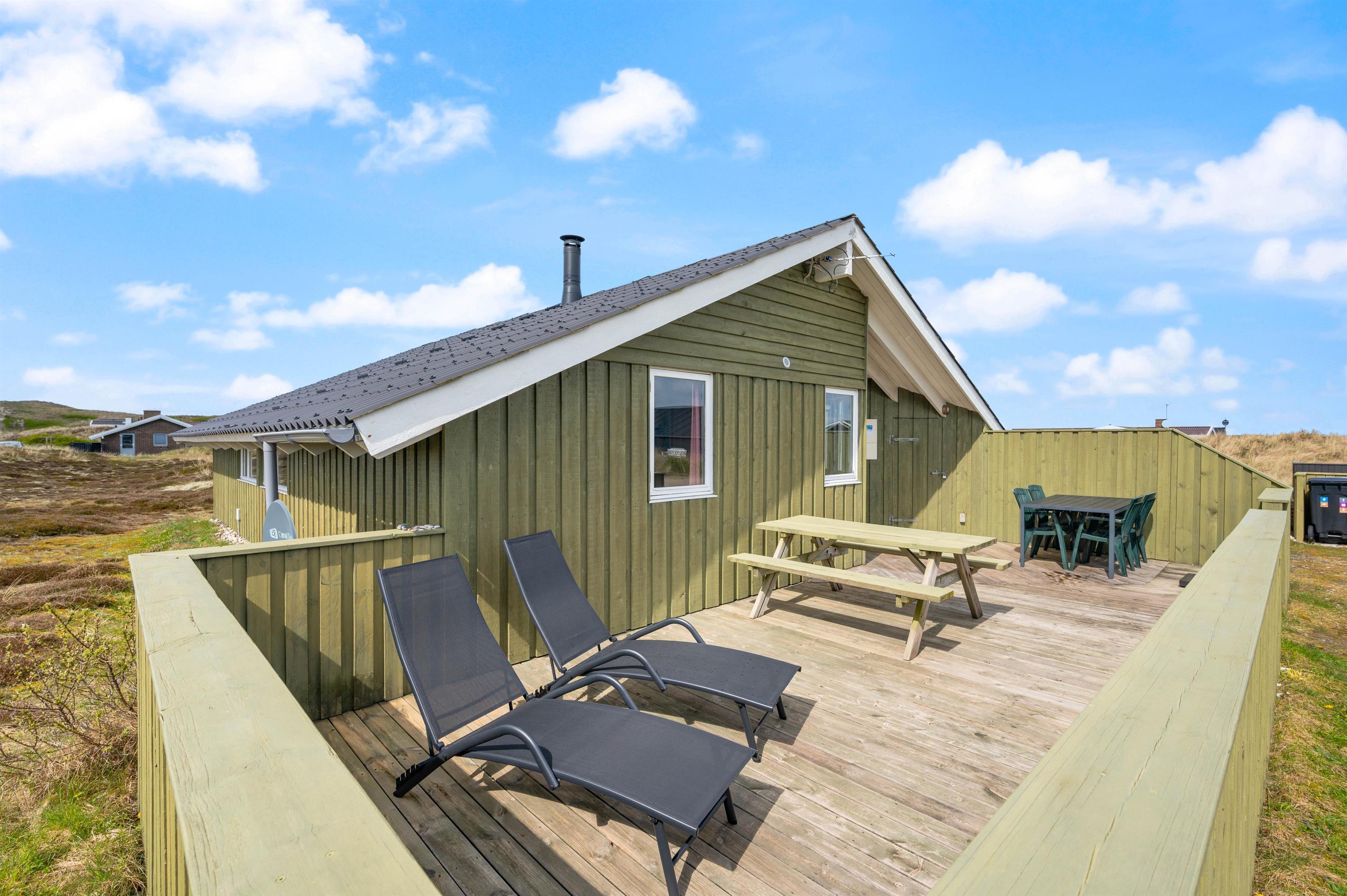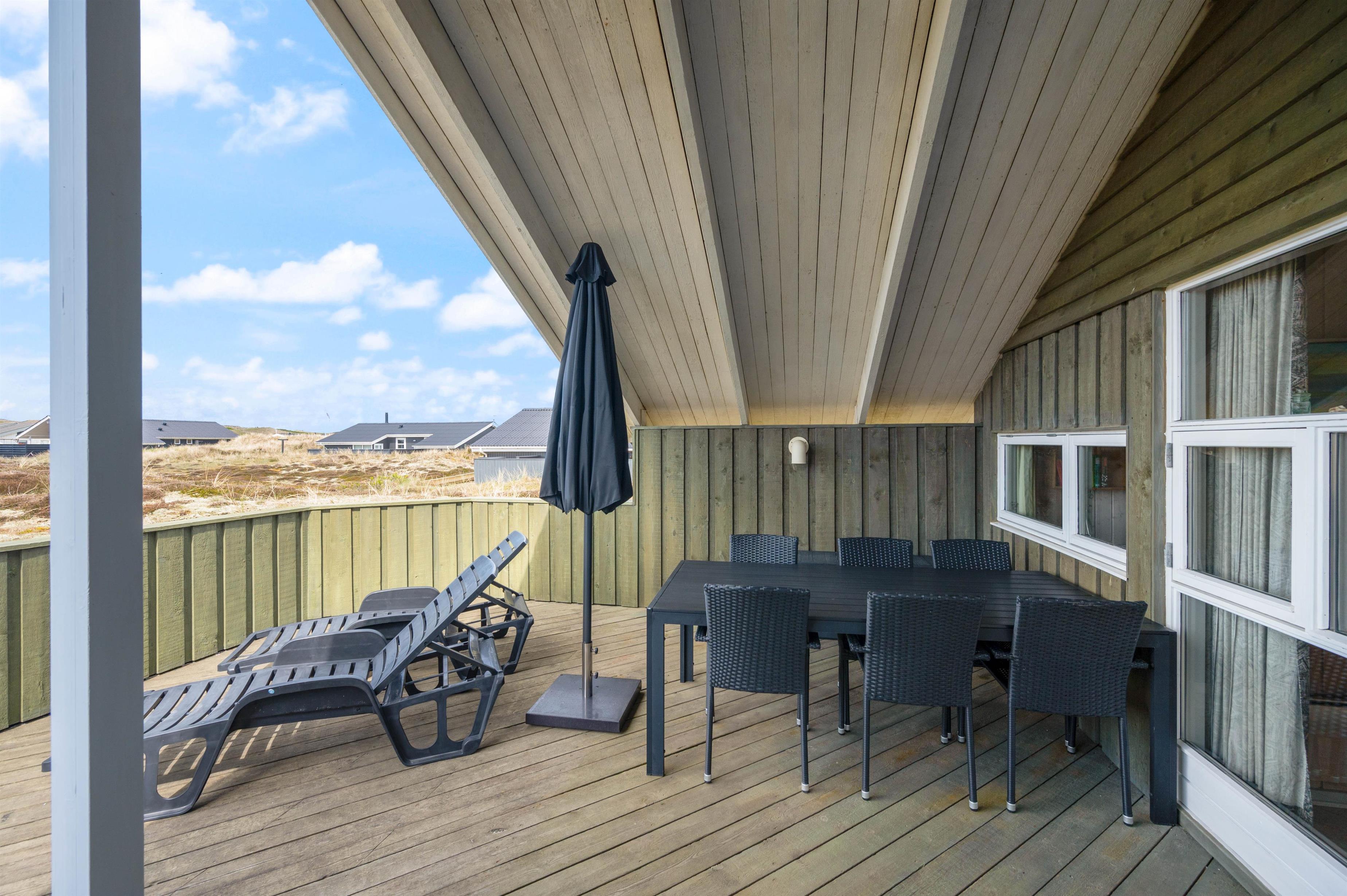 Treat yourself to some time in the two-person hot tub. It's the perfect place to unwind after a long beach walk or an active day in nature. You can also find peace outdoors on the holiday home's sheltered, enclosed and covered terrace. Whether sunbathing, reading or enjoying time together - here you can fully appreciate the fresh air and peaceful surroundings.
