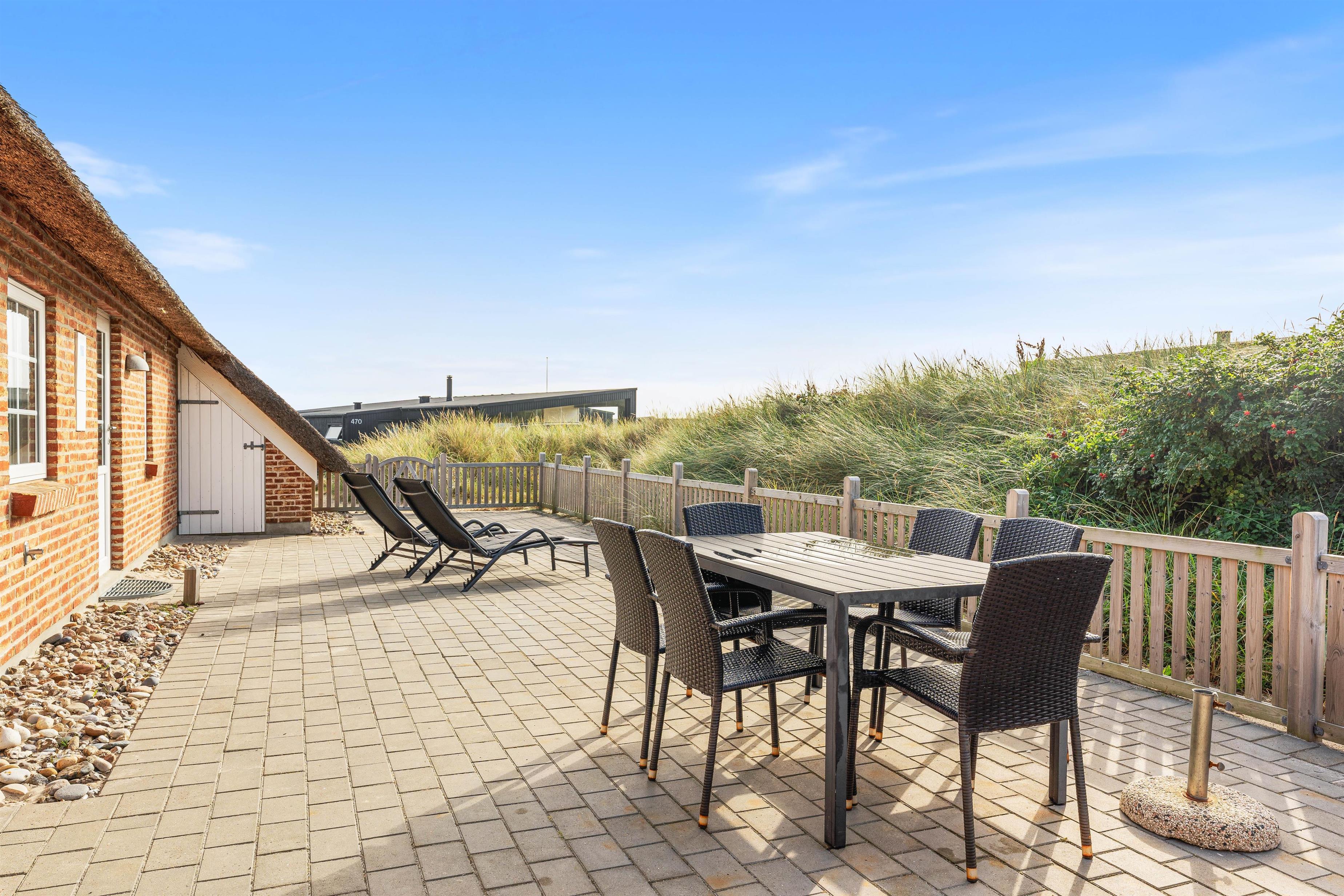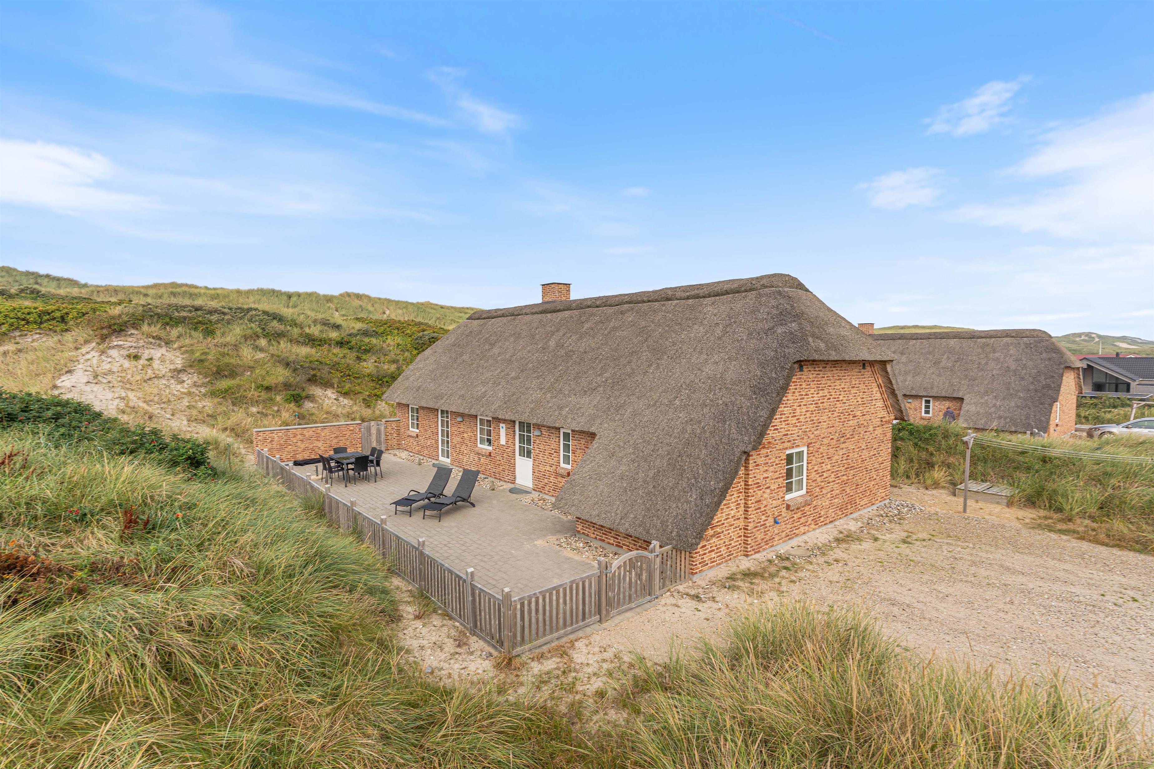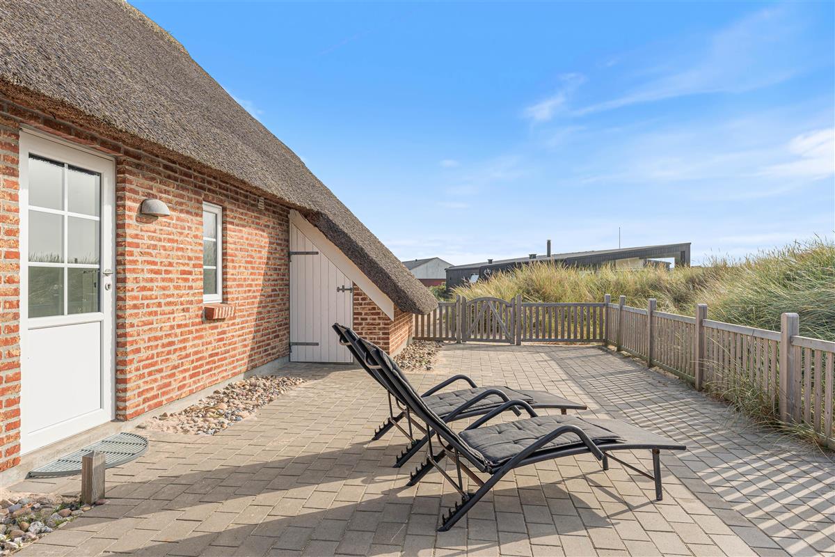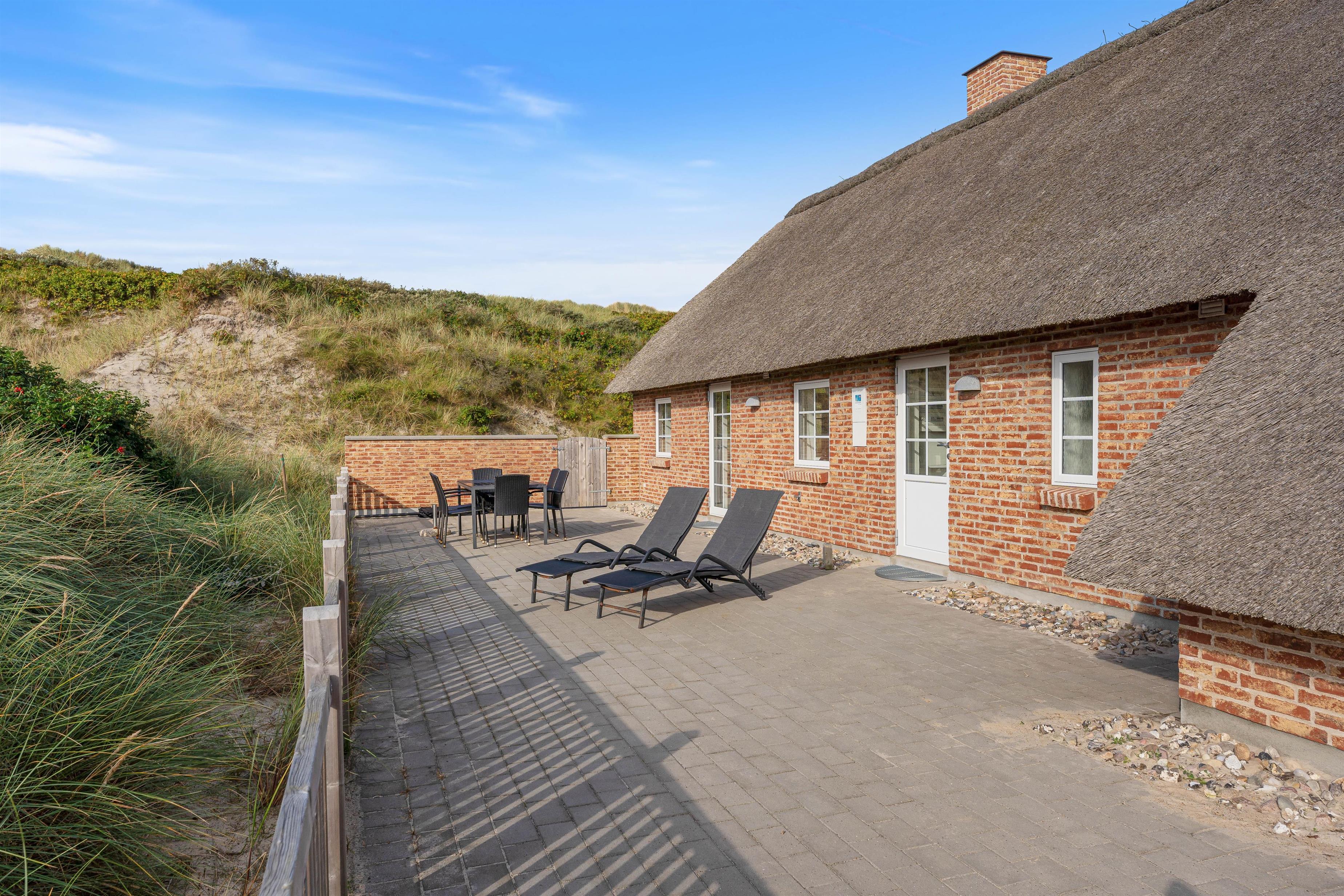 Large windows in the living area provide excellent natural light and panoramic views over the dunes, behind which the sandy beach stretches for miles in both directions. From the living room, you can find pleasant spots on both the south and west-facing terraces to listen to the sound of the sea.