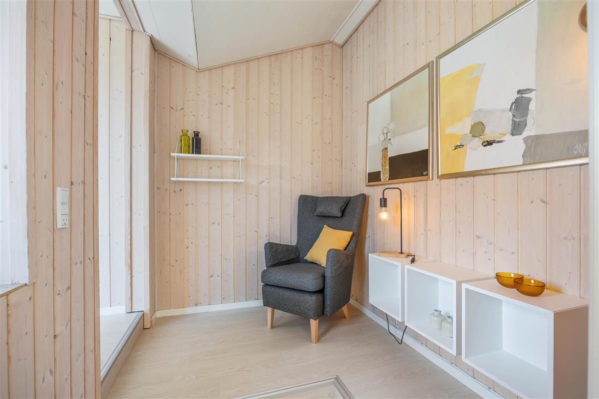 One of the house’s highlights is the lovely sunroom. Furnished with comfortable seating, it’s the perfect spot to spend many relaxing hours – even when the weather isn’t at its best.