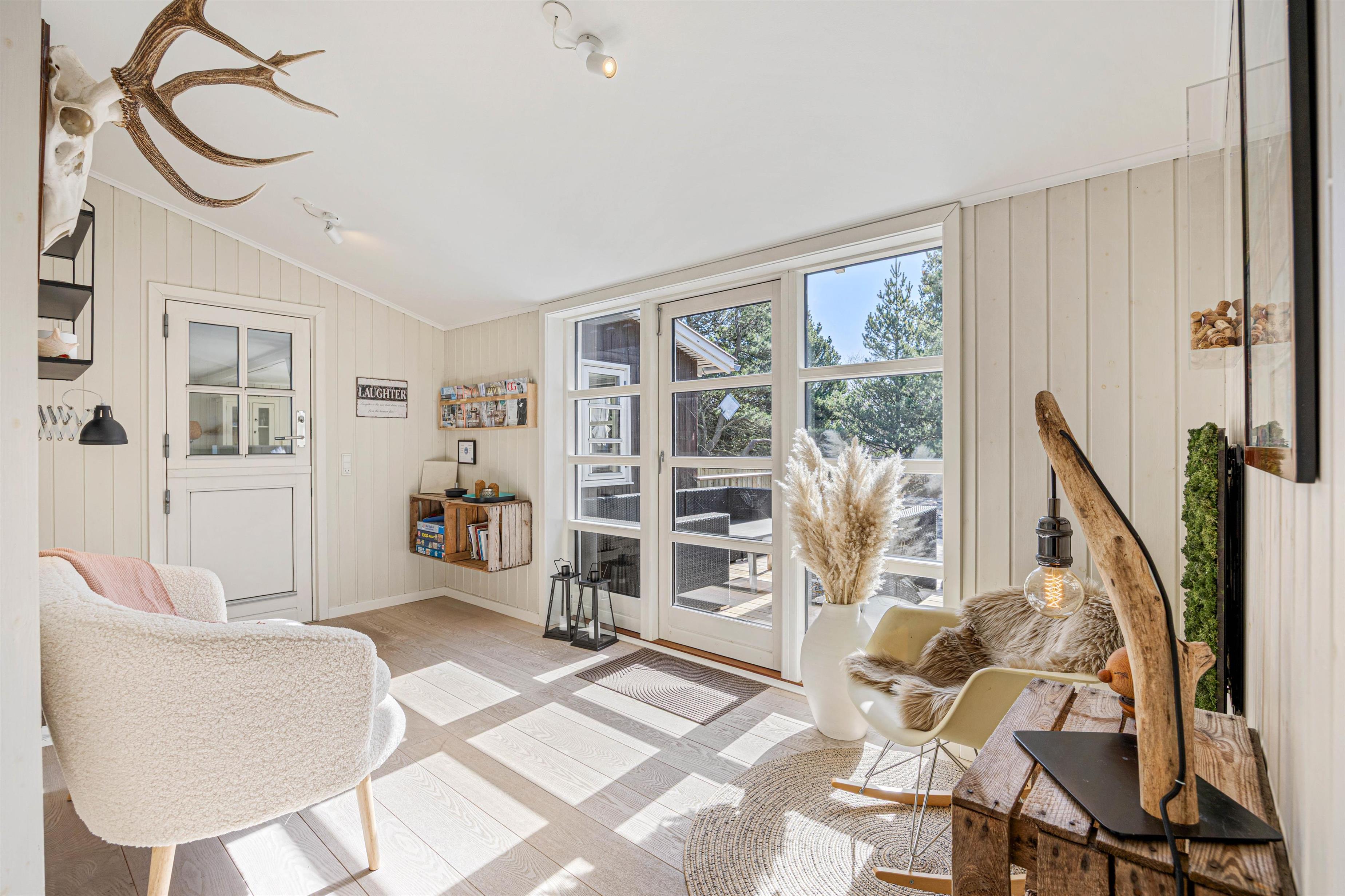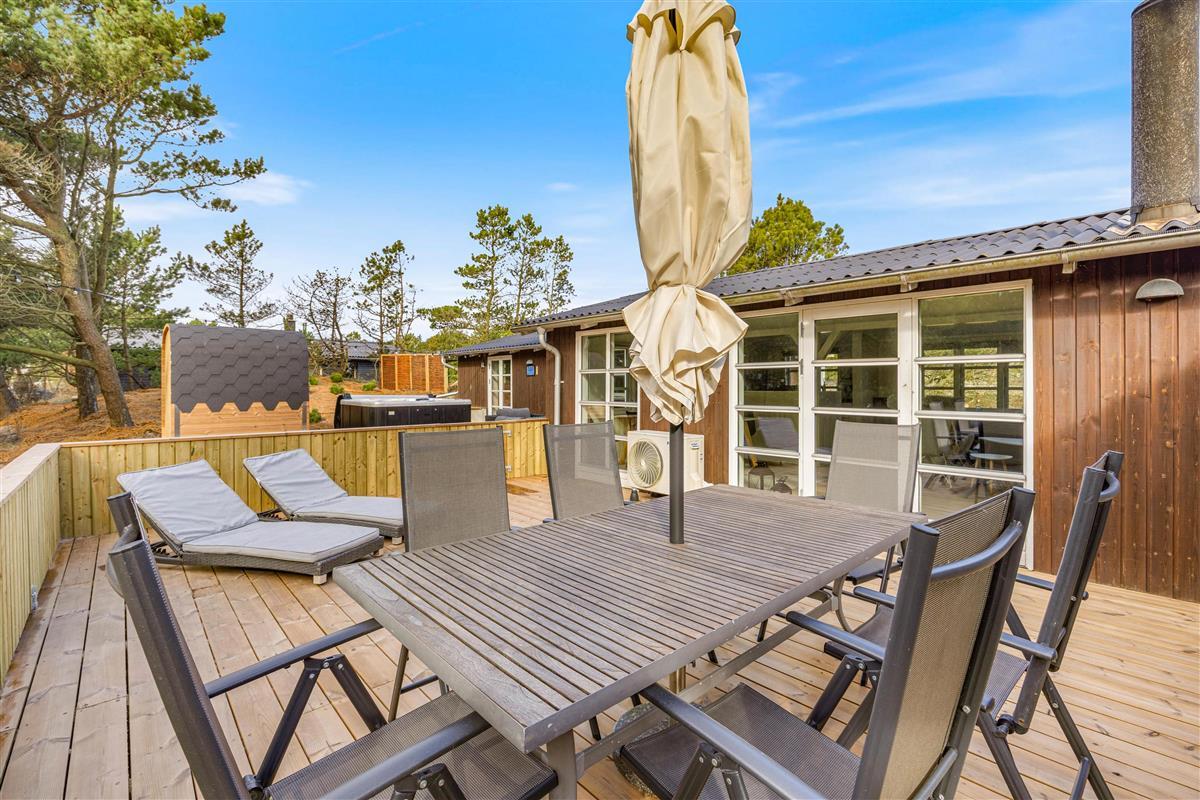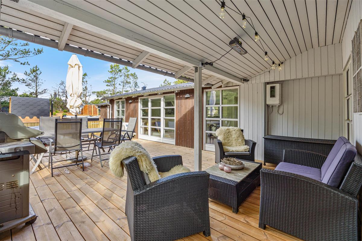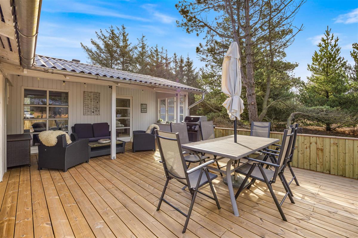 Around the holiday home, you will find several terraces, including a closed terrace where you can sit outside from morning to evening on sunny days – even if the wind picks up a little. There is almost always a nice sheltered spot to relax.