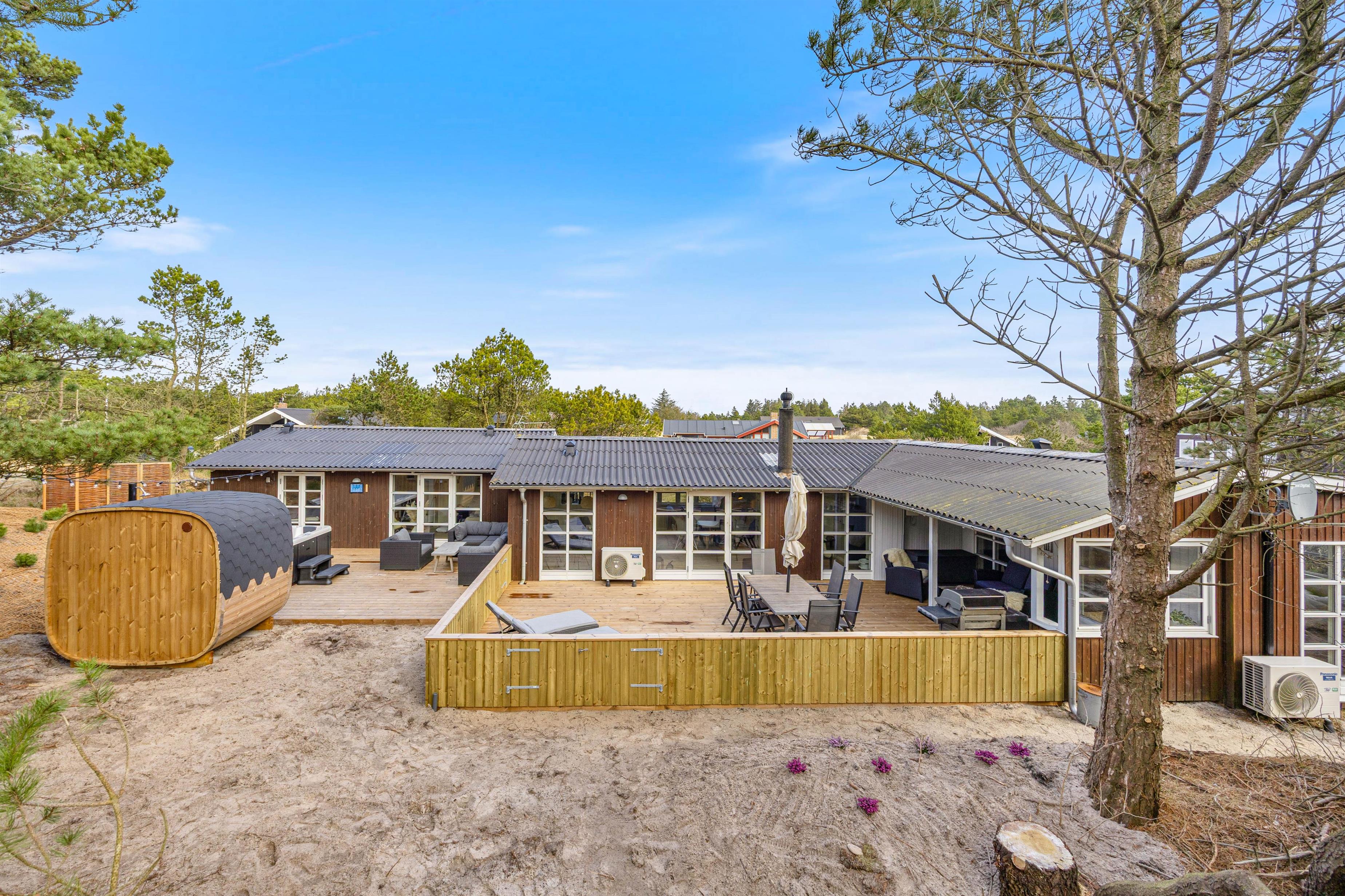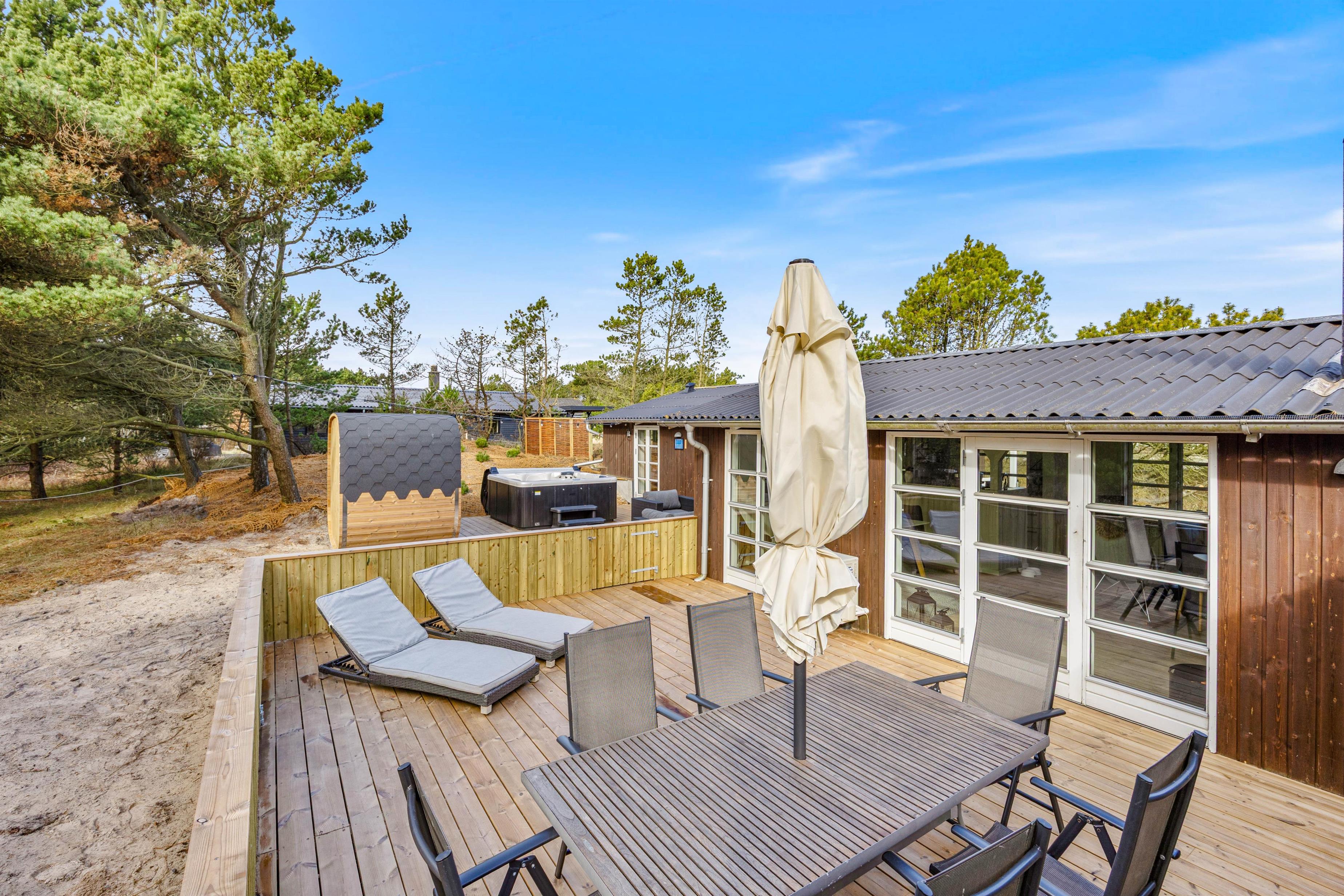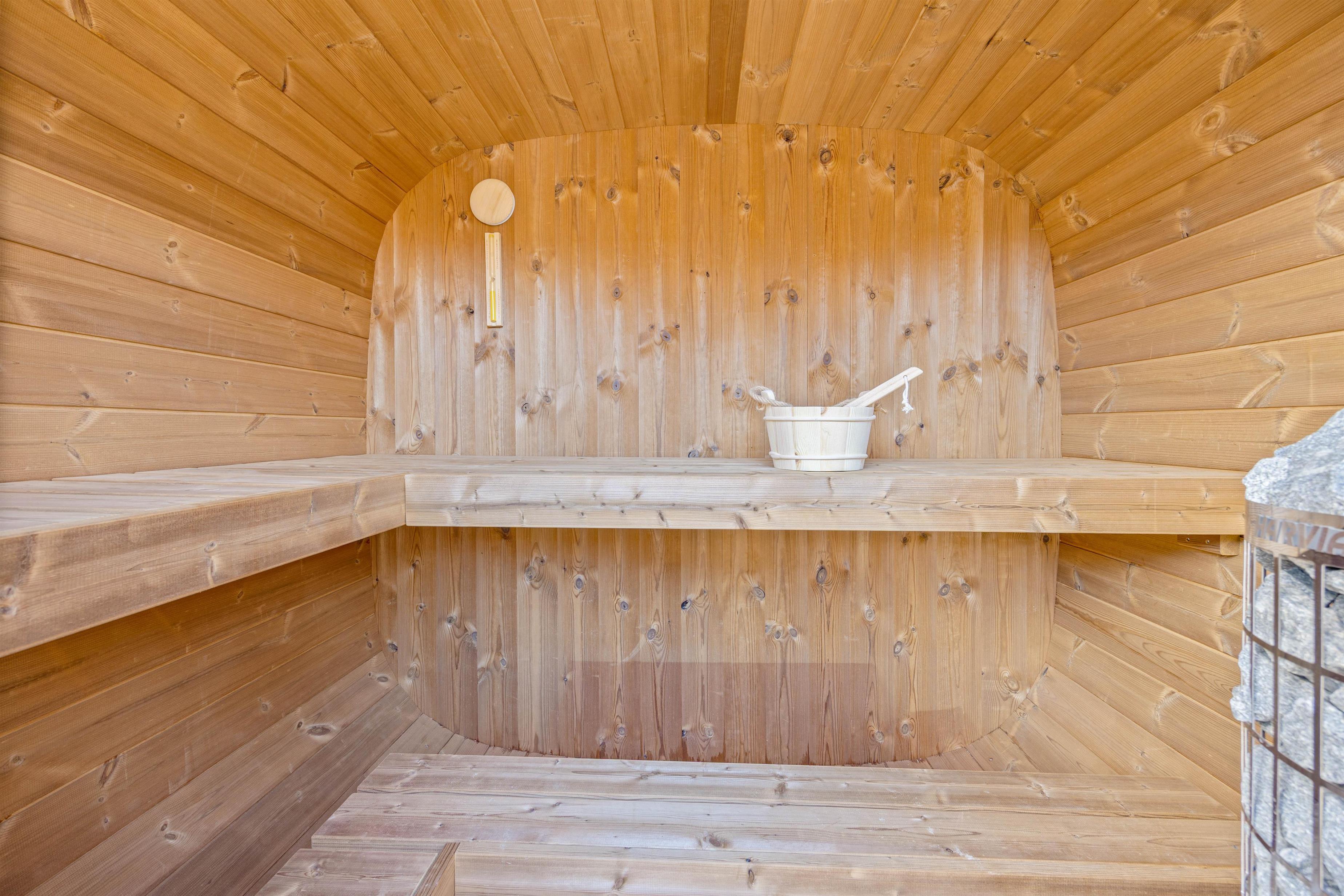On the terraces, you can fully enjoy the natural surroundings and green environment, which invite both sunbathing and playing with the children. As an extra luxury, there is both an outdoor spa and an outdoor sauna, where you can completely relax and enjoy the holiday atmosphere – no matter the season. Thanks to the good screening from bushes and trees, you can enjoy your holiday undisturbed and spend long, cozy evenings grilling under the open sky.