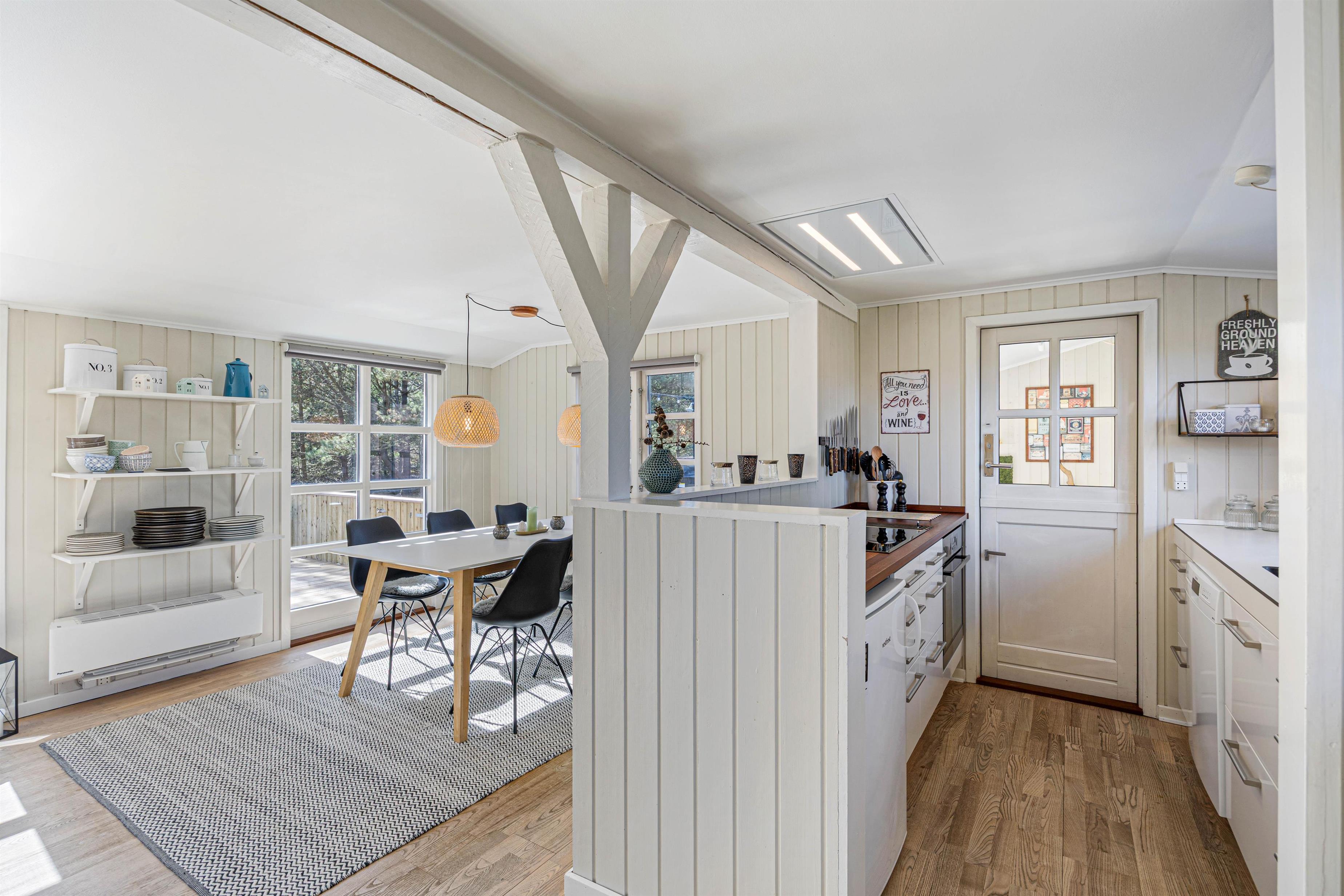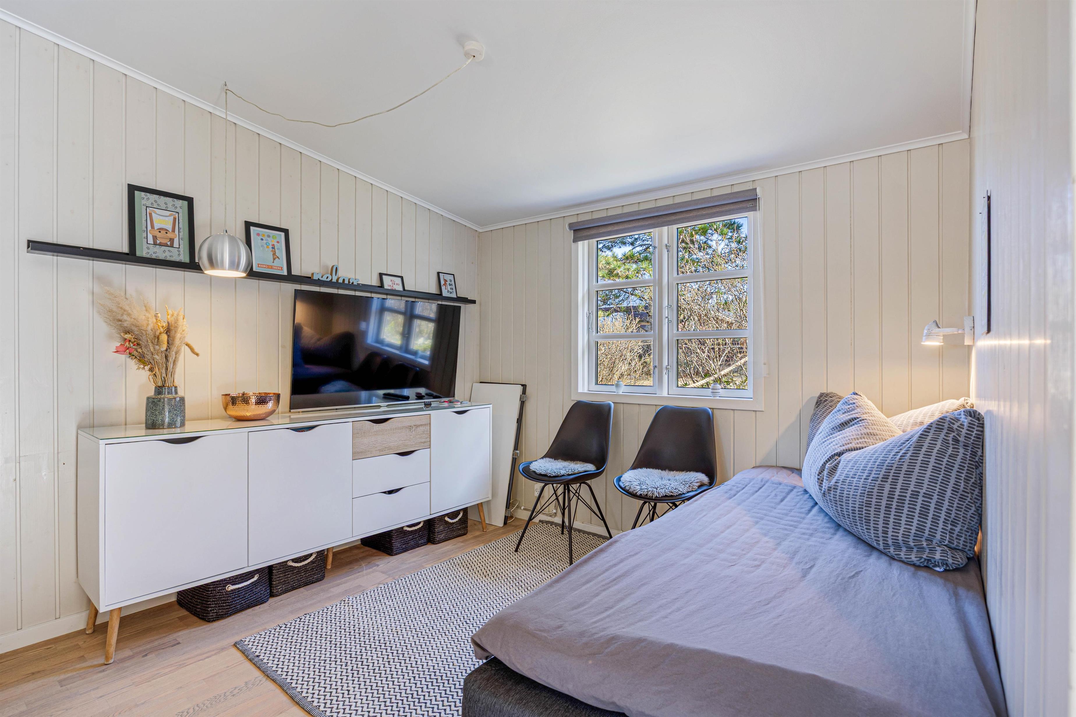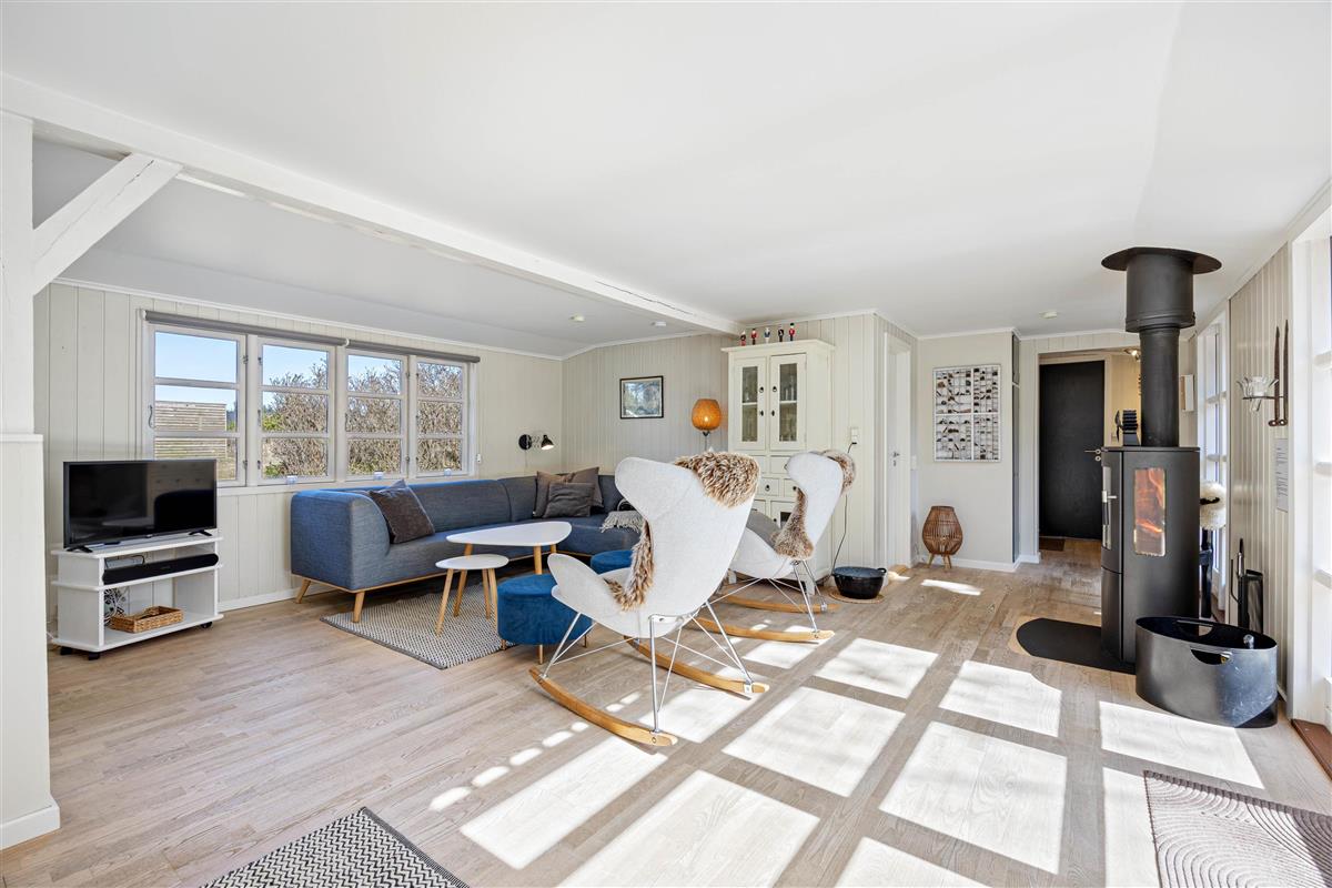 The holiday home is located in Bjerregård, a highly regarded holiday home area – and for good reason. Here you have the North Sea with its beautiful sandy beach within walking distance, and the landscape is adorned with impressive dunes and rolling heath areas, perfect for pleasant walks.