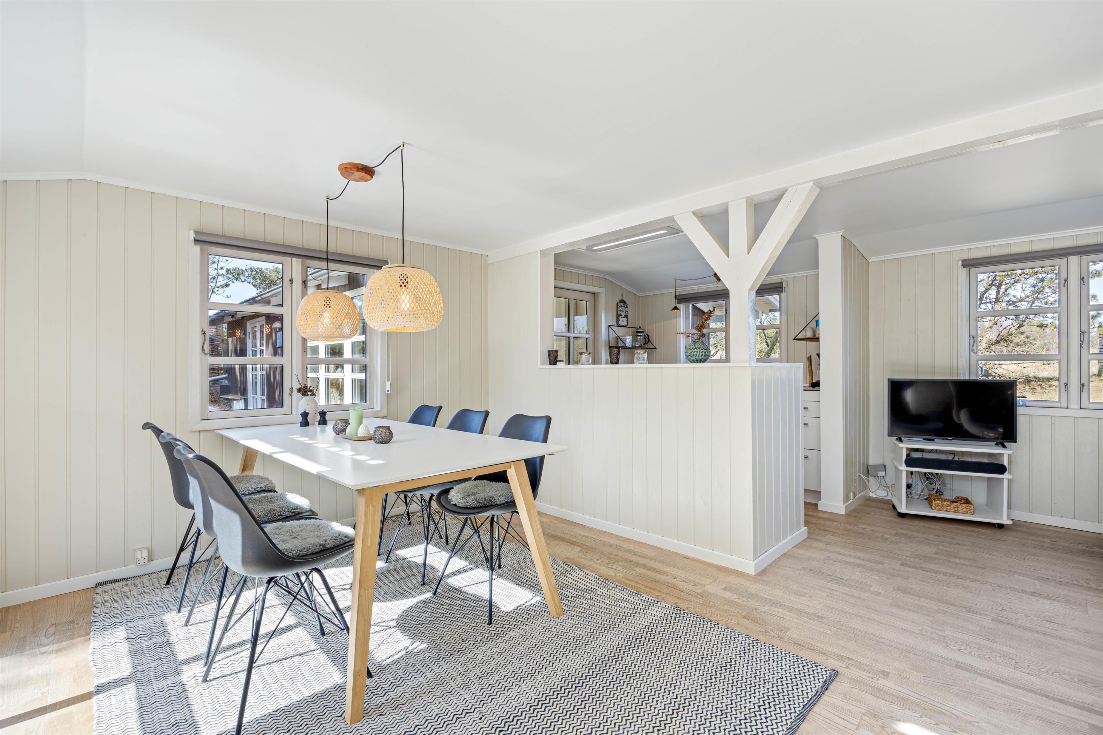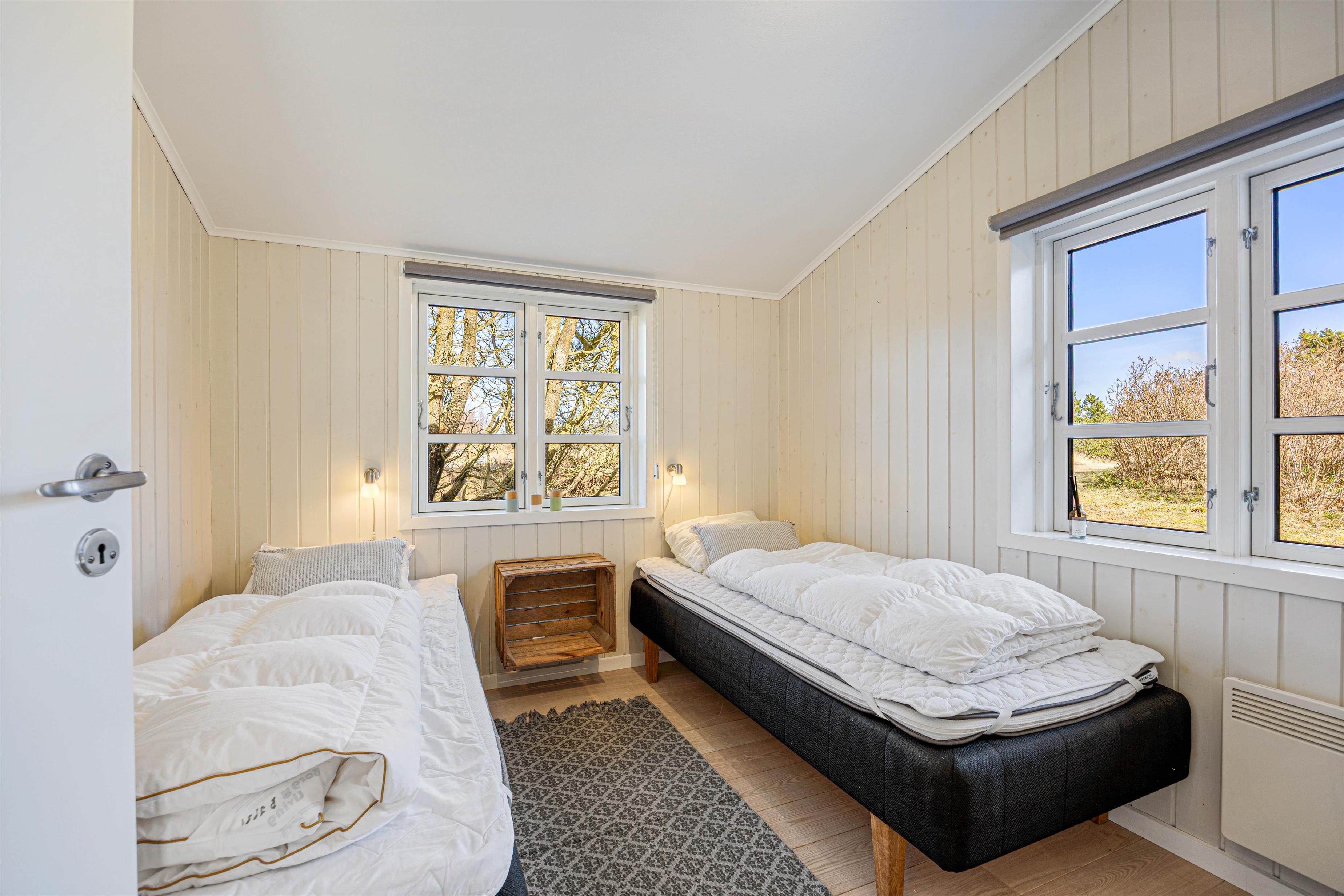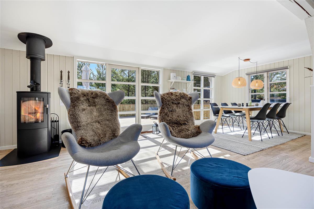 The holiday home is located in Bjerregård, a highly regarded holiday home area – and for good reason. Here you have the North Sea with its beautiful sandy beach within walking distance, and the landscape is adorned with impressive dunes and rolling heath areas, perfect for pleasant walks.