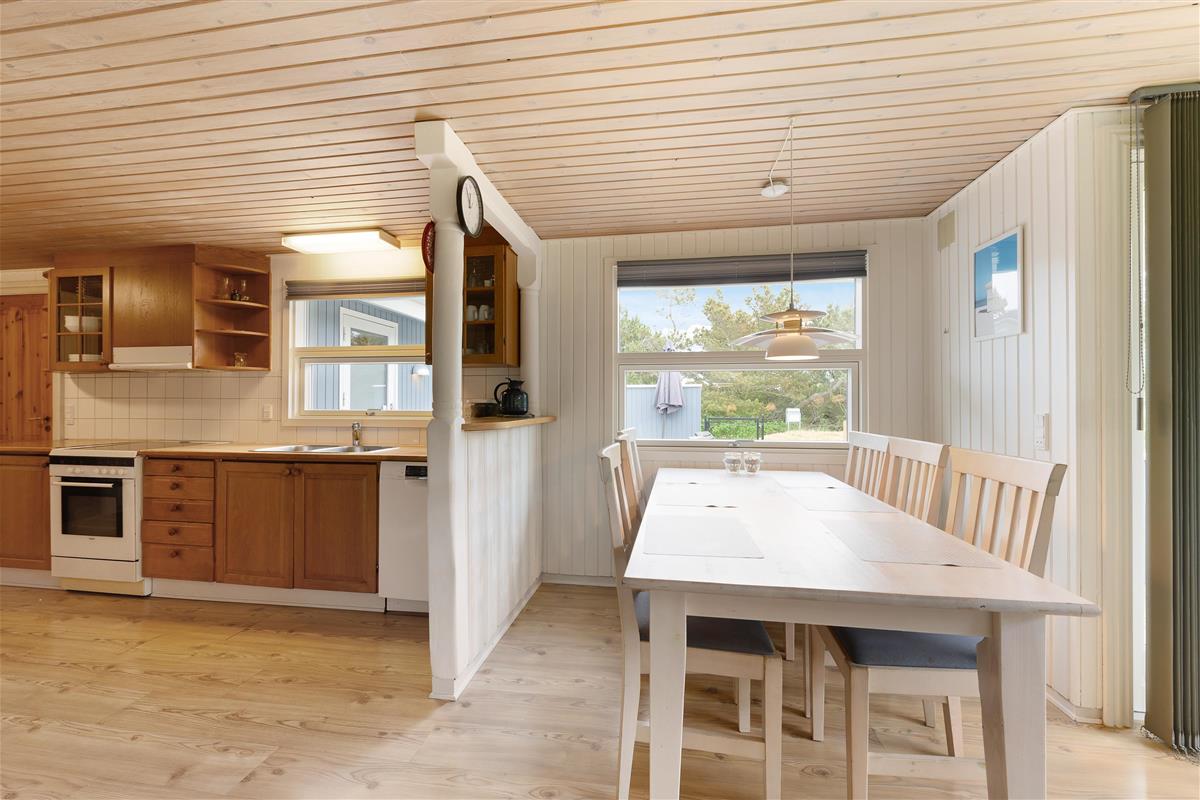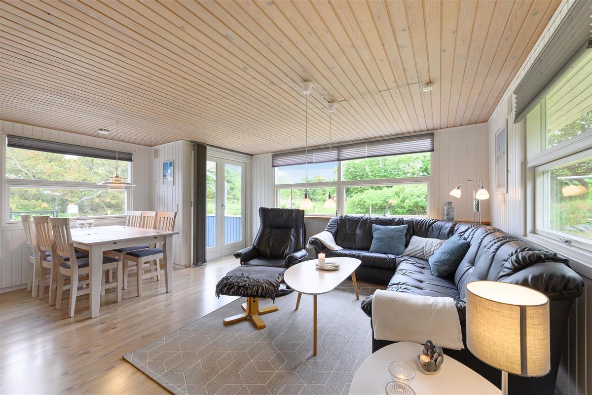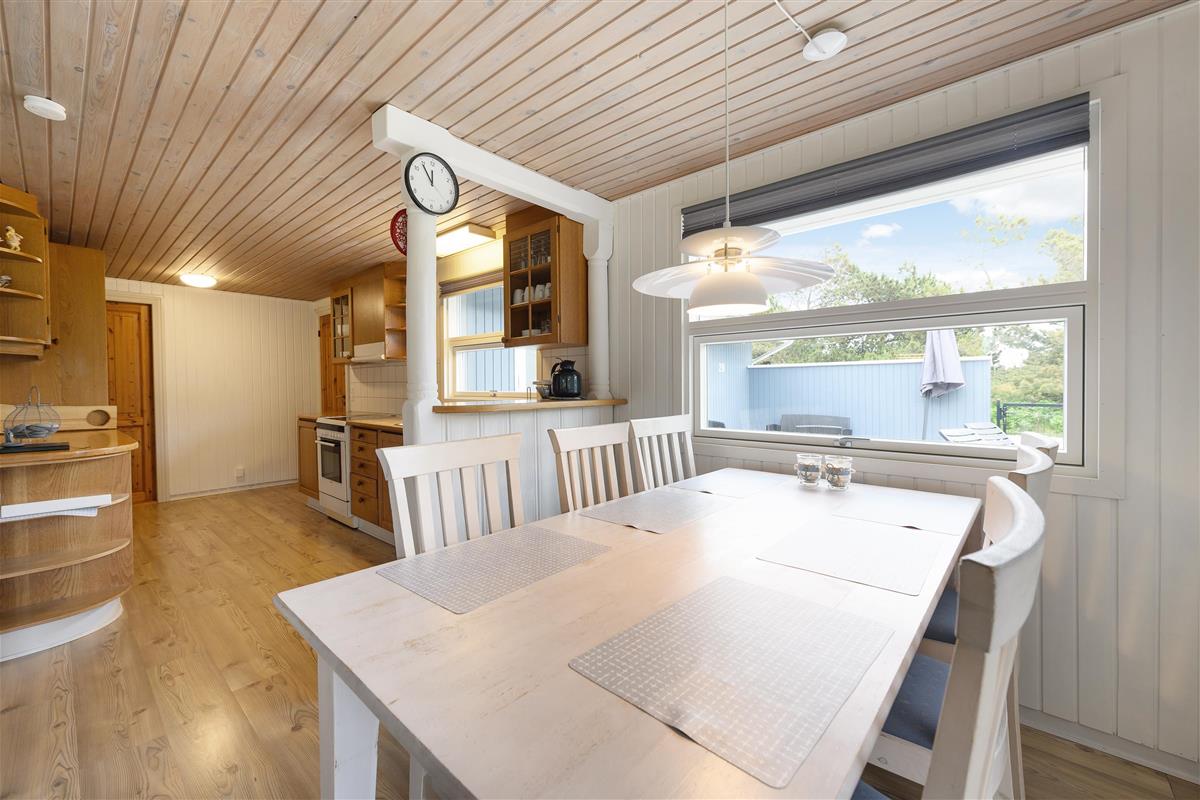 The living room is perfect for relaxing evenings in front of the wood-burning stove. Make yourself comfortable on the sofa or armchair and watch your favourite shows while the west wind blows outside. Maritime details and typical Scandinavian wooden panelling on the ceilings, walls and floors give the room its special charm.