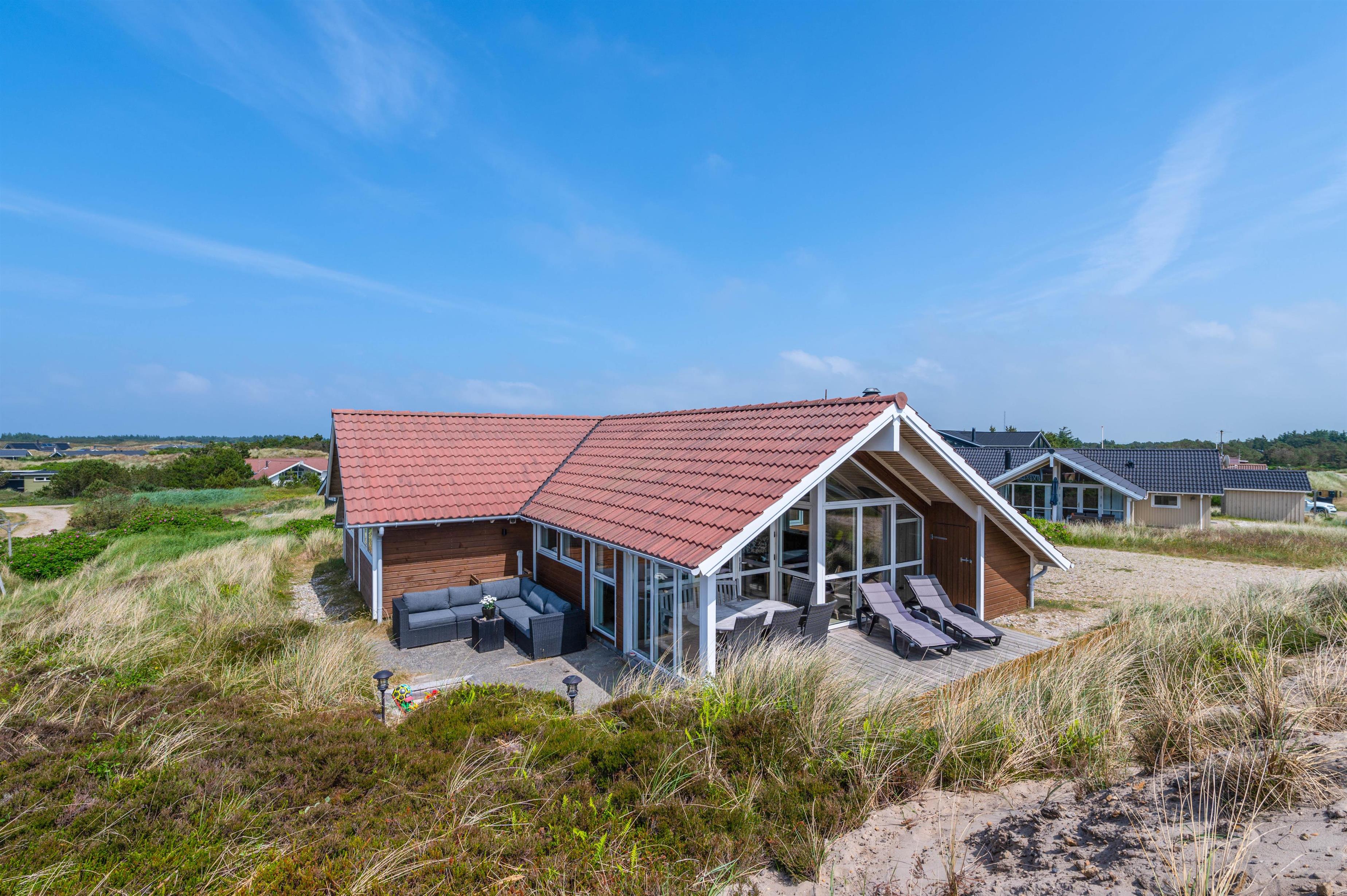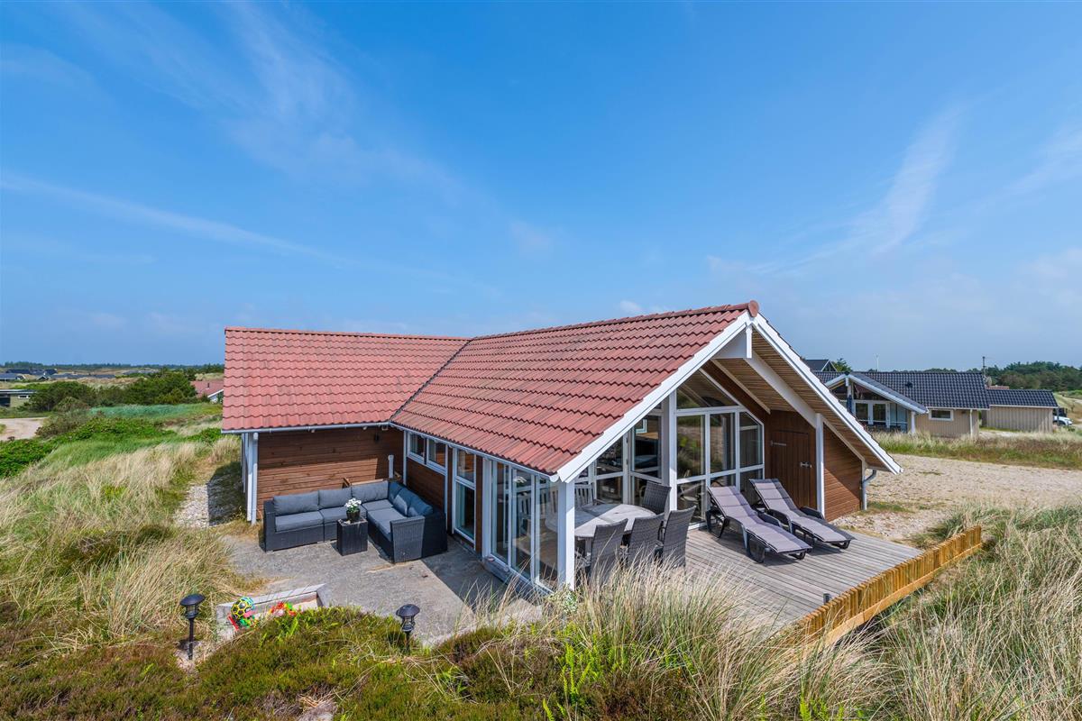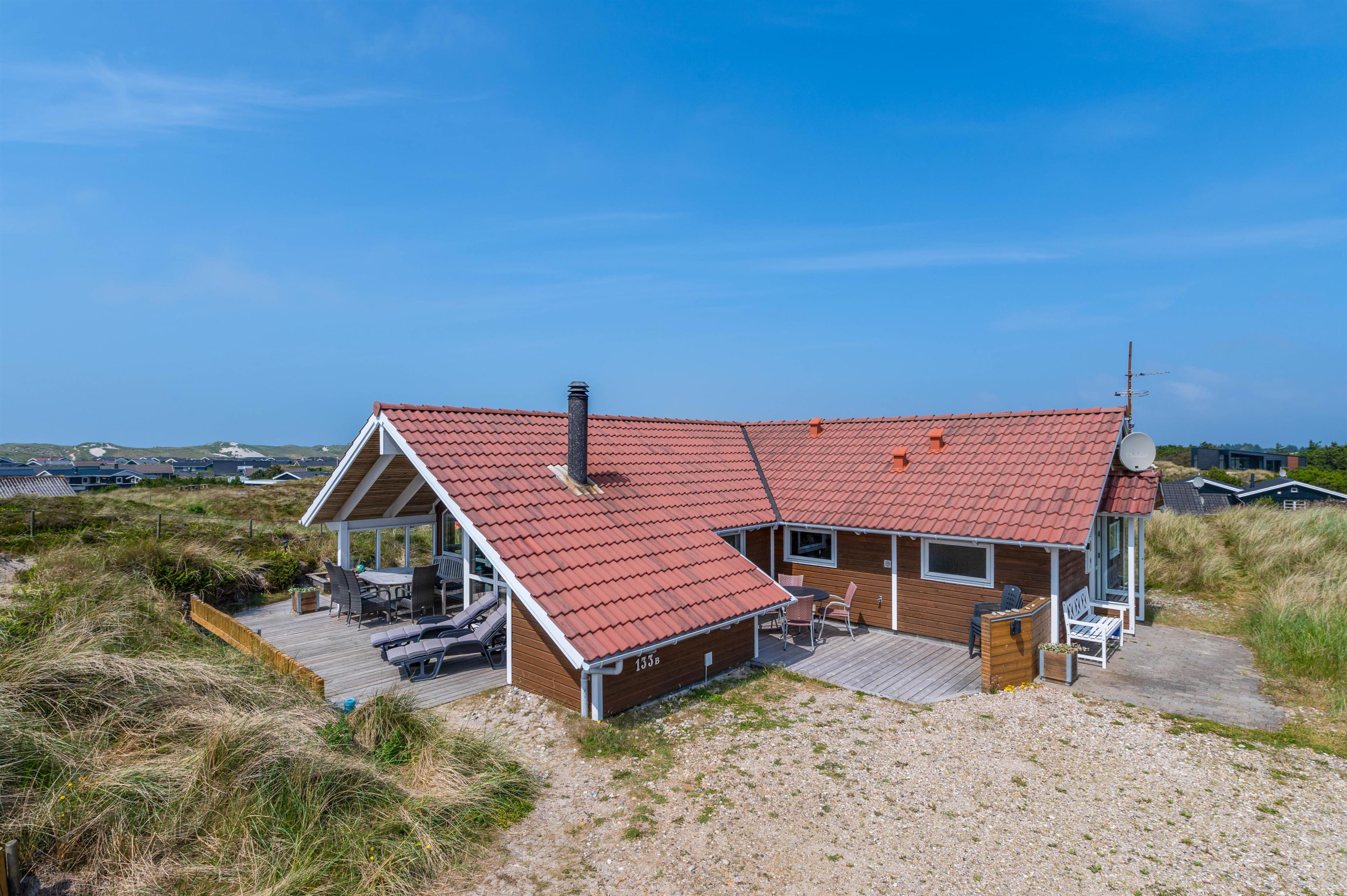 Welcome to Bjerregårdsvej 133 B, a charming holiday home with fantastic panoramic views over the surrounding dune landscape. Up to 8 people can enjoy a relaxing time here. Thanks to your private wellness area with sauna and whirlpool, you can recharge and unwind whenever you wish.
