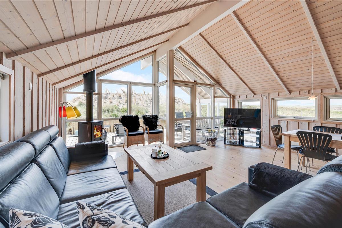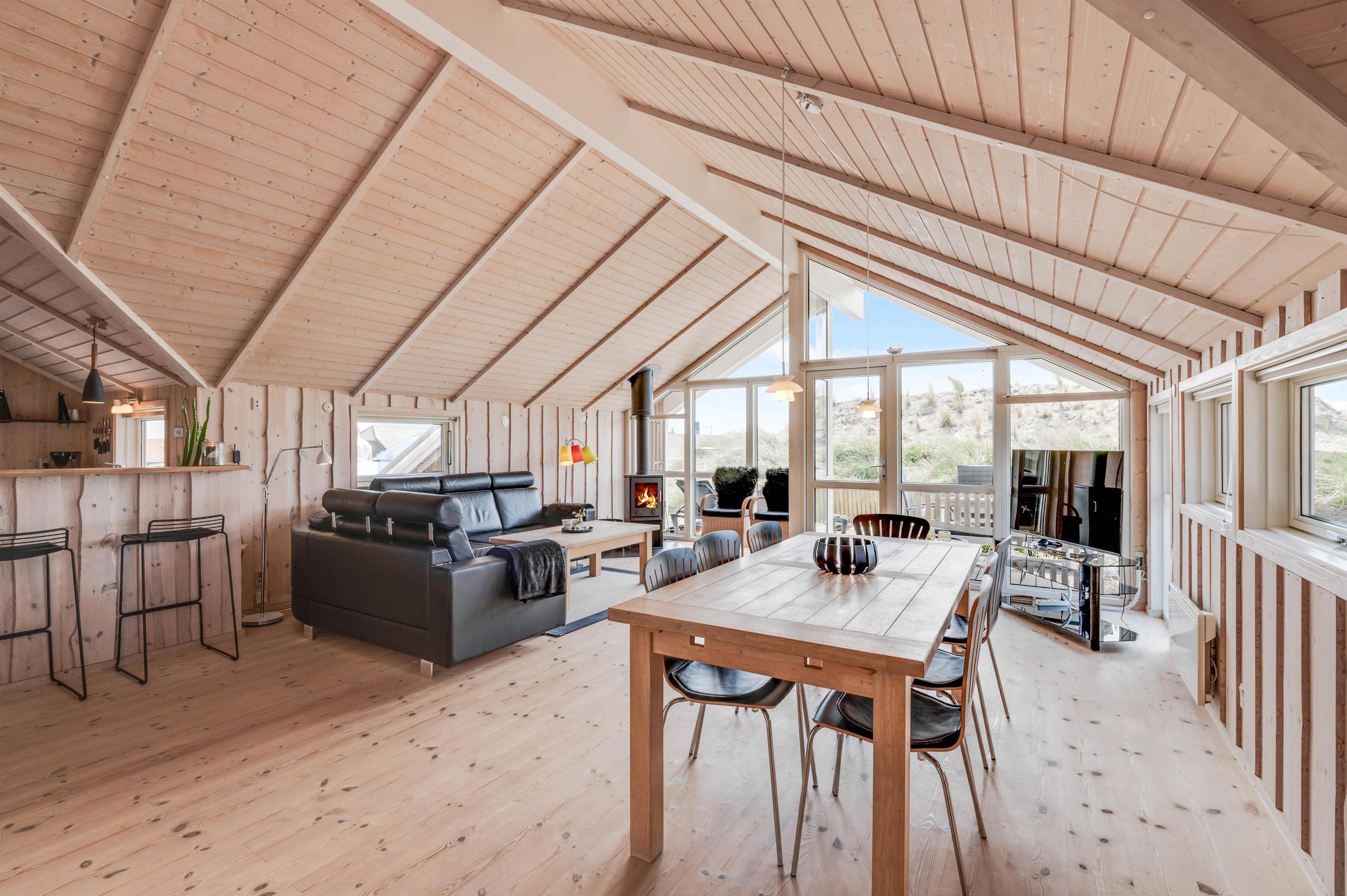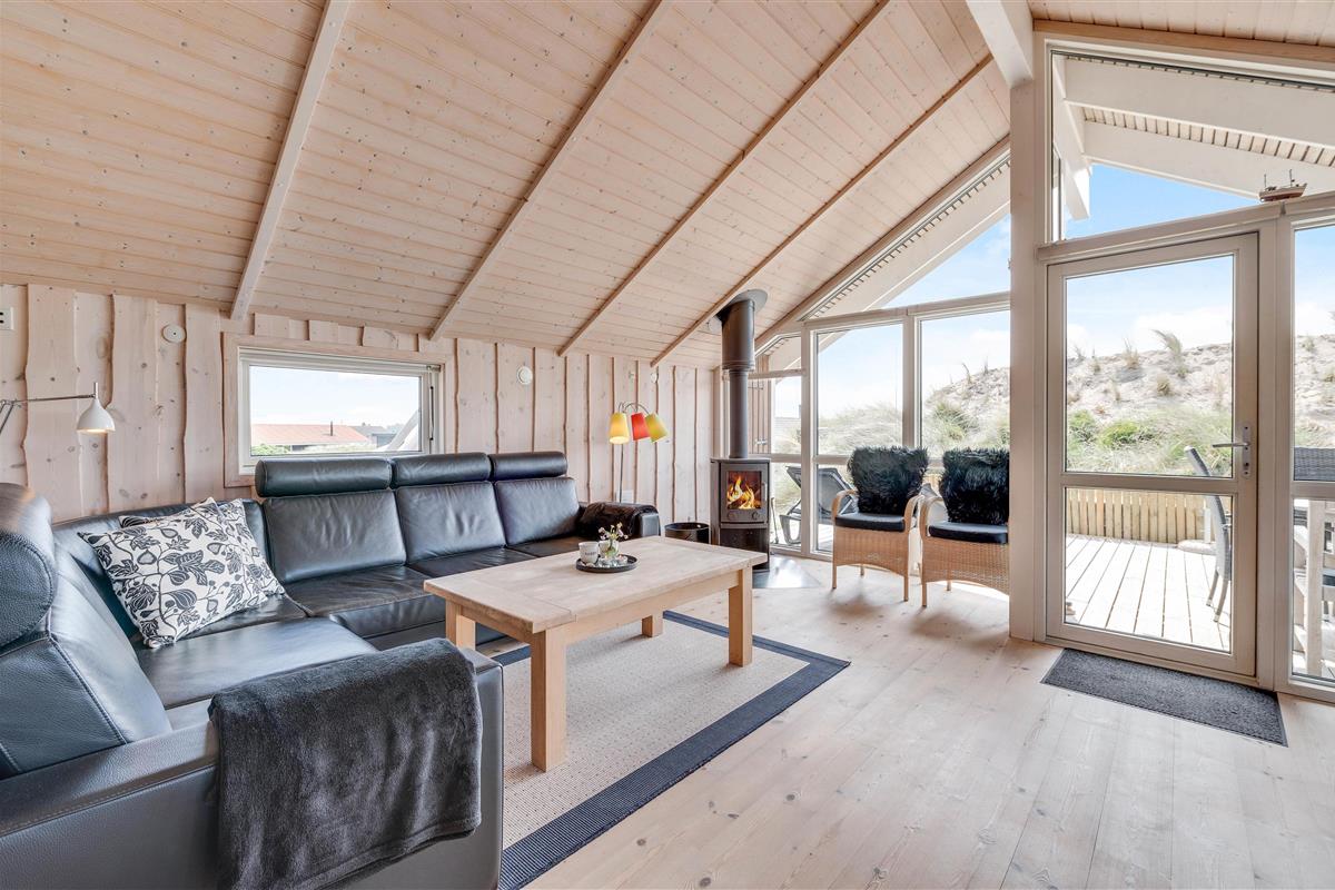 From the moment you enter this charming holiday home, you'll feel right at home. Light wooden features and numerous windows create a bright, welcoming atmosphere. The panoramic window offers beautiful views over the dune-surrounded plot. Relax on the sofa with a glass of wine by the crackling fireplace.