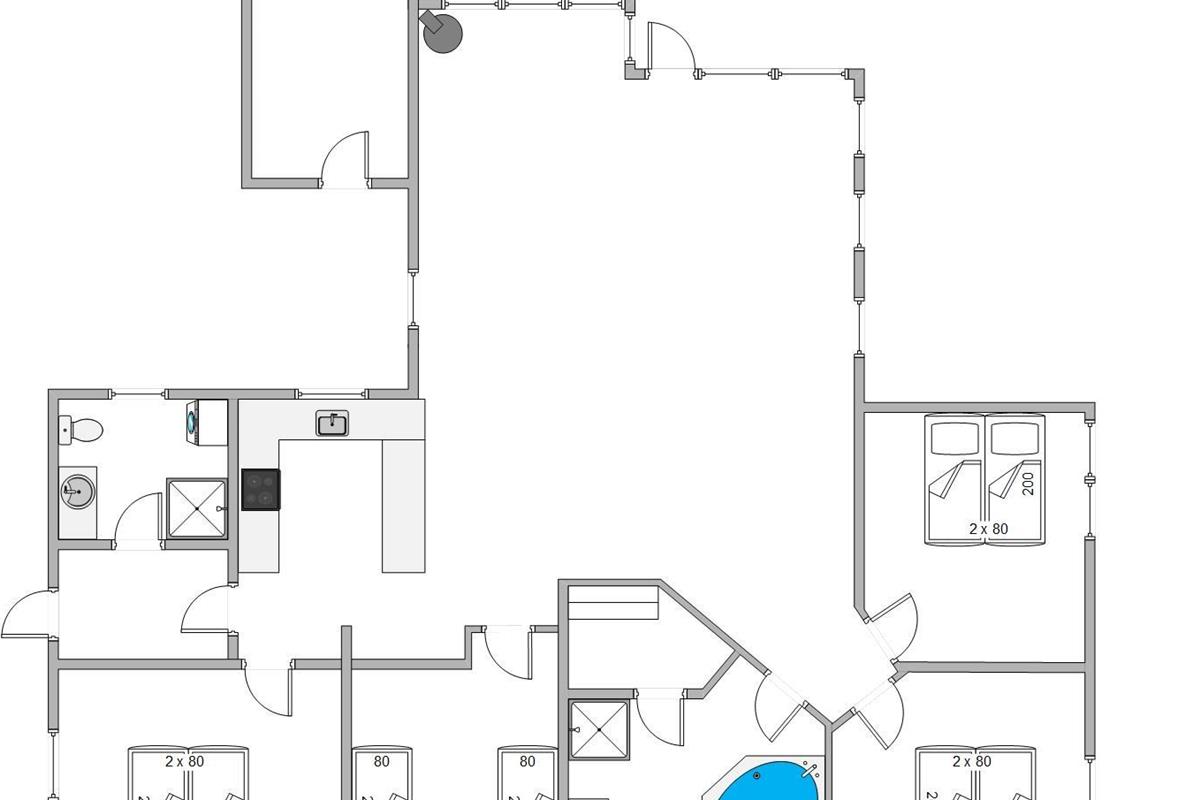 Two bathrooms with underfloor heating and showers help avoid long waiting times. The larger bathroom features the whirlpool and sauna, perfect for relaxing wellness moments. For a restful night's sleep, there are three double beds and two comfortable single beds available.