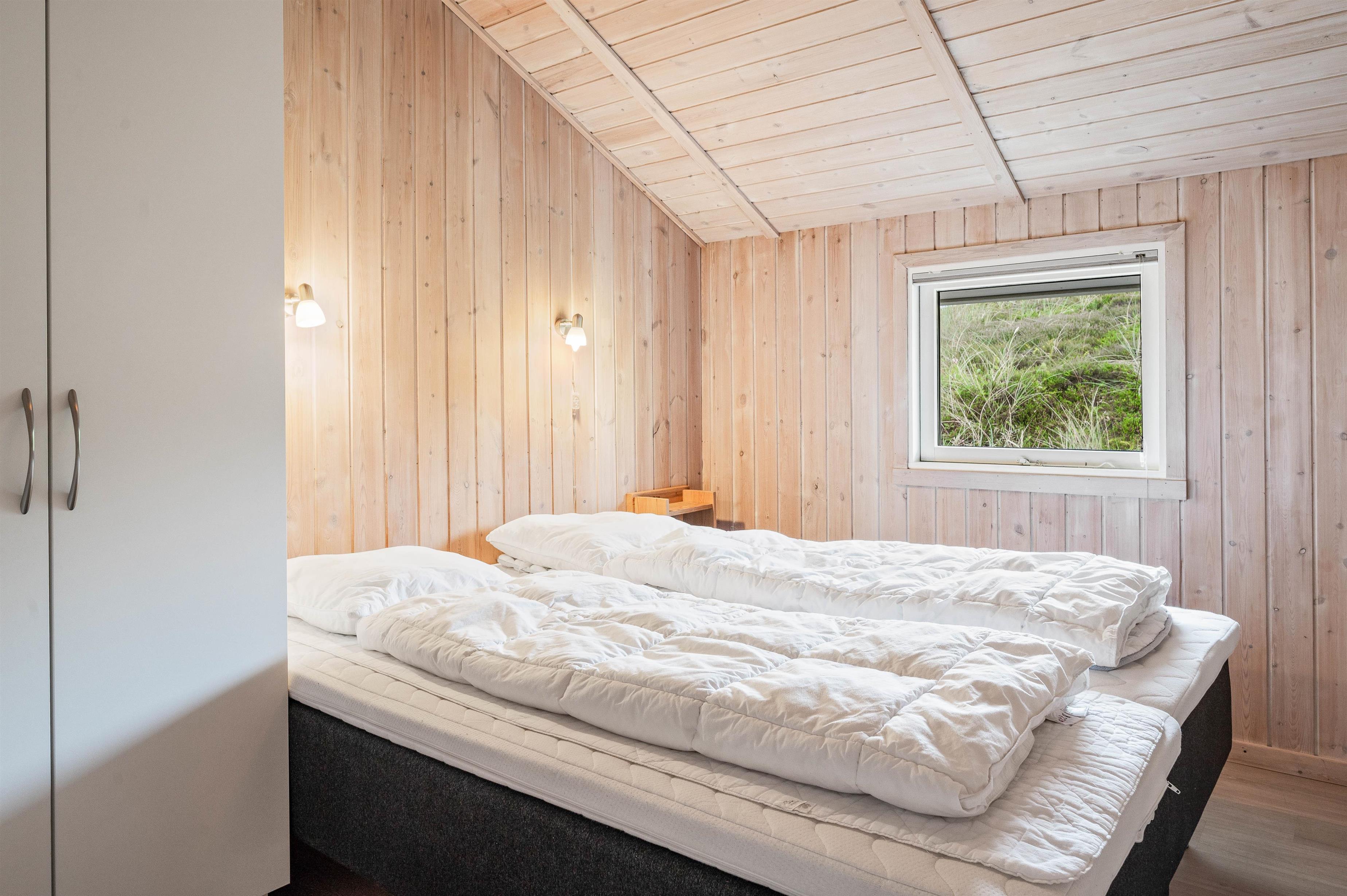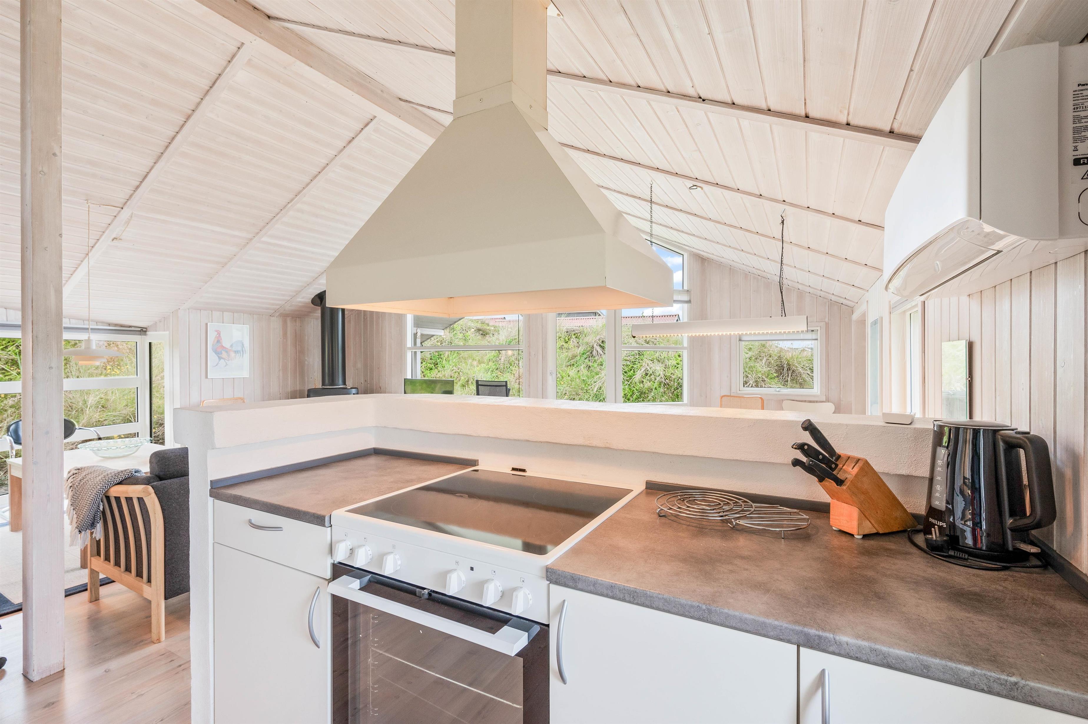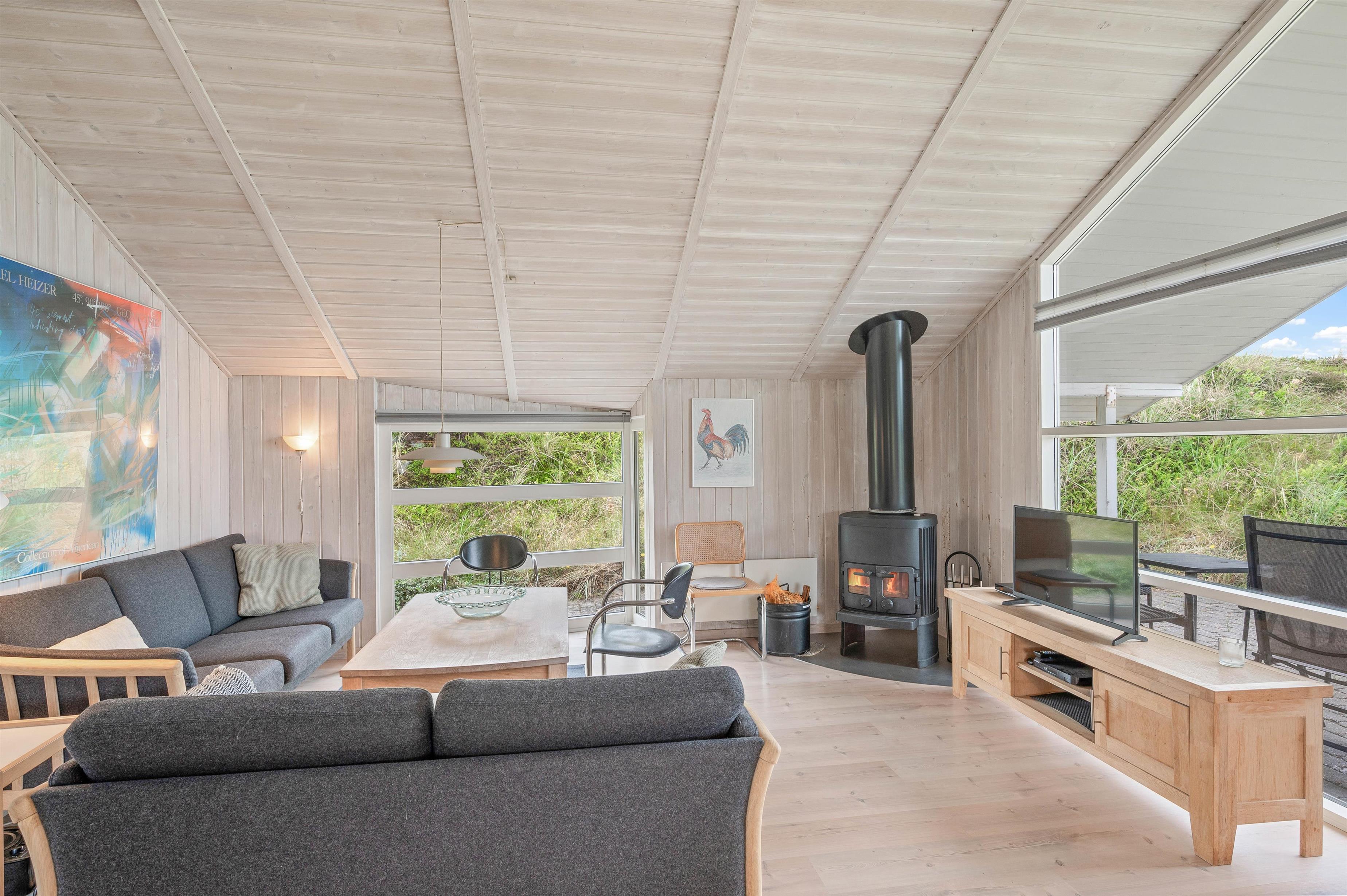 The holiday home enjoys a convenient location in the popular resort of Bjerregård, one of the most sought-after holiday regions on Denmark's west coast. It's only about 650 metres to the North Sea, and the beautiful sandy beaches are perfect for swimming and walking excursions with the family and your dog, who is naturally very welcome.