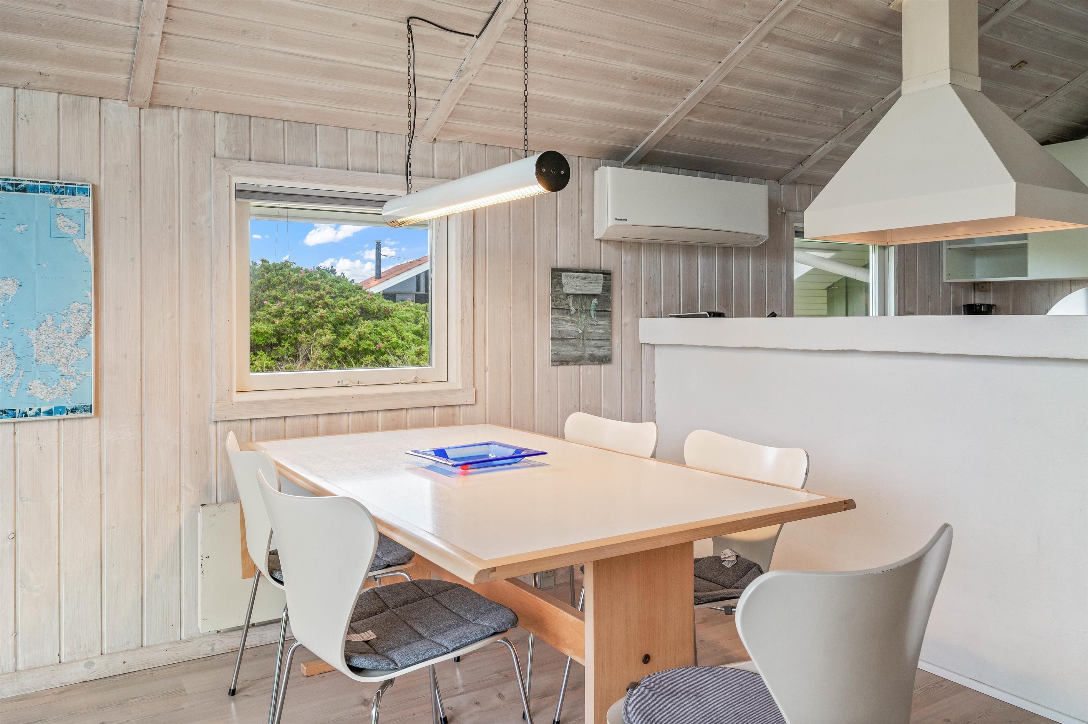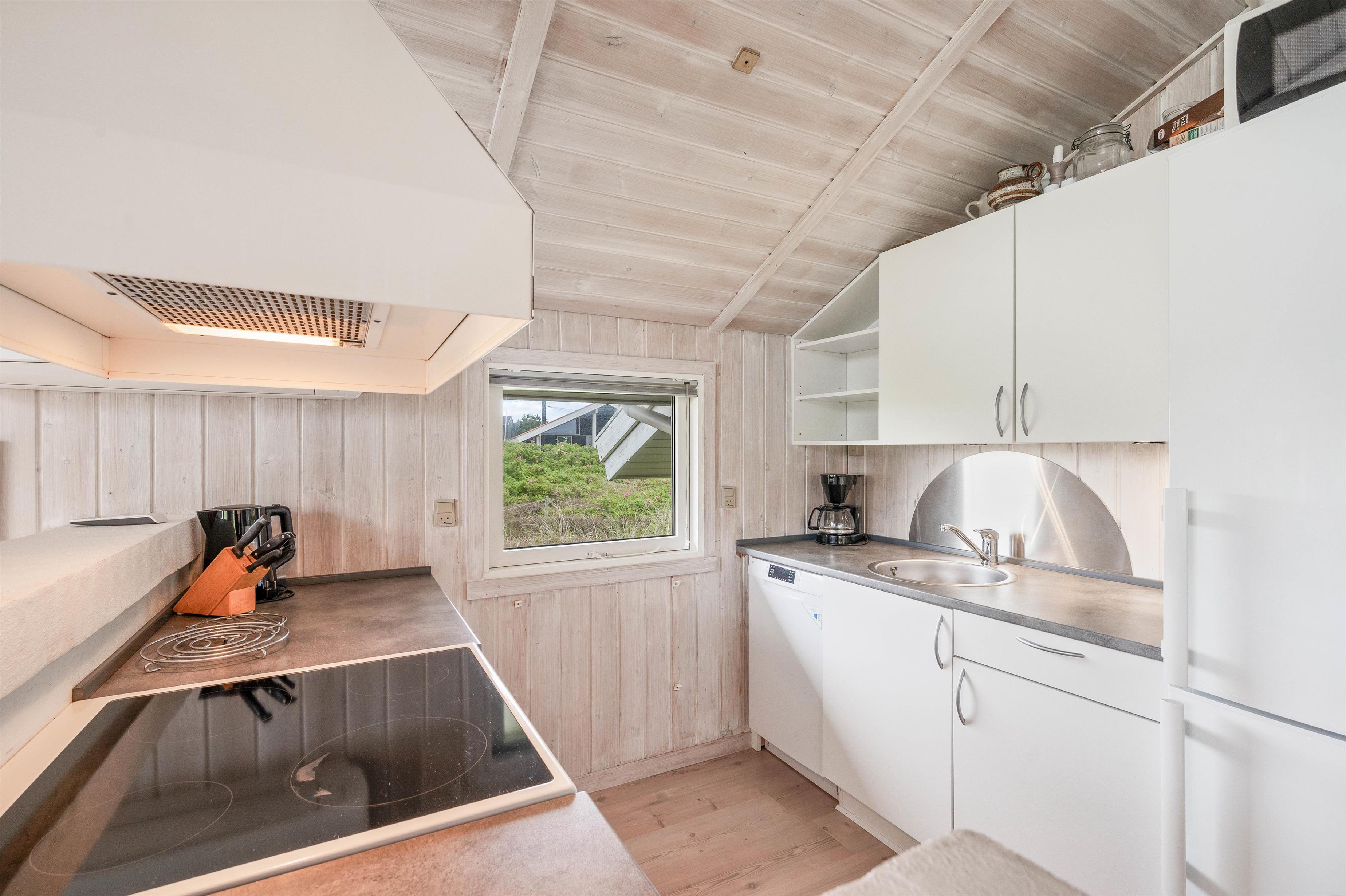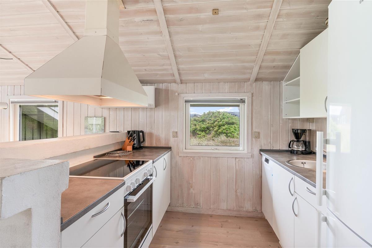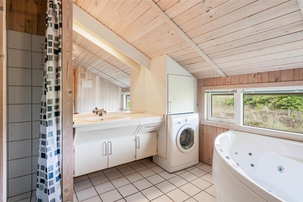The holiday home enjoys a convenient location in the popular resort of Bjerregård, one of the most sought-after holiday regions on Denmark's west coast. It's only about 650 metres to the North Sea, and the beautiful sandy beaches are perfect for swimming and walking excursions with the family and your dog, who is naturally very welcome.