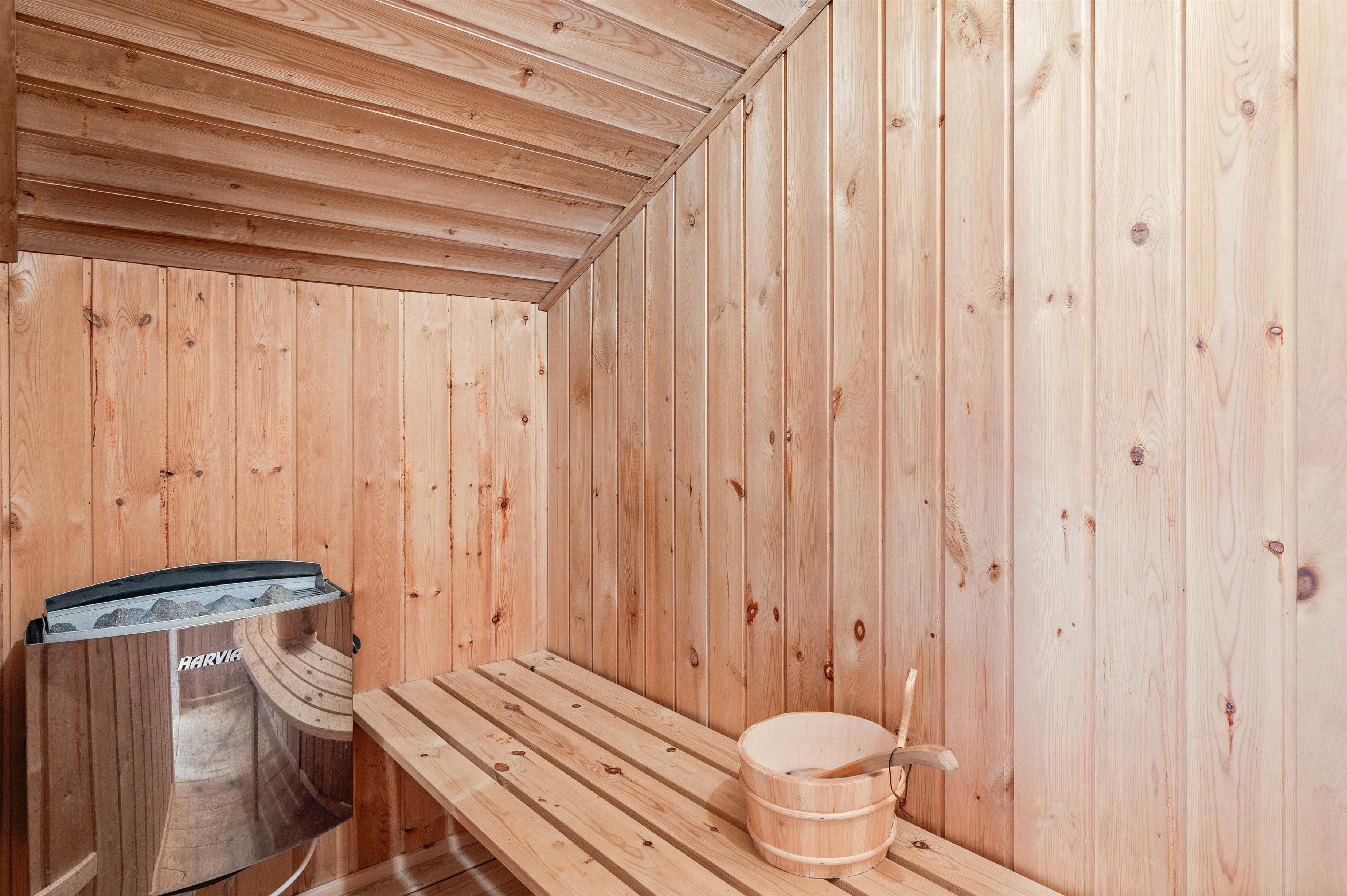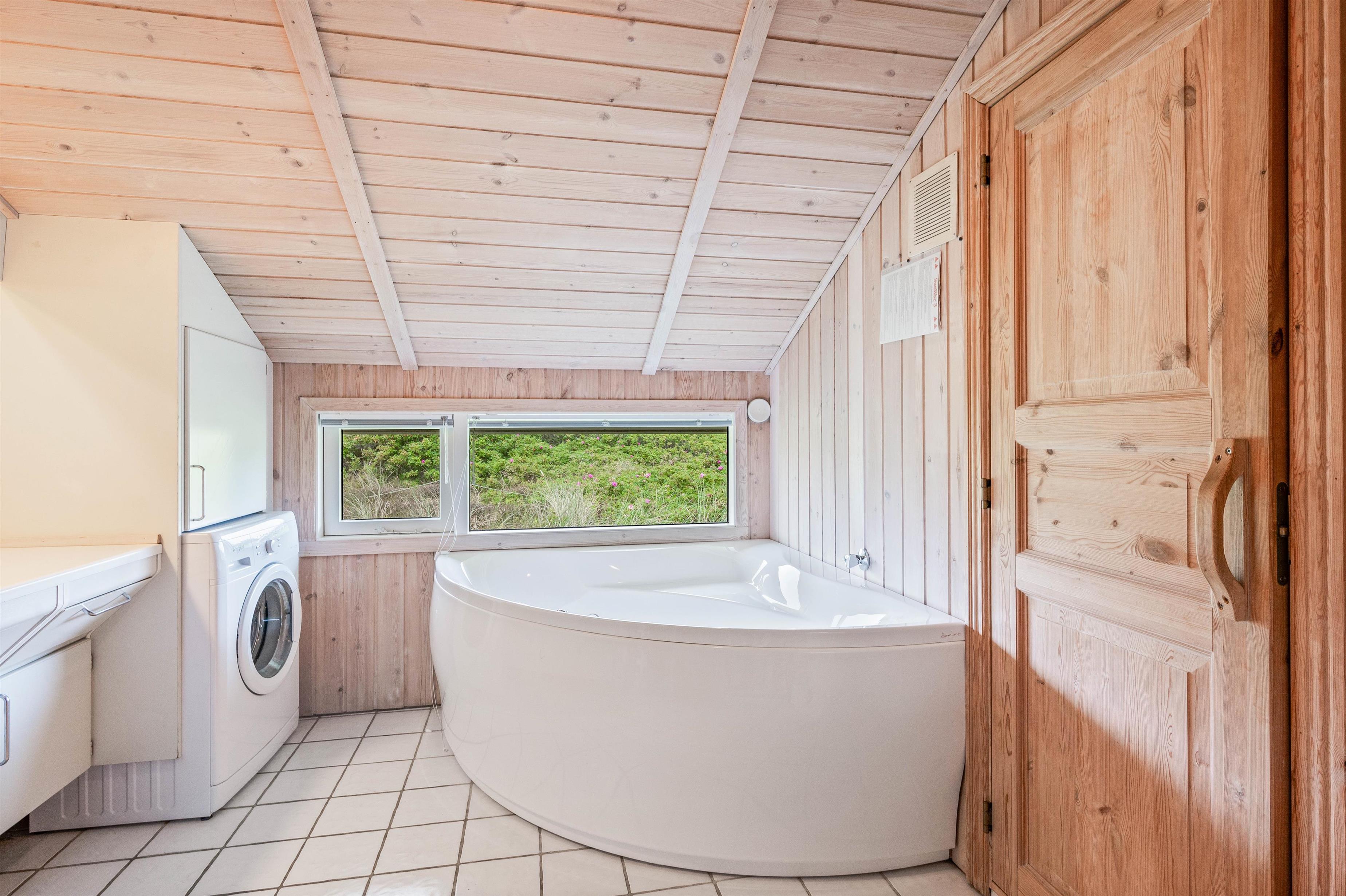 The bathroom in your thoughtfully furnished holiday home comes equipped with a whirlpool and sauna. Here you can spend relaxing evenings unwinding from everyday stress. The holiday home has three bedrooms, two with double beds and one with a cabin bed.