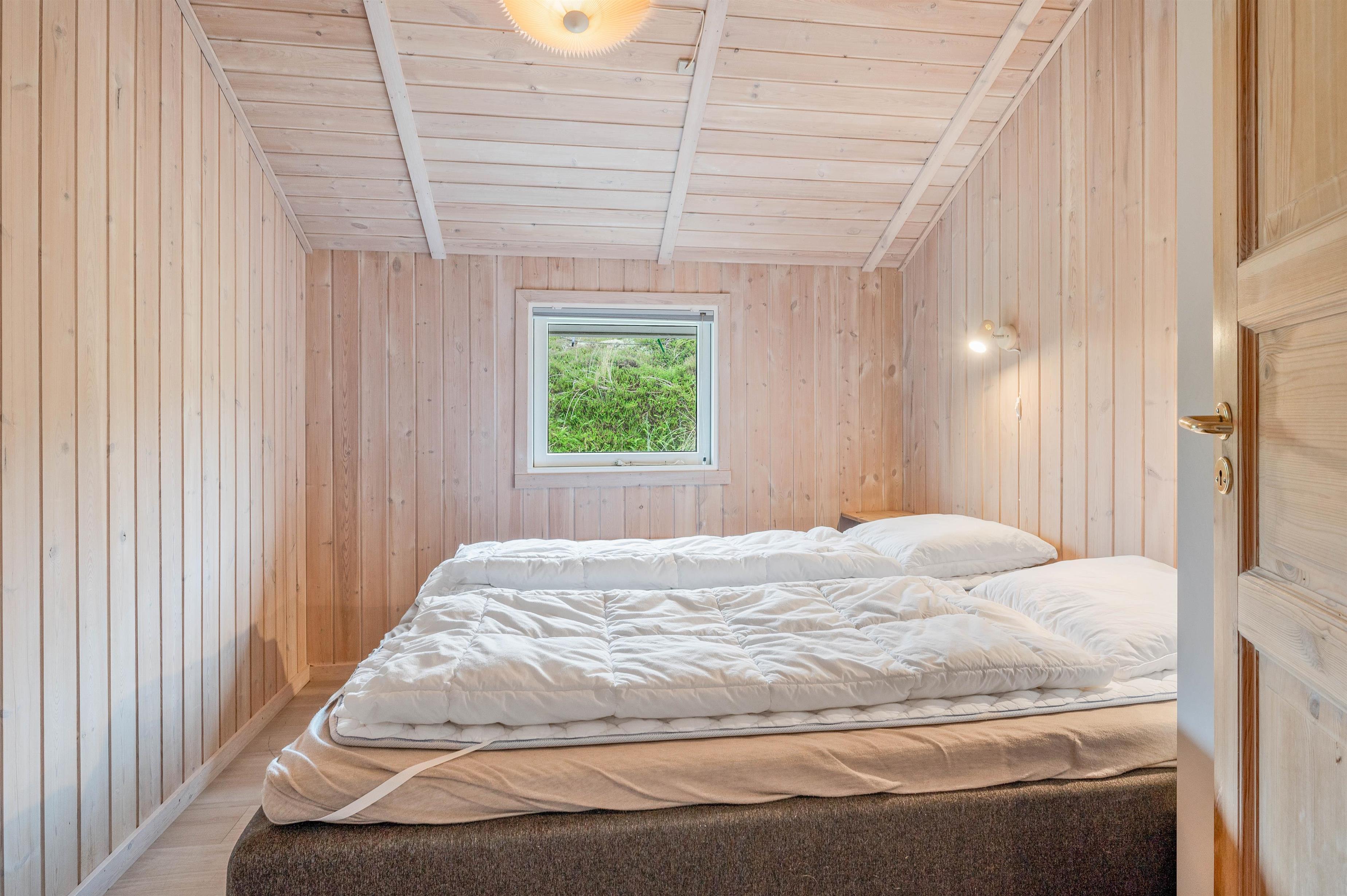 This holiday home features bright, practical furnishings with comfortable furniture and light wooden walls and ceilings. The well-equipped kitchen, dining area and living space are combined in one large room, offering beautiful natural light and a cosy atmosphere. The centrally placed wood-burning stove provides welcome warmth on cooler days. The living room also features a peaceful sleeping alcove.
