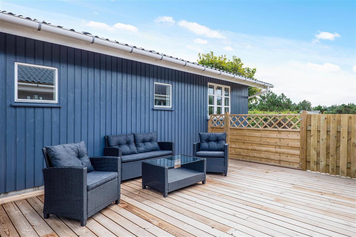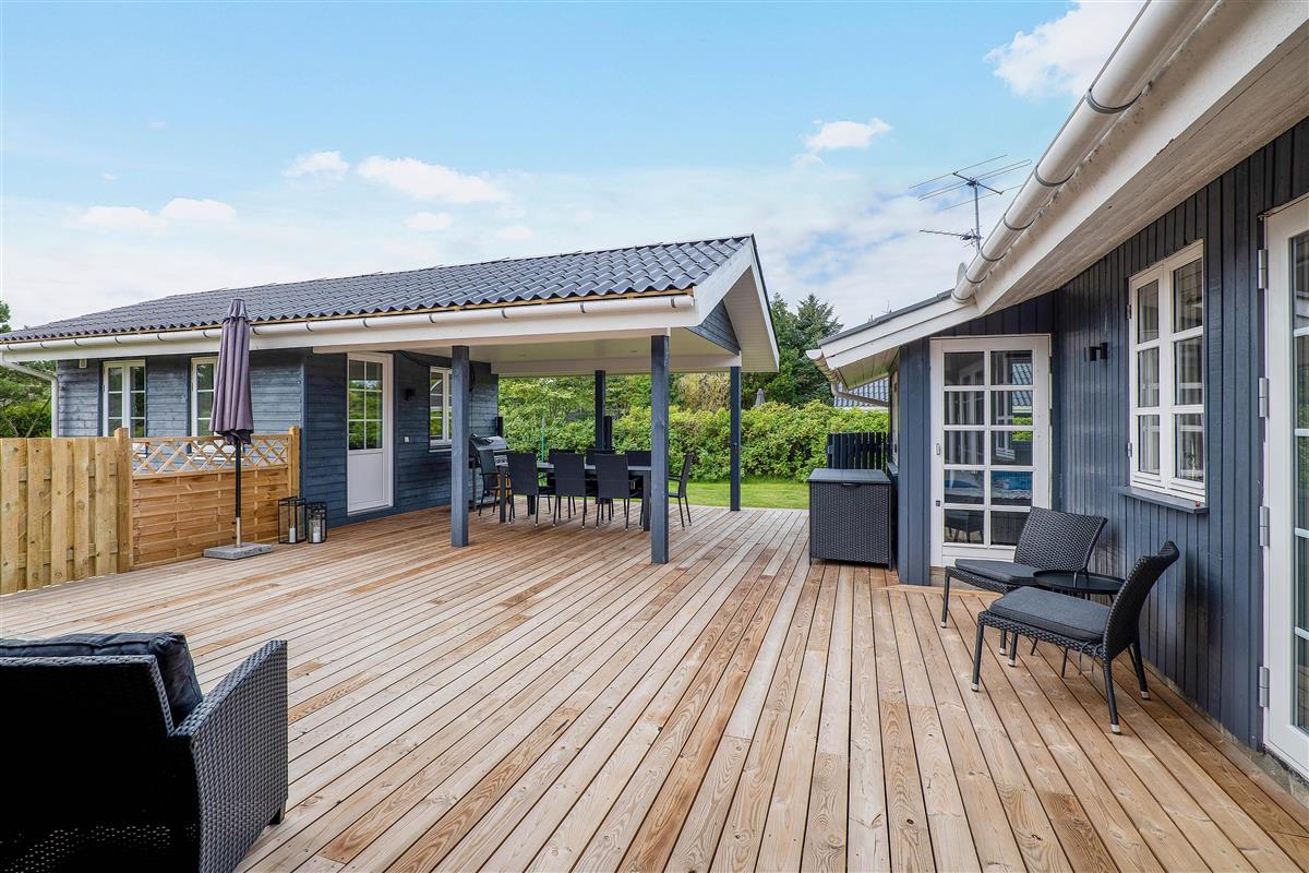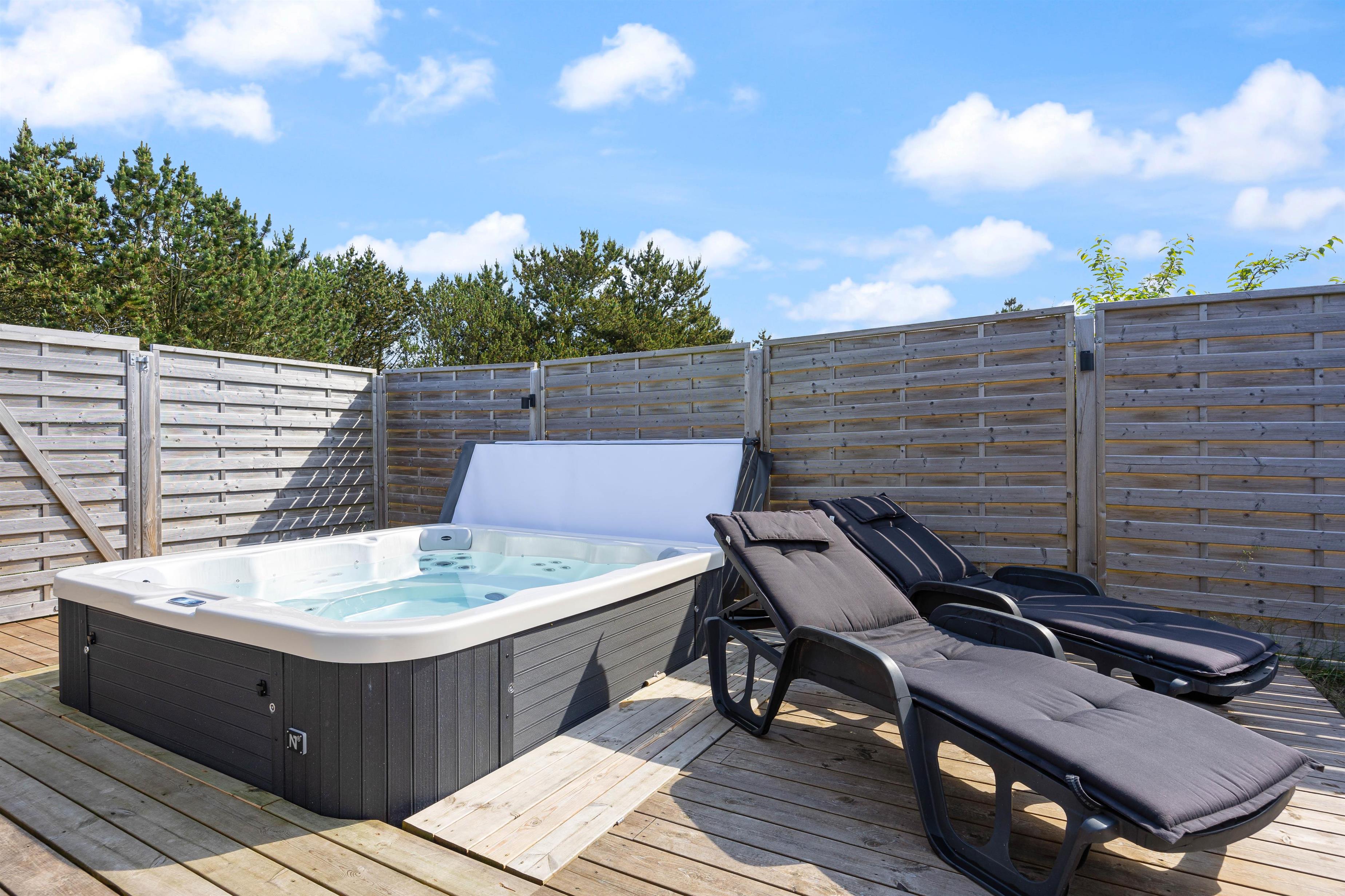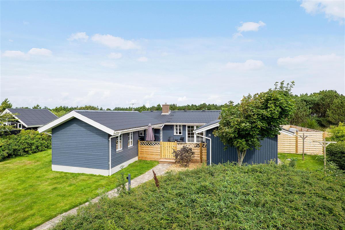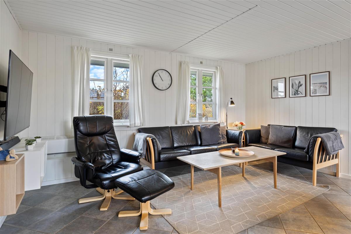 A cosy and well-maintained holiday home of 131 square metres welcomes you on a partially sheltered natural plot at Sigfred Jensens Vej 31. Here you'll find a large, partially covered terrace and an enclosed terrace where your dog can roam freely. The outdoor hot tub and shelter are absolute highlights of this holiday home, which was renovated in 2021.