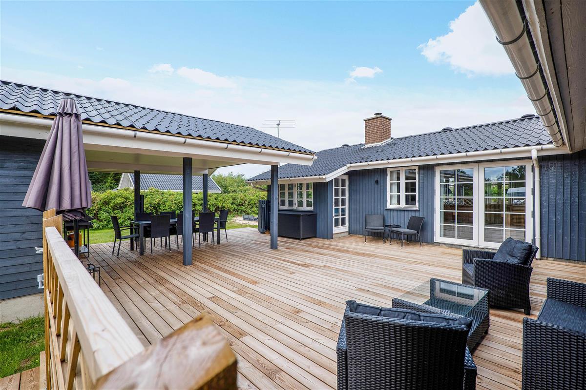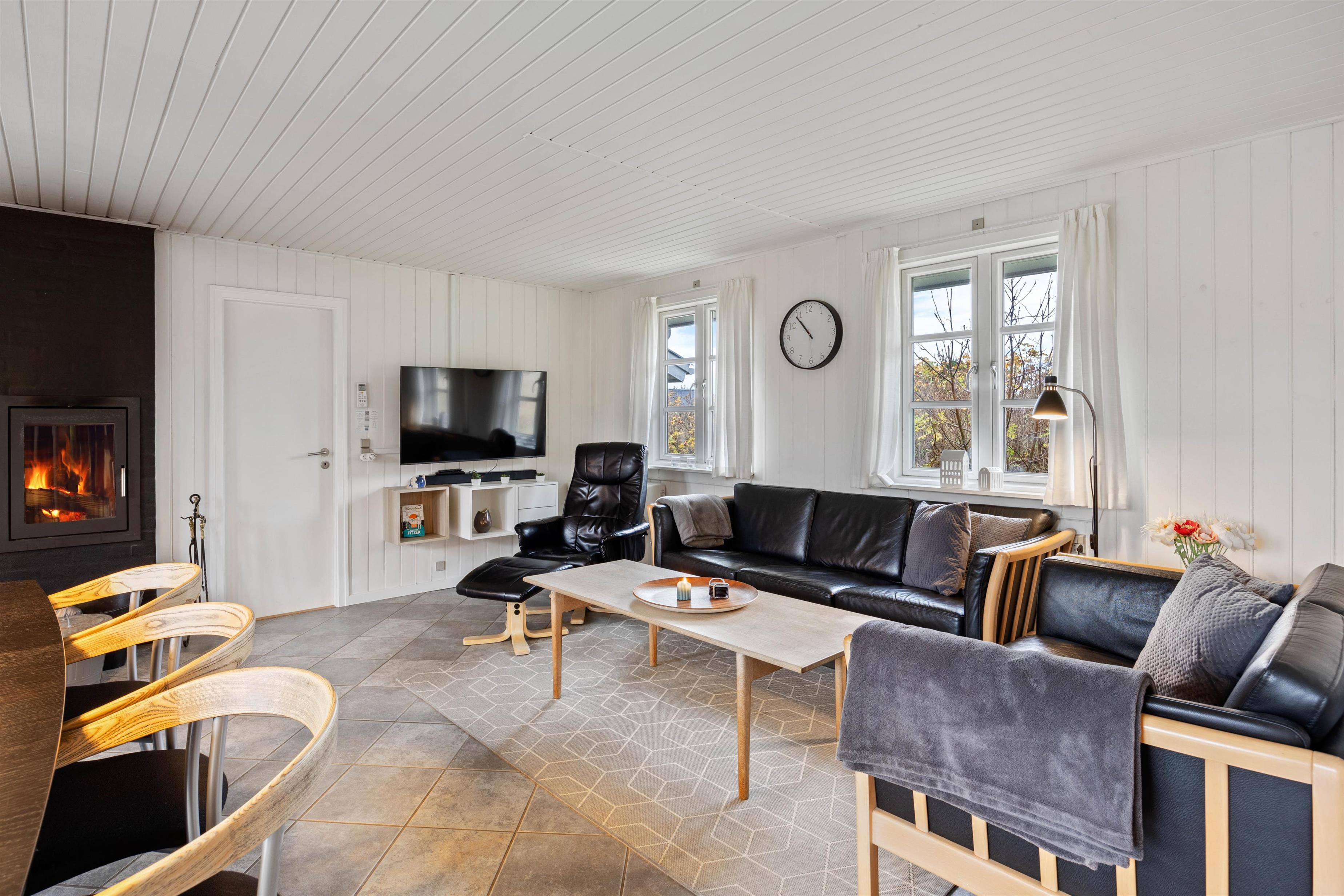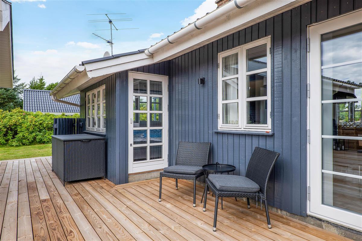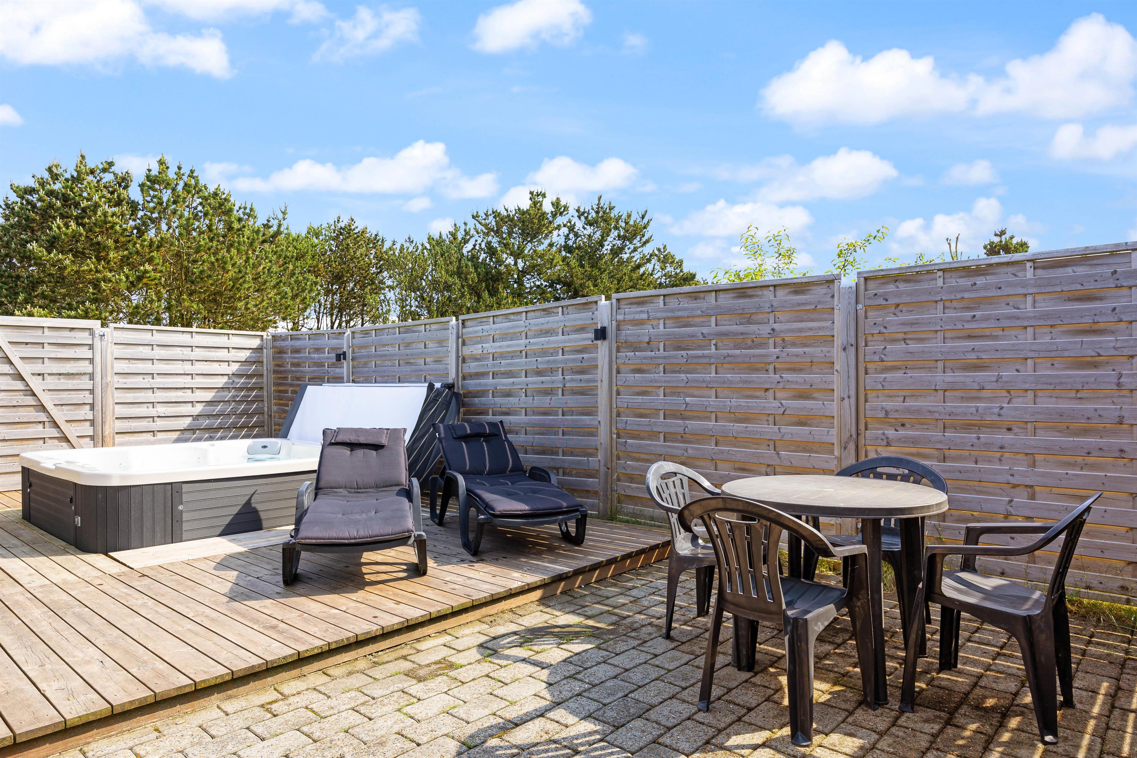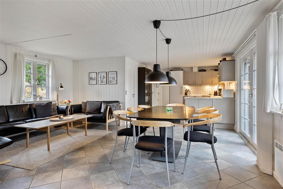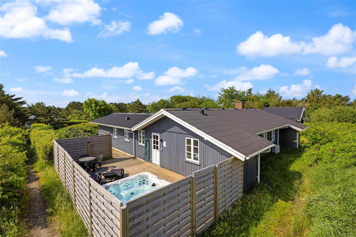 A cosy and well-maintained holiday home of 131 square metres welcomes you on a partially sheltered natural plot at Sigfred Jensens Vej 31. Here you'll find a large, partially covered terrace and an enclosed terrace where your dog can roam freely. The outdoor hot tub and shelter are absolute highlights of this holiday home, which was renovated in 2021.