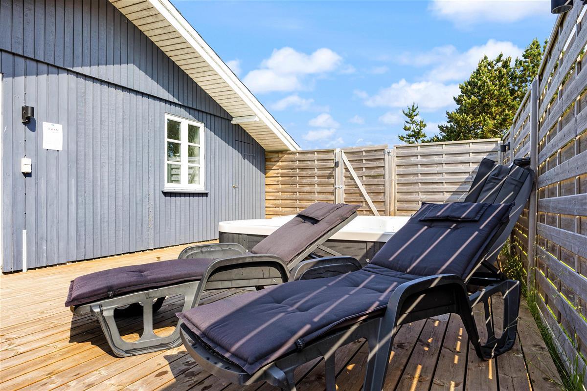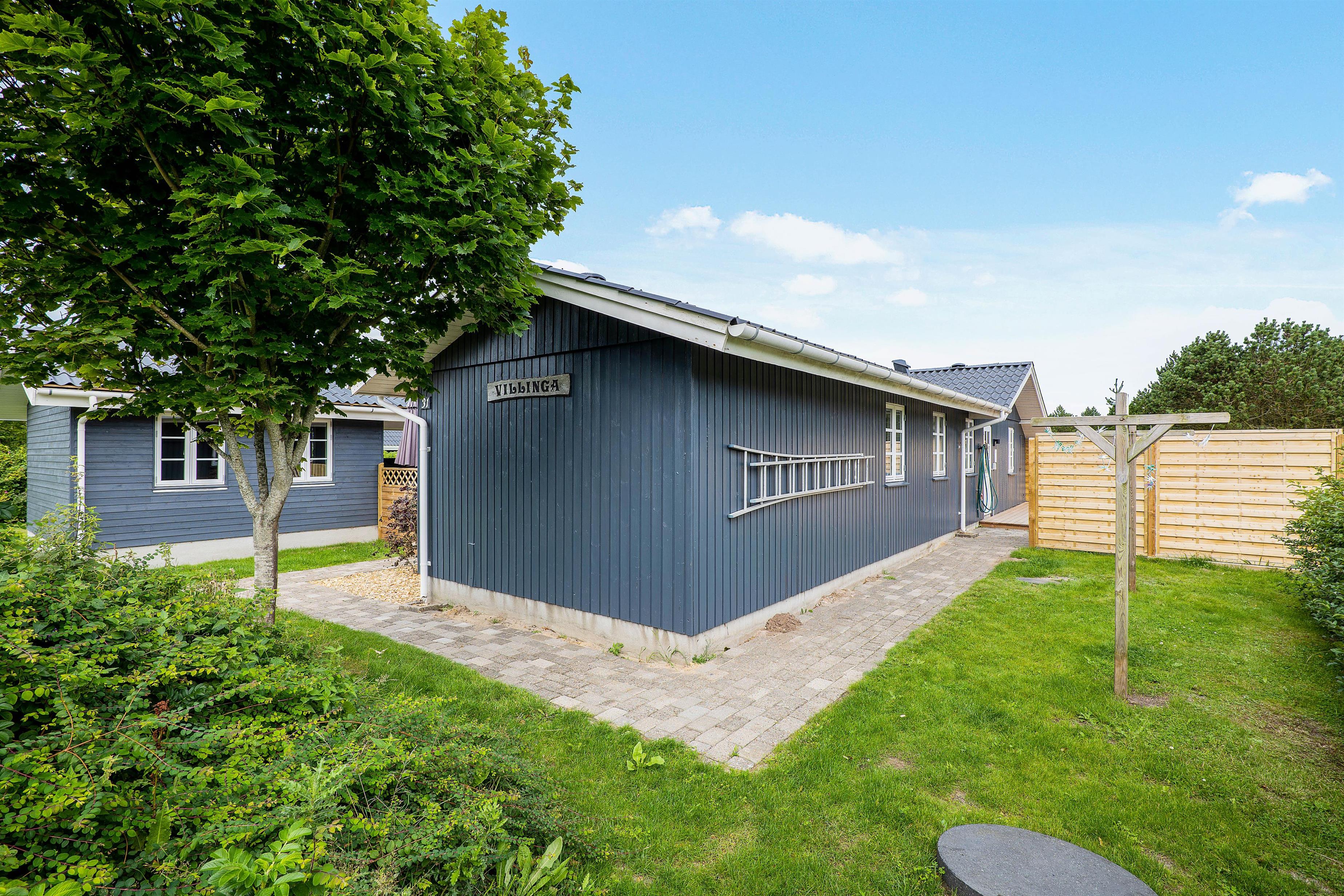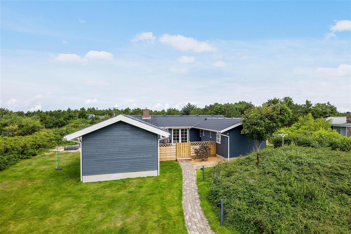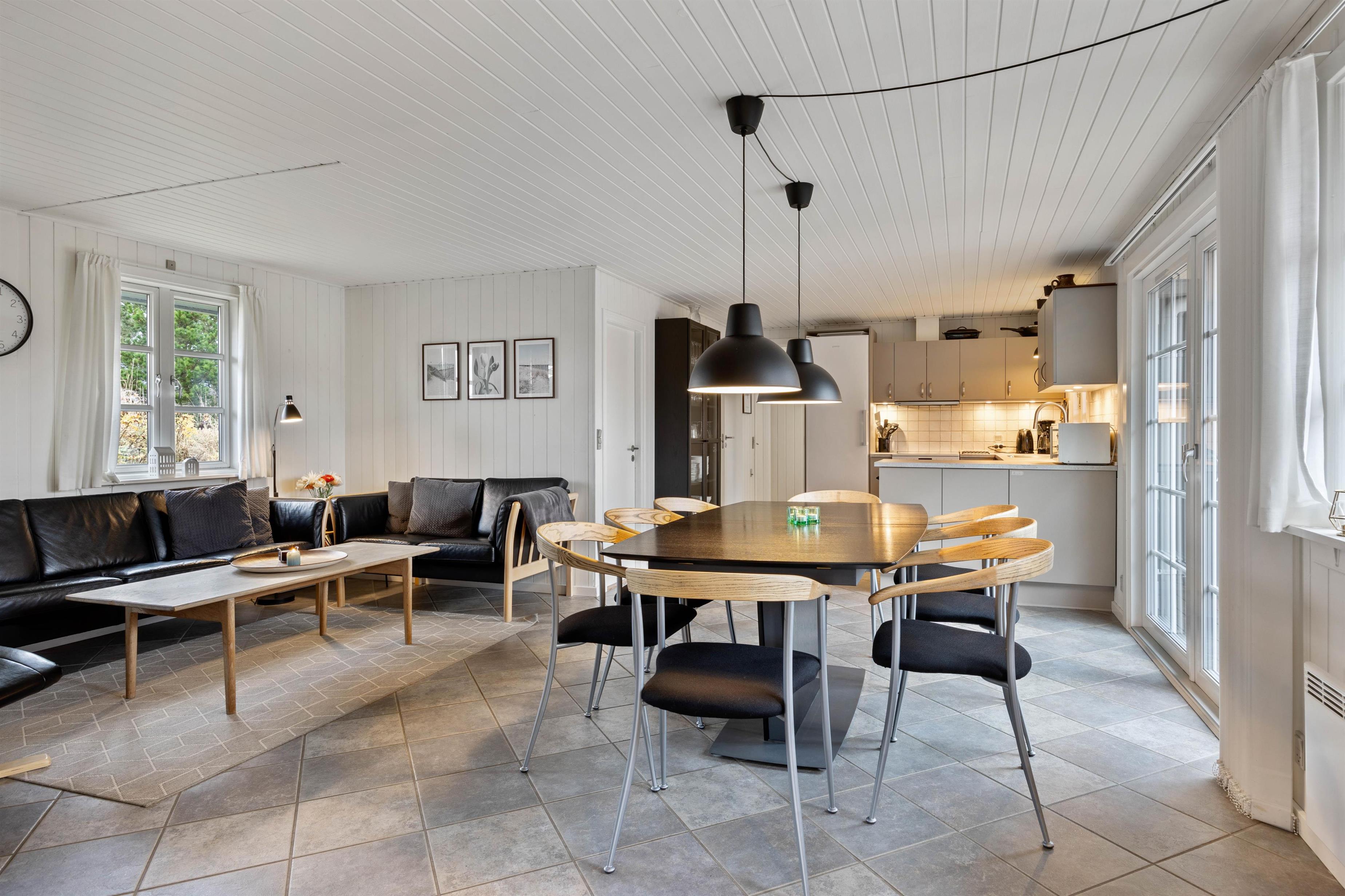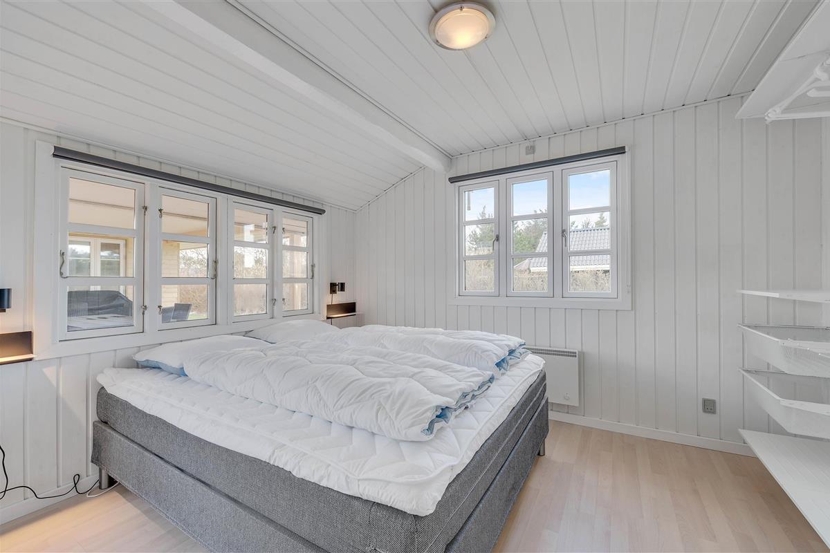 A cosy and well-maintained holiday home of 131 square metres welcomes you on a partially sheltered natural plot at Sigfred Jensens Vej 31. Here you'll find a large, partially covered terrace and an enclosed terrace where your dog can roam freely. The outdoor hot tub and shelter are absolute highlights of this holiday home, which was renovated in 2021.
