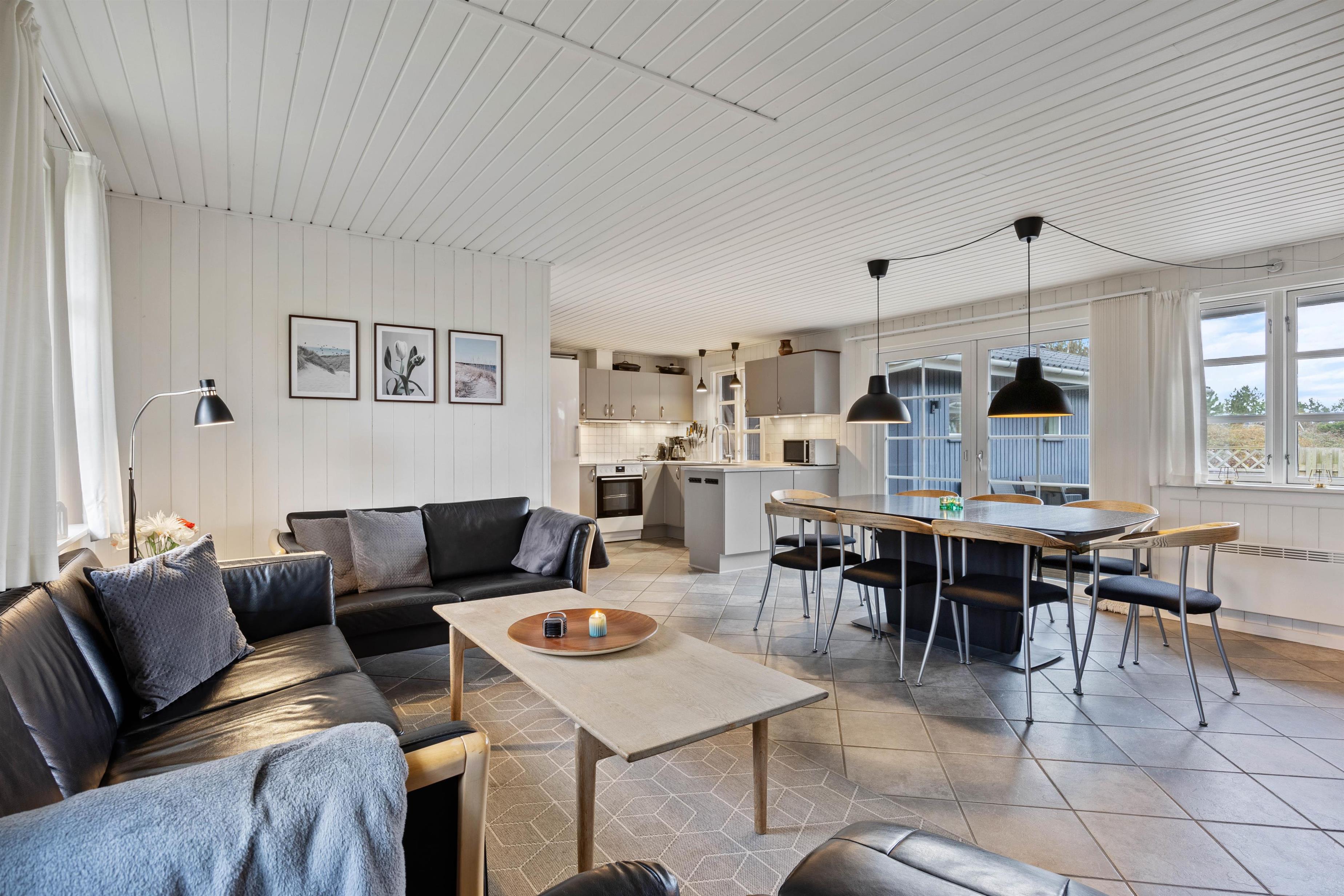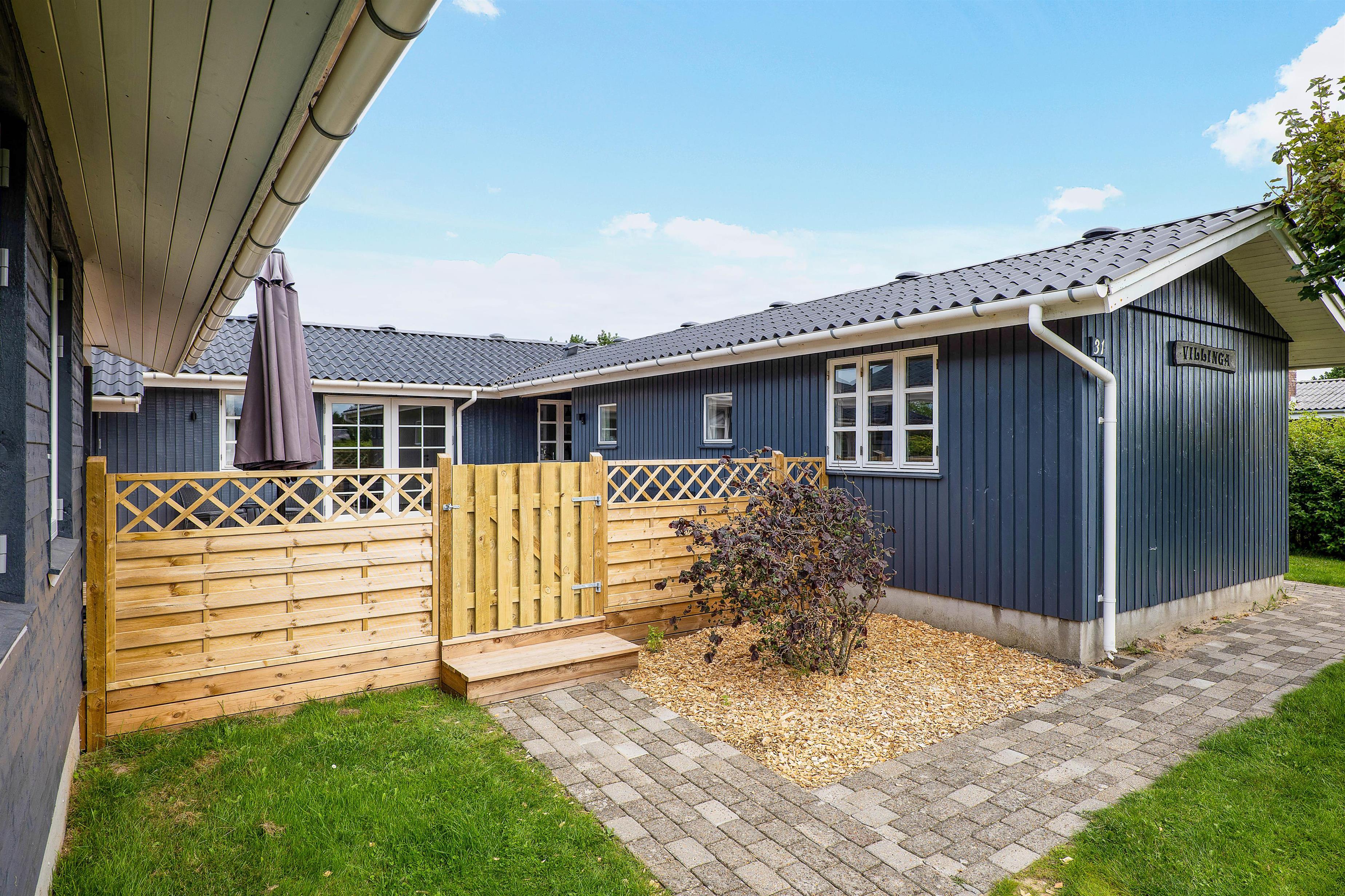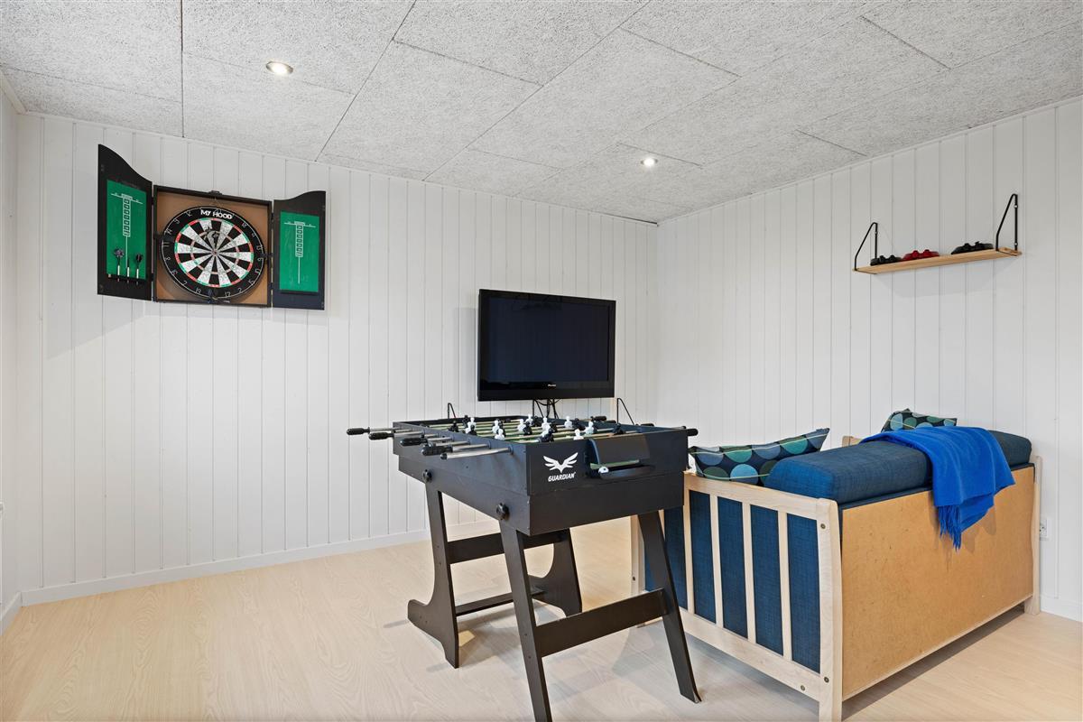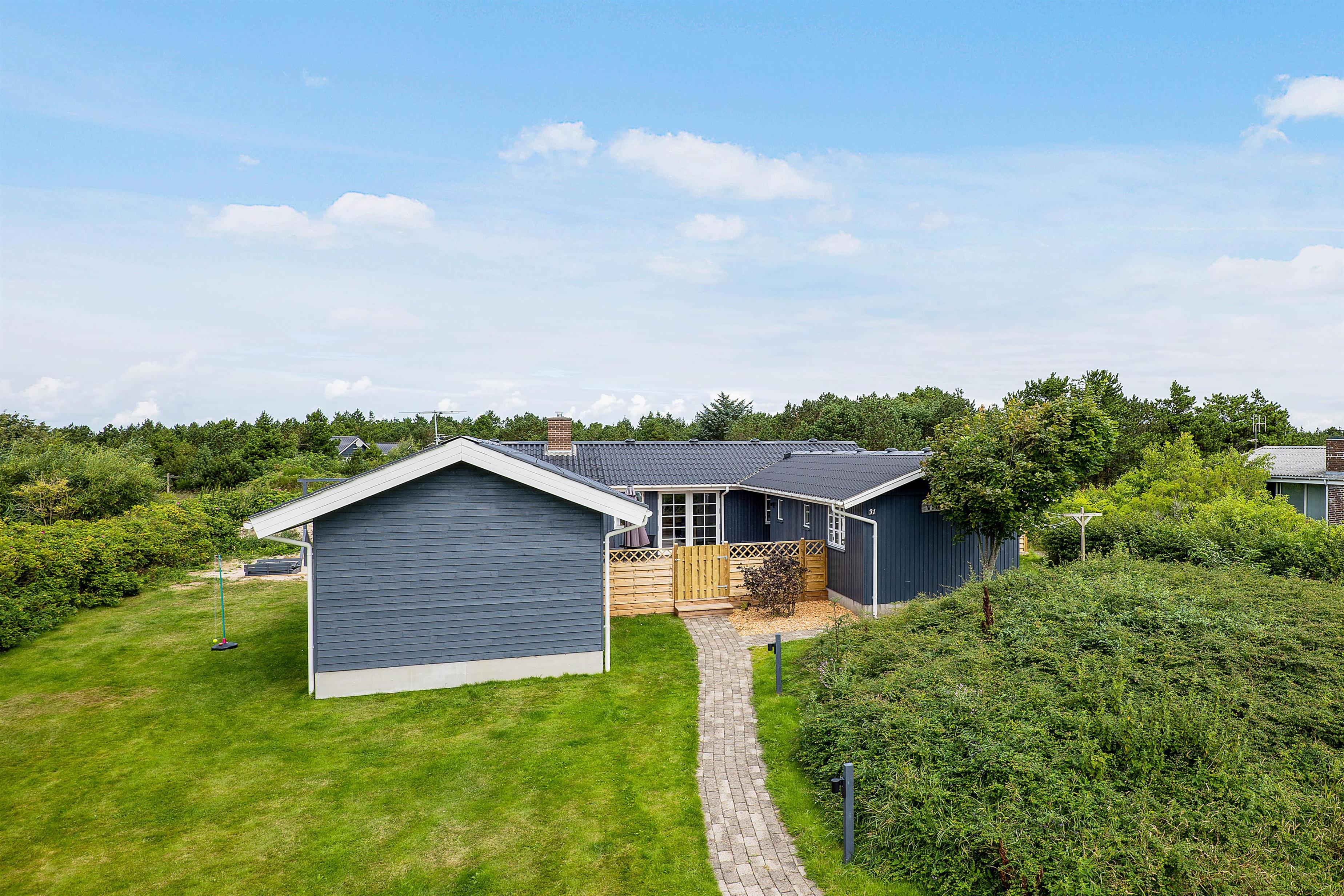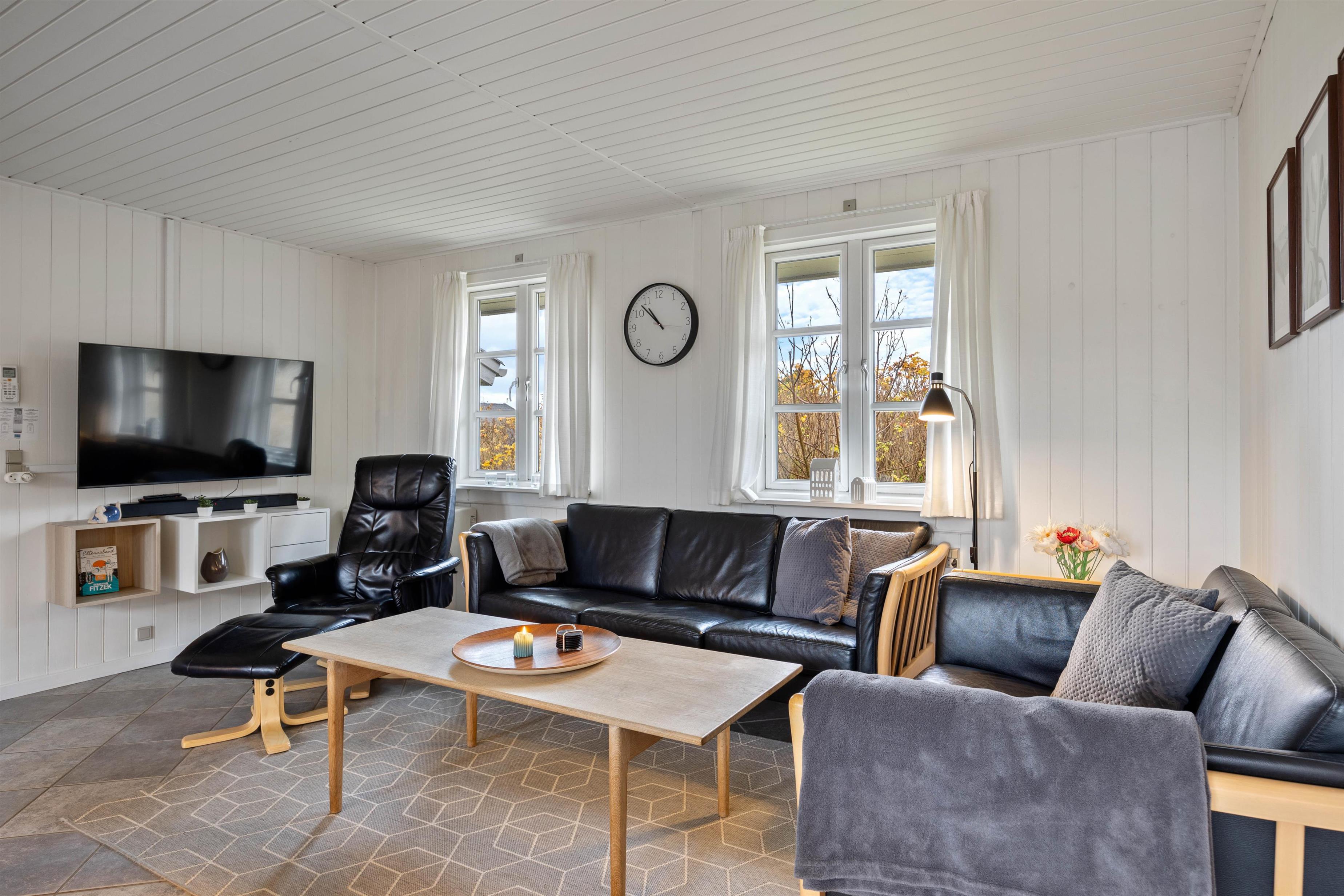 A cosy and well-maintained holiday home of 131 square metres welcomes you on a partially sheltered natural plot at Sigfred Jensens Vej 31. Here you'll find a large, partially covered terrace and an enclosed terrace where your dog can roam freely. The outdoor hot tub and shelter are absolute highlights of this holiday home, which was renovated in 2021.