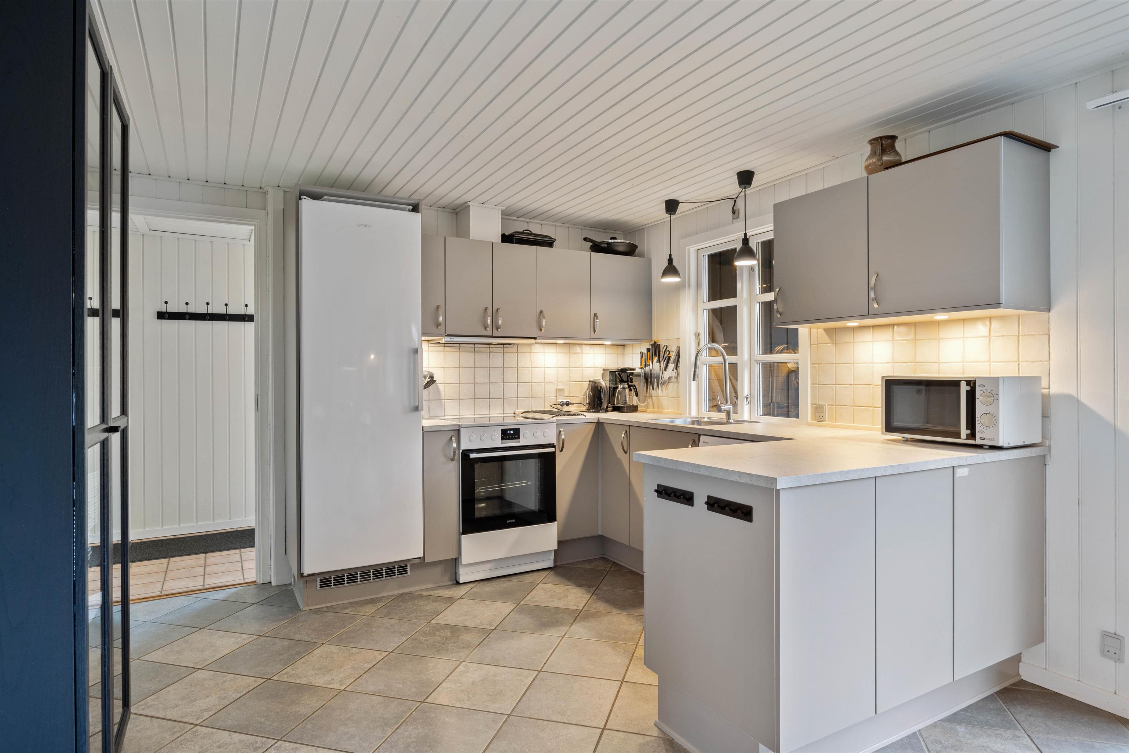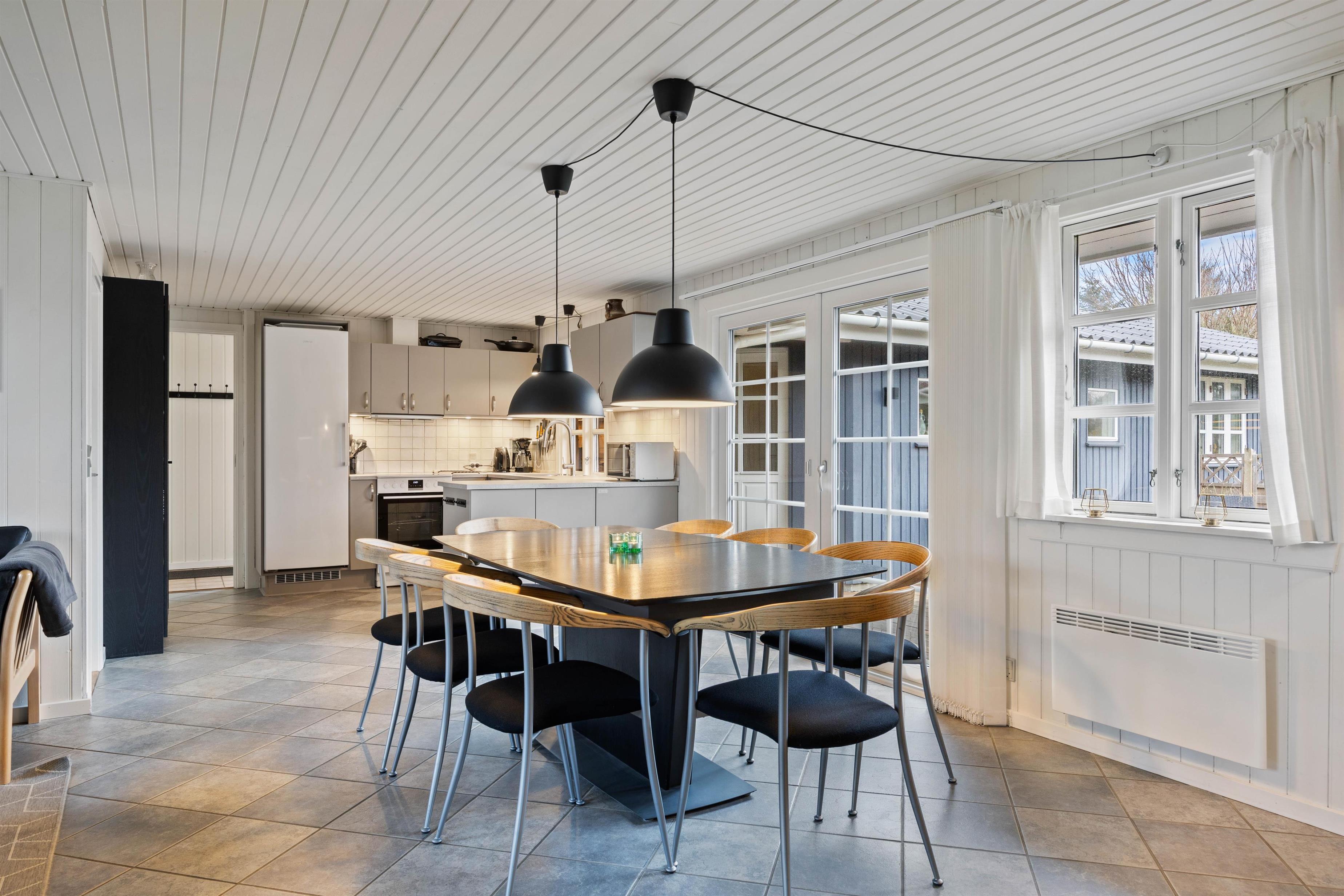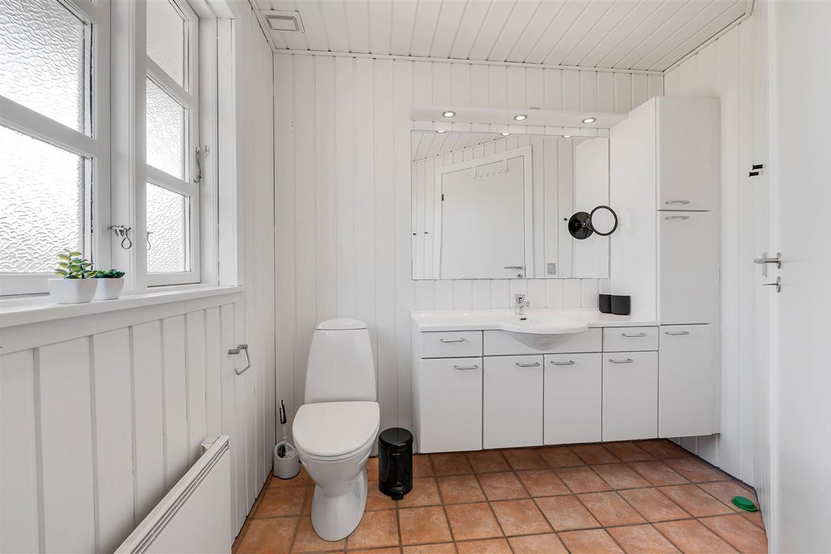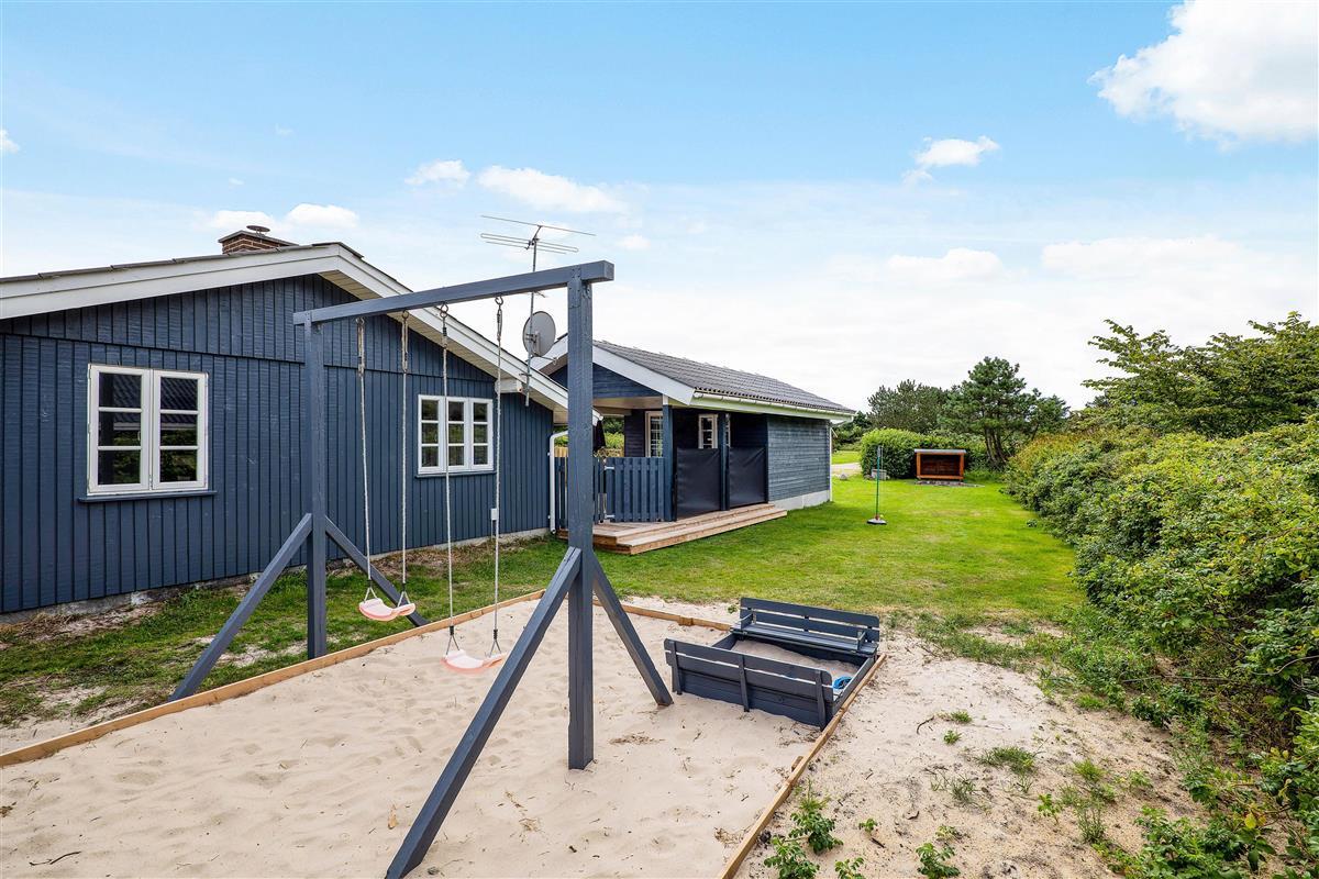 A cosy and well-maintained holiday home of 131 square metres welcomes you on a partially sheltered natural plot at Sigfred Jensens Vej 31. Here you'll find a large, partially covered terrace and an enclosed terrace where your dog can roam freely. The outdoor hot tub and shelter are absolute highlights of this holiday home, which was renovated in 2021.