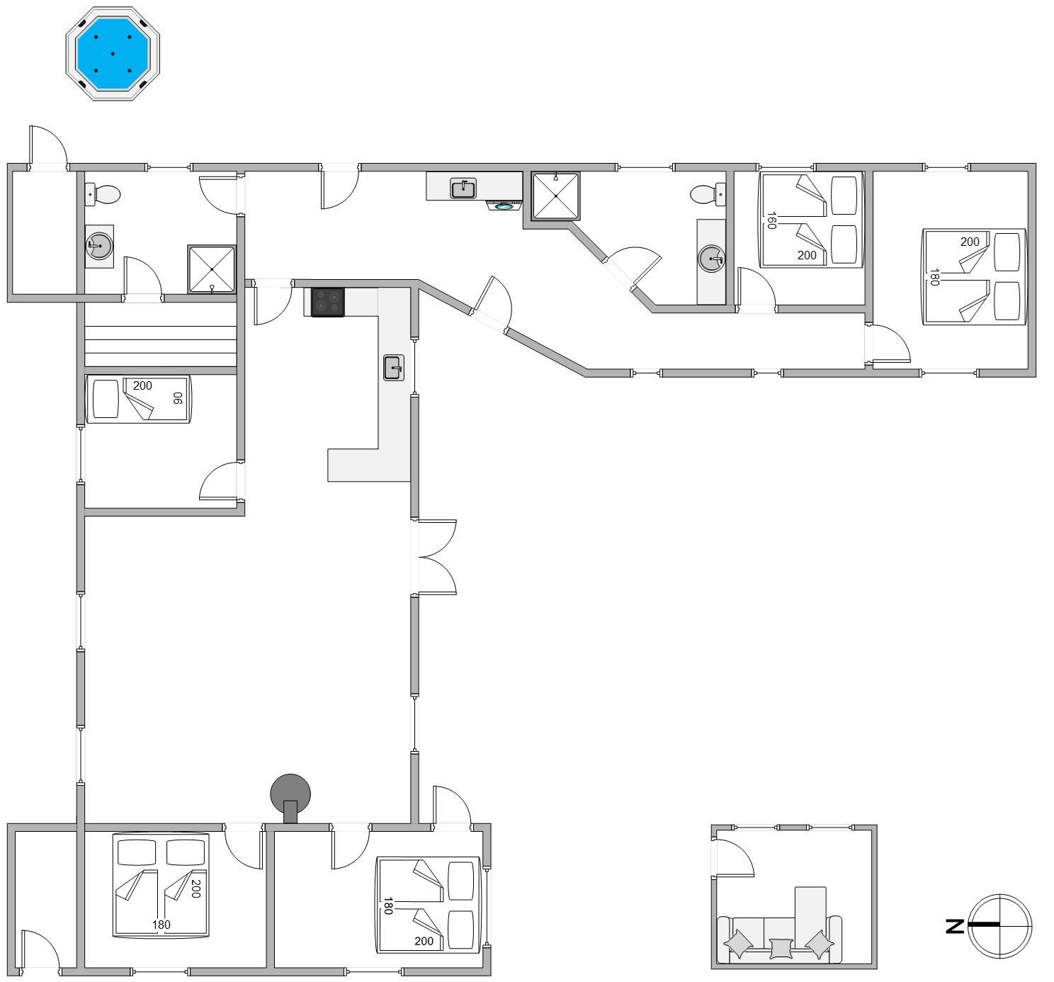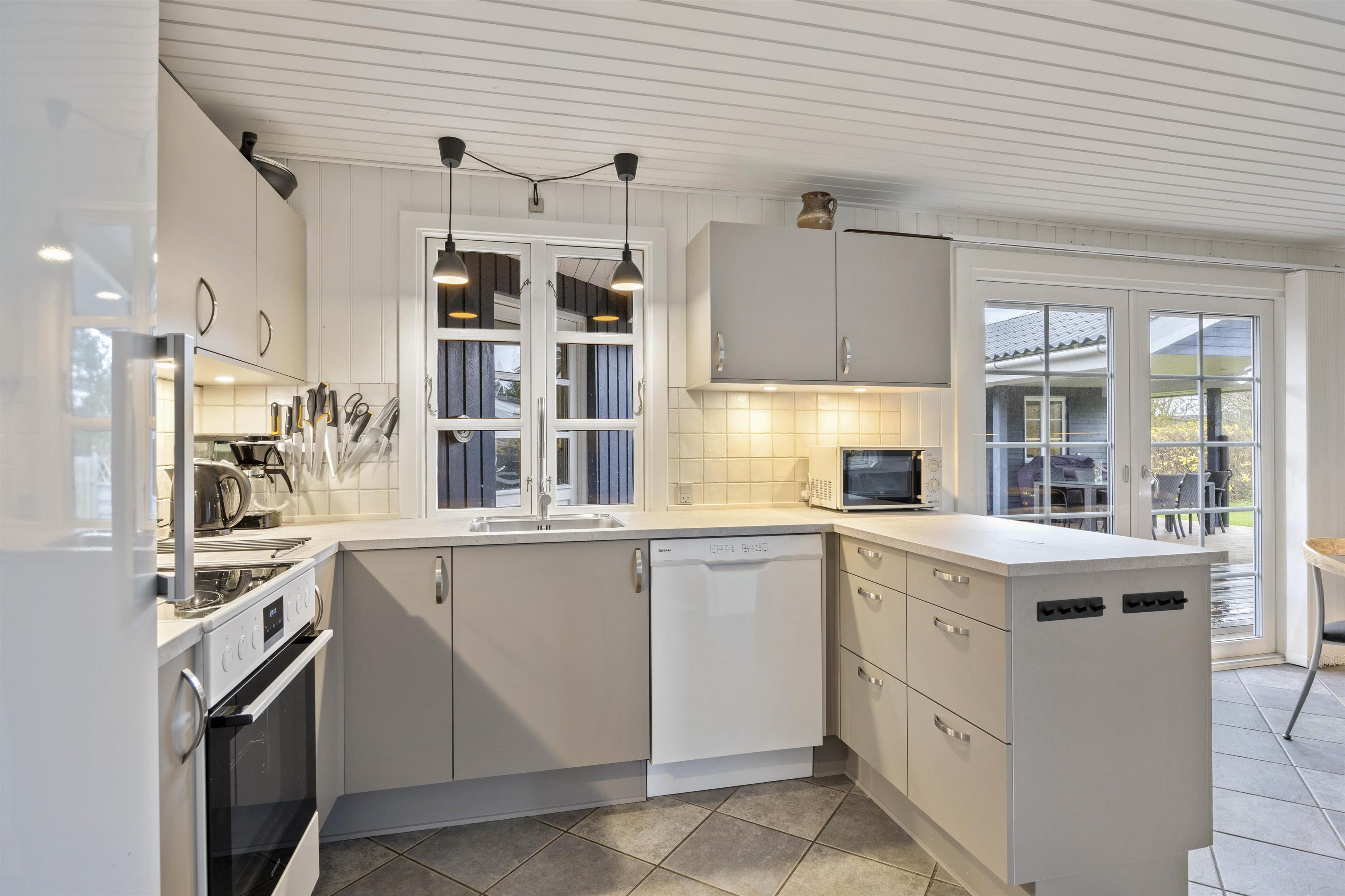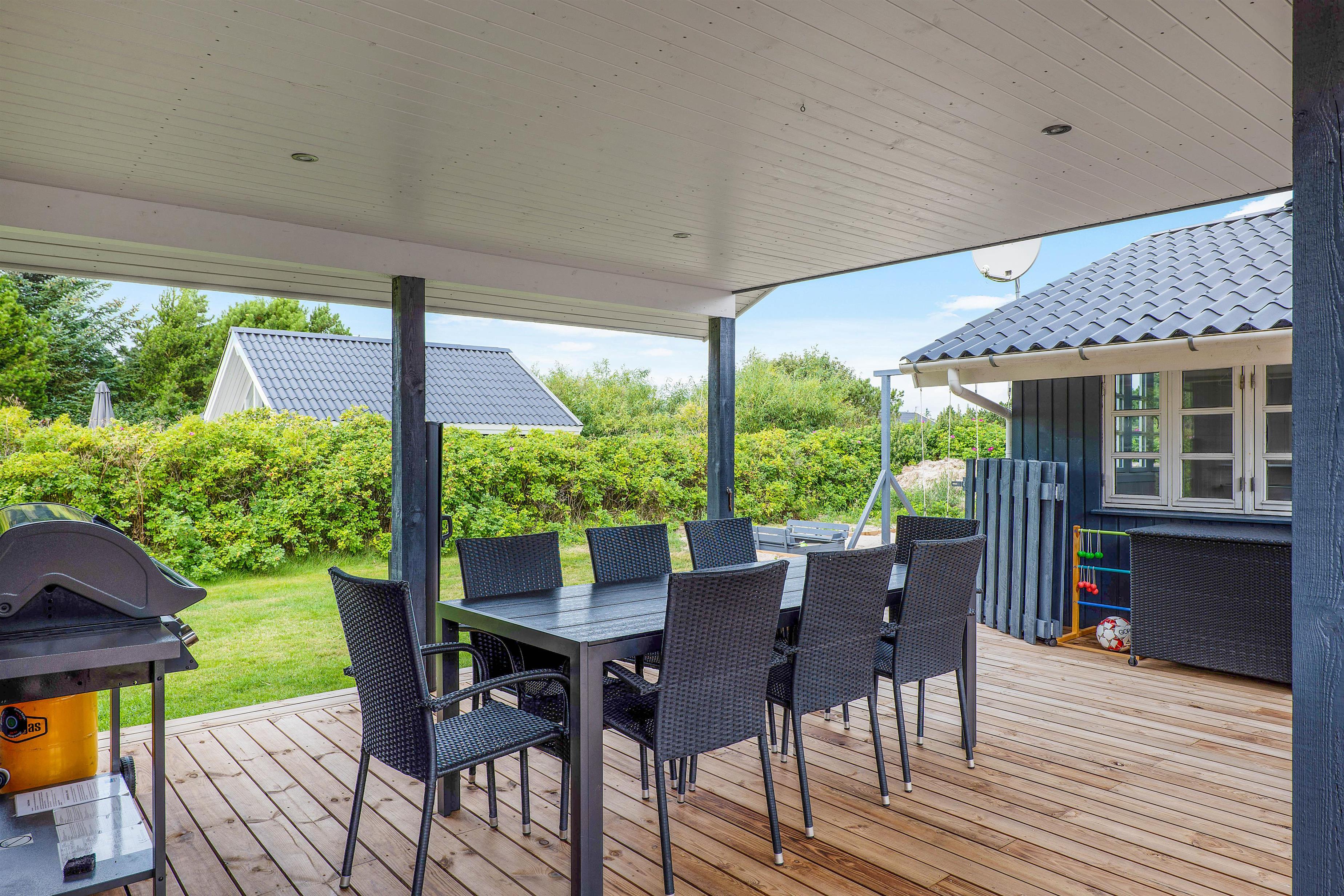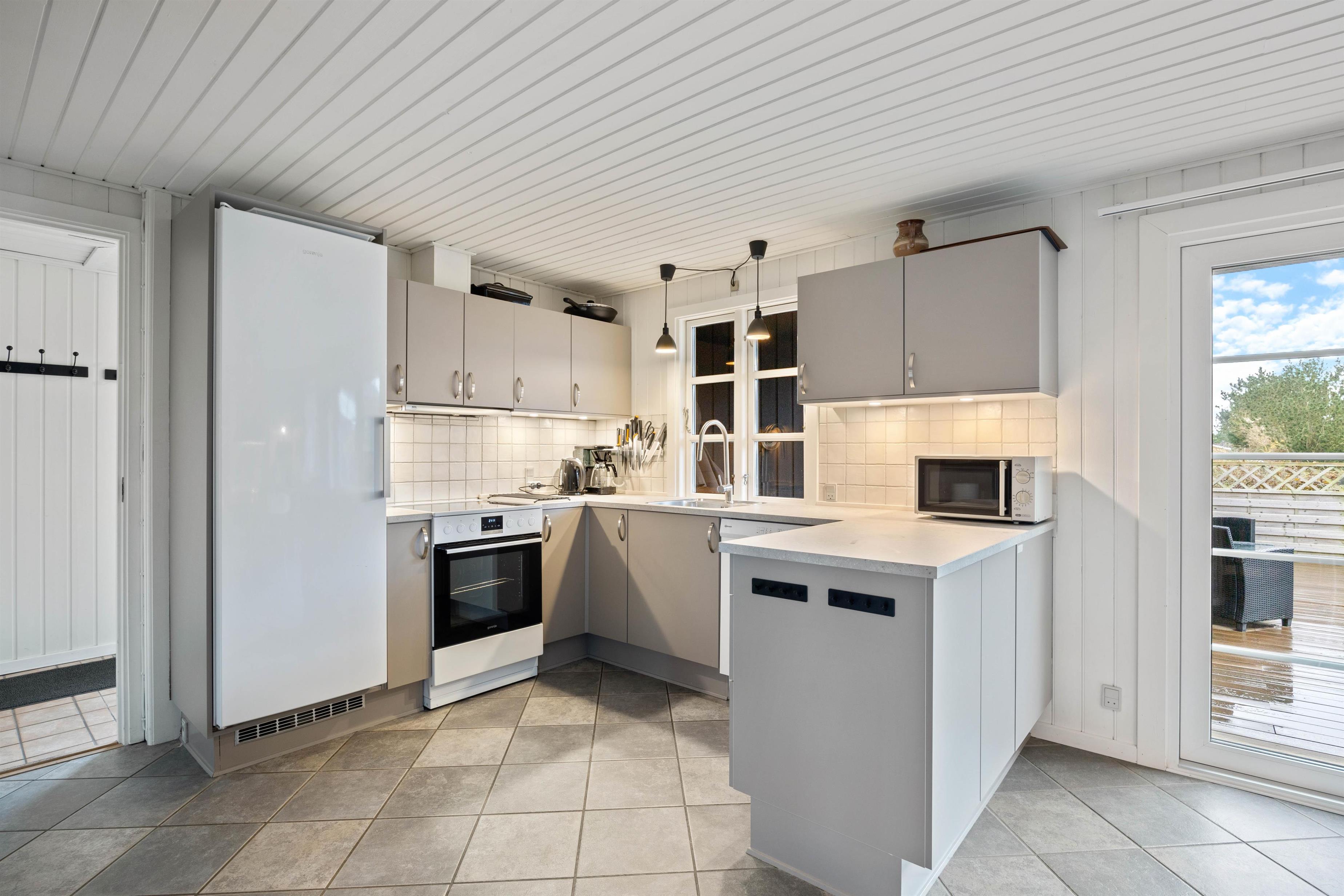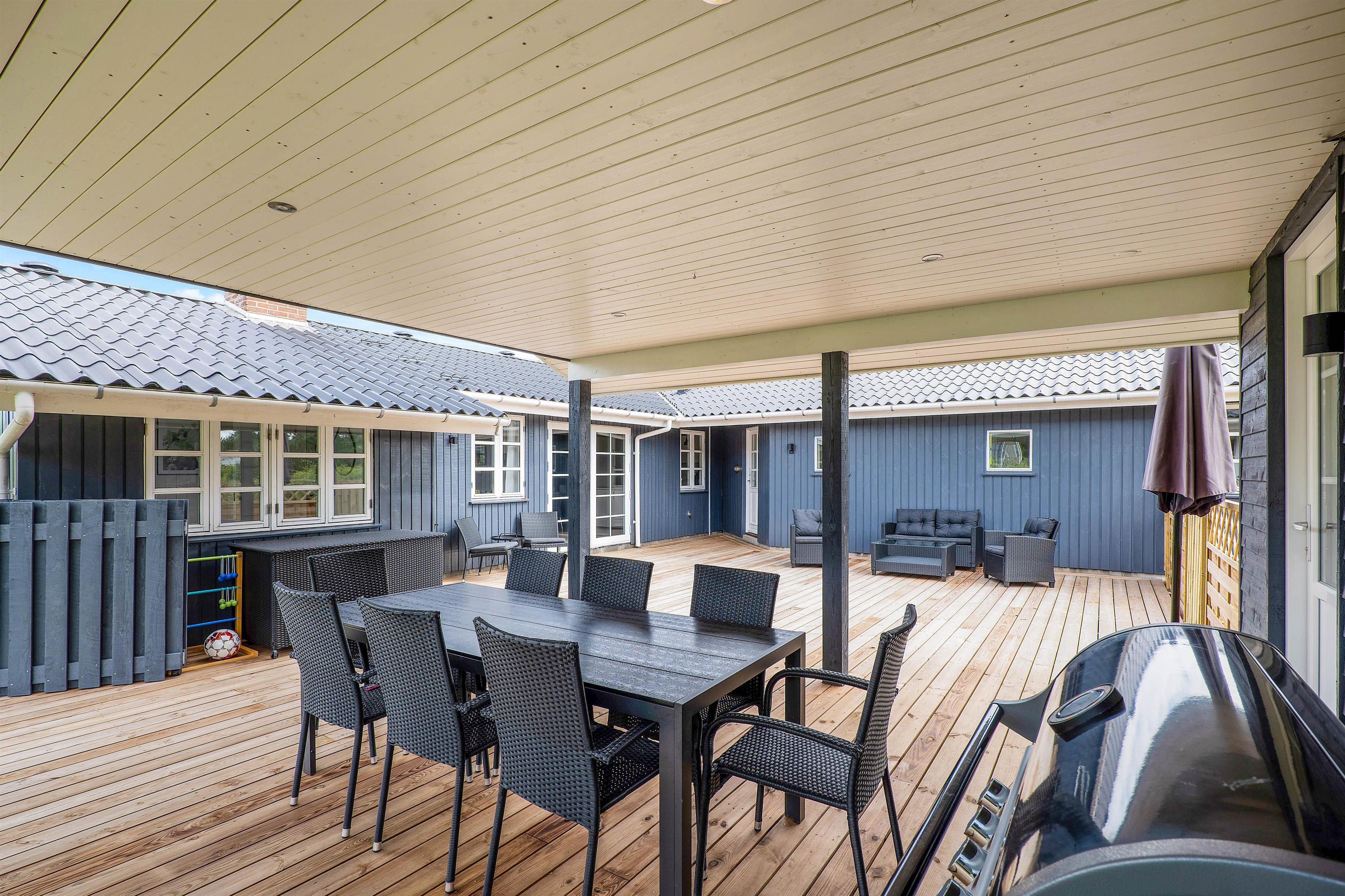 A cosy and well-maintained holiday home of 131 square metres welcomes you on a partially sheltered natural plot at Sigfred Jensens Vej 31. Here you'll find a large, partially covered terrace and an enclosed terrace where your dog can roam freely. The outdoor hot tub and shelter are absolute highlights of this holiday home, which was renovated in 2021.